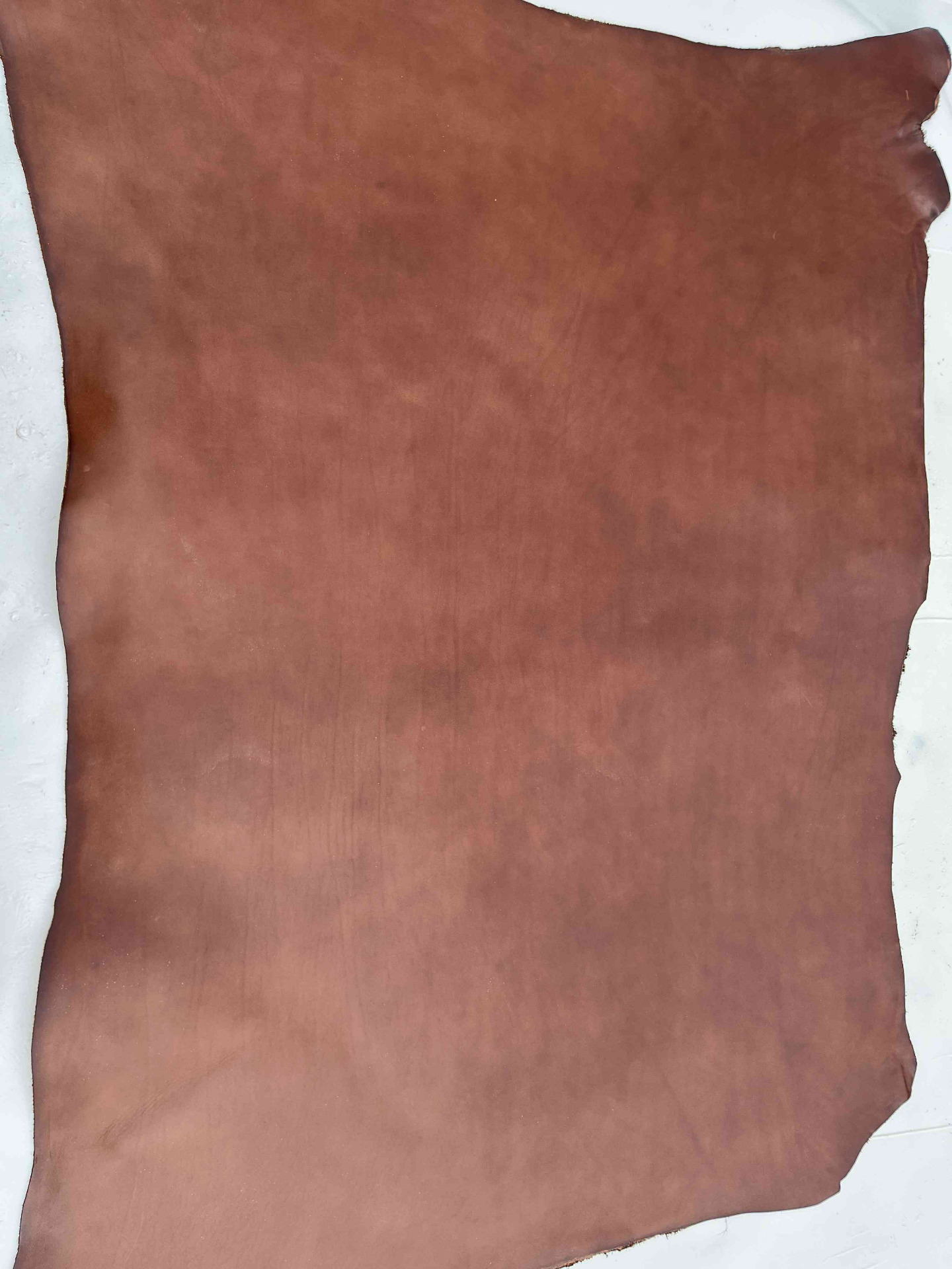 Spalla conciata 100% a vegetale liscia di colore brandy, pellame pieno finitura anilina semi-trasparente che lascia intravedere la bellissima grana naturale del cuoio, segni e imperfezioni non sono da considerarsi difetti, ma caratteristiche naturali per la produzione artigianale di cinture, selleria, borse moto, svuotatasche, collari per animali e molto altro.