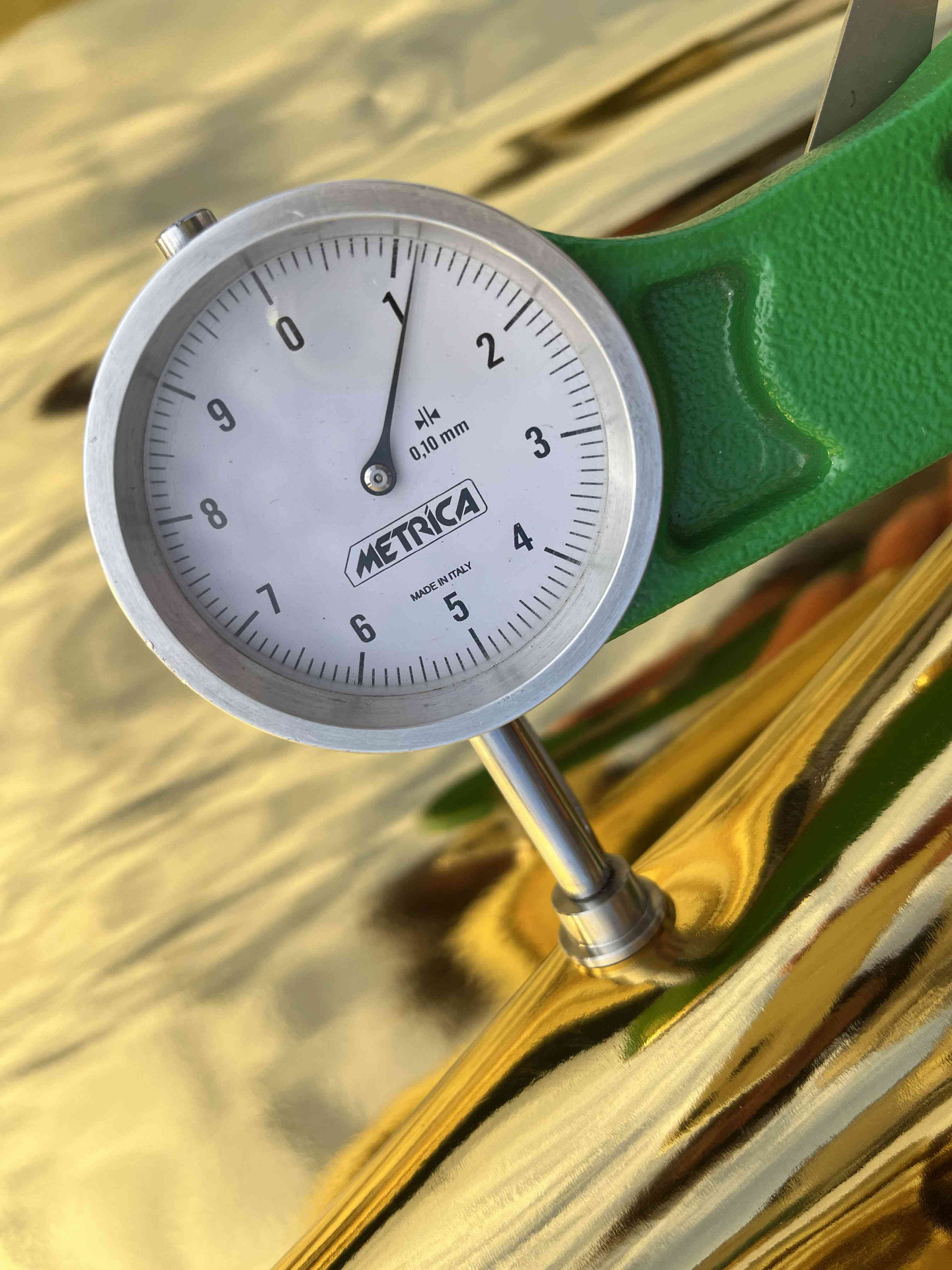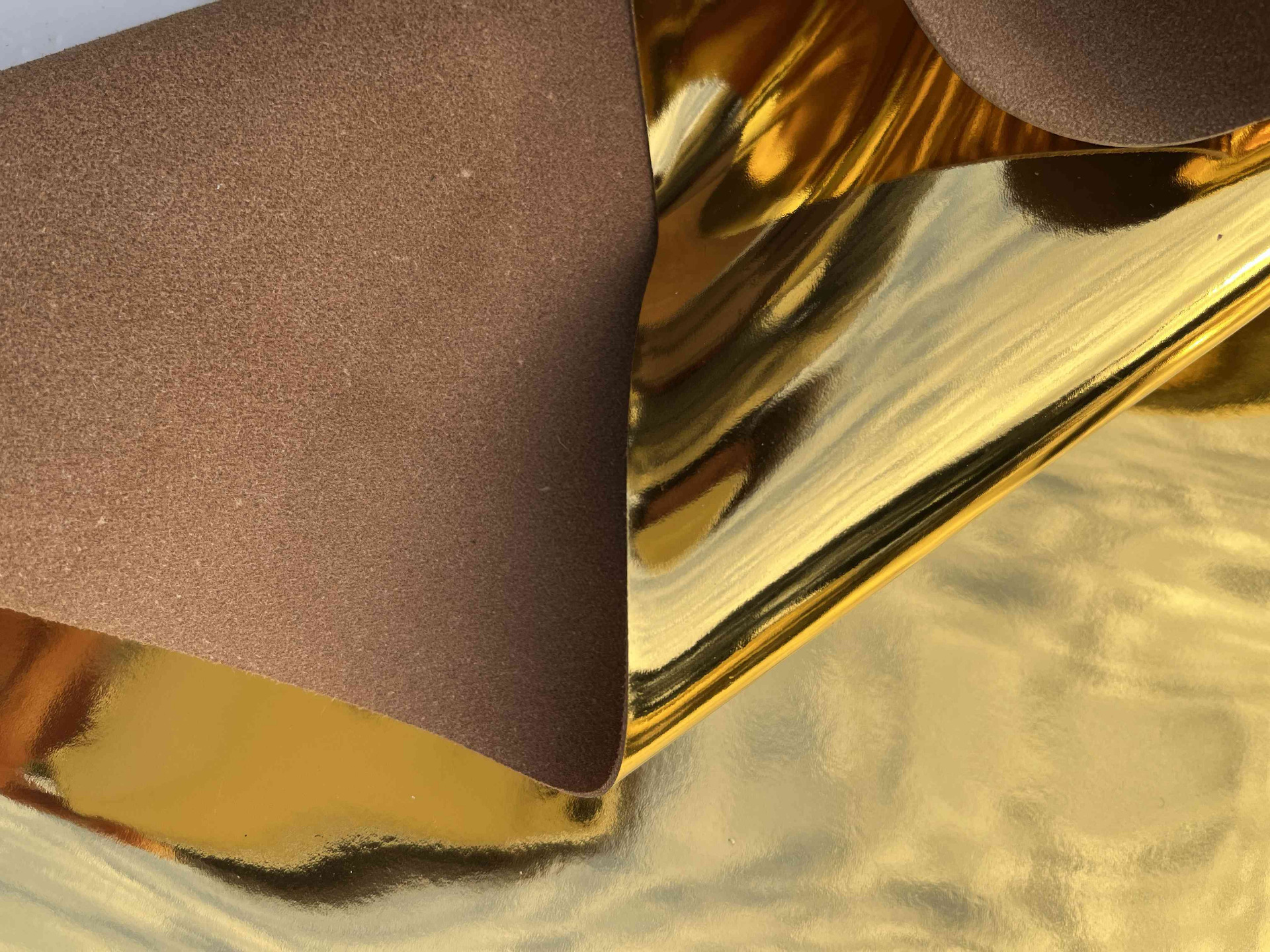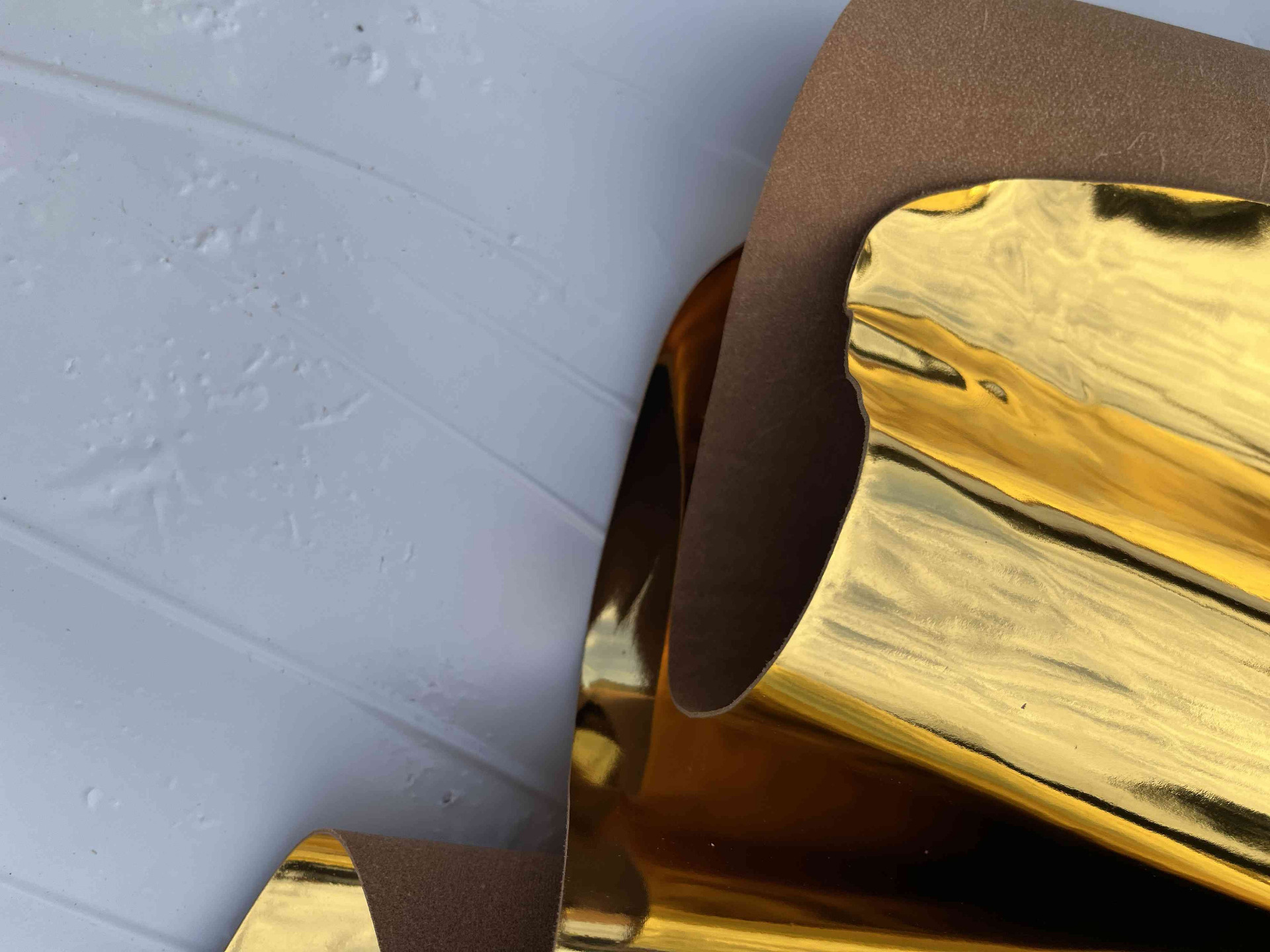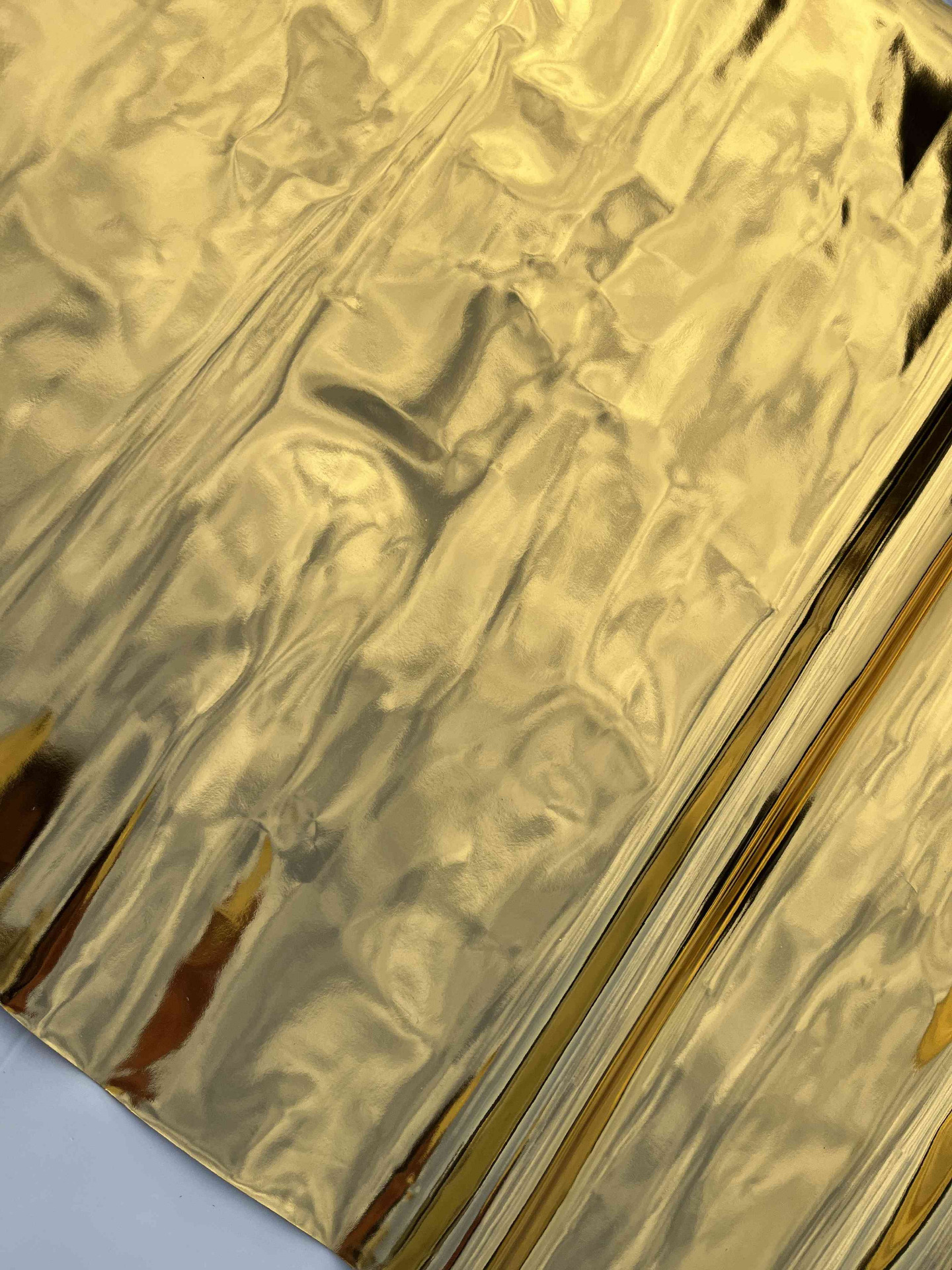 Pellame conciato 100% a vegetale liscio laminato oro lucido, mano morbida ideale per la creazioni di calzature, pelletteria, rilegatoria, sandali, infradito, ciabatte e molto altro.