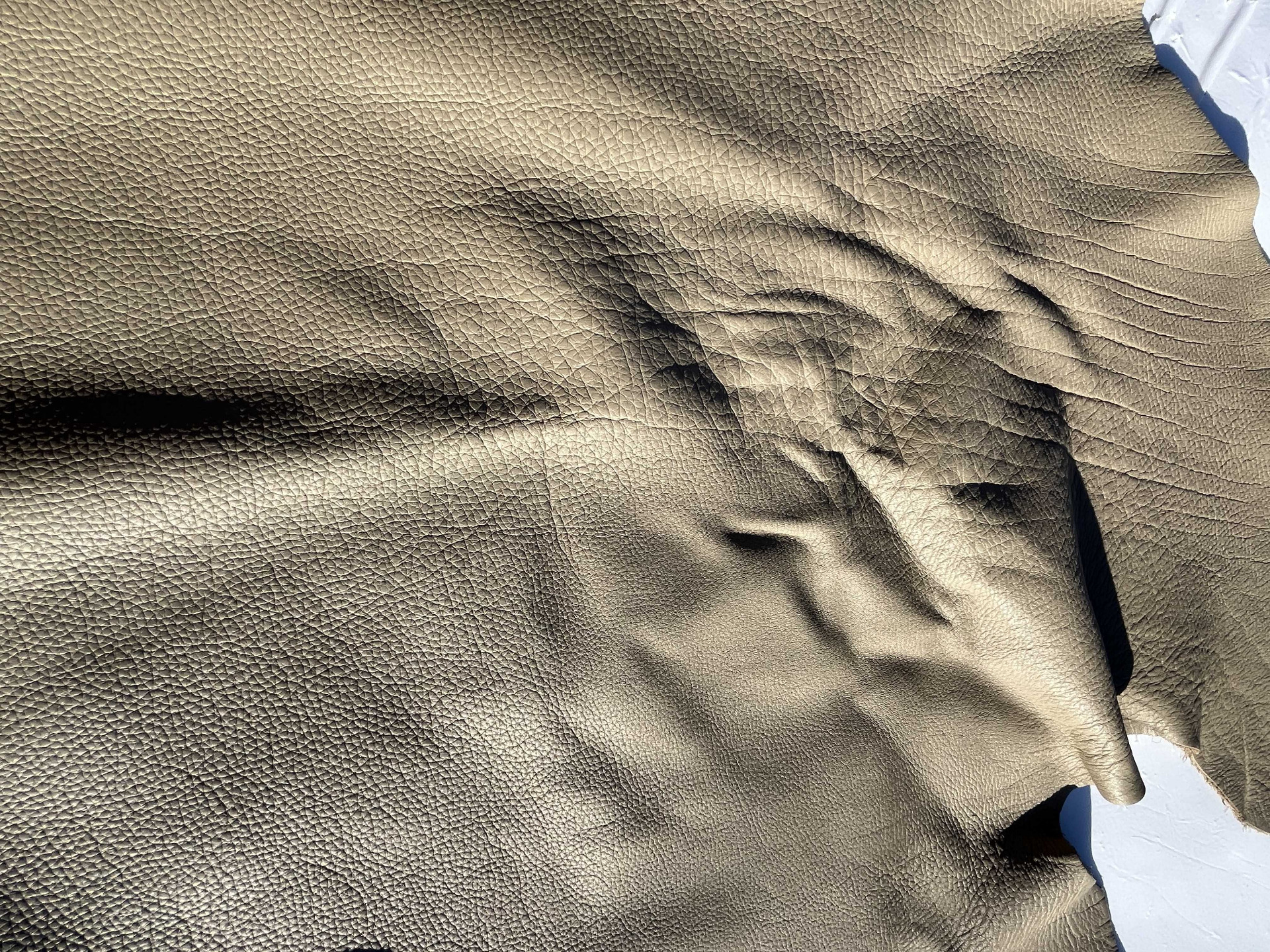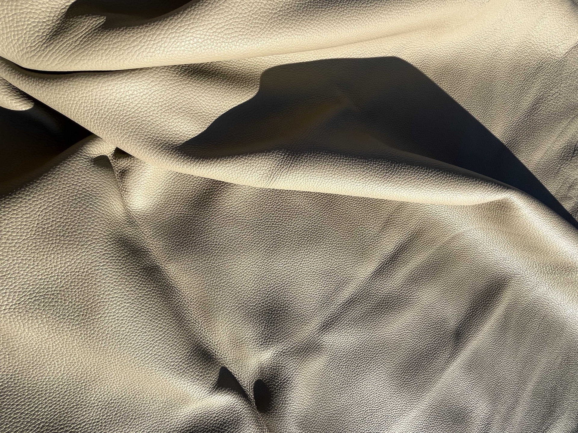 Pelle di bovino intera martellata colore Avorio, grande dimensione, mano morbida, grana dollaro per la produzione di interni auto, nautica, rivestimento divani e poltrone, articoli di pelletteria e molto altro.