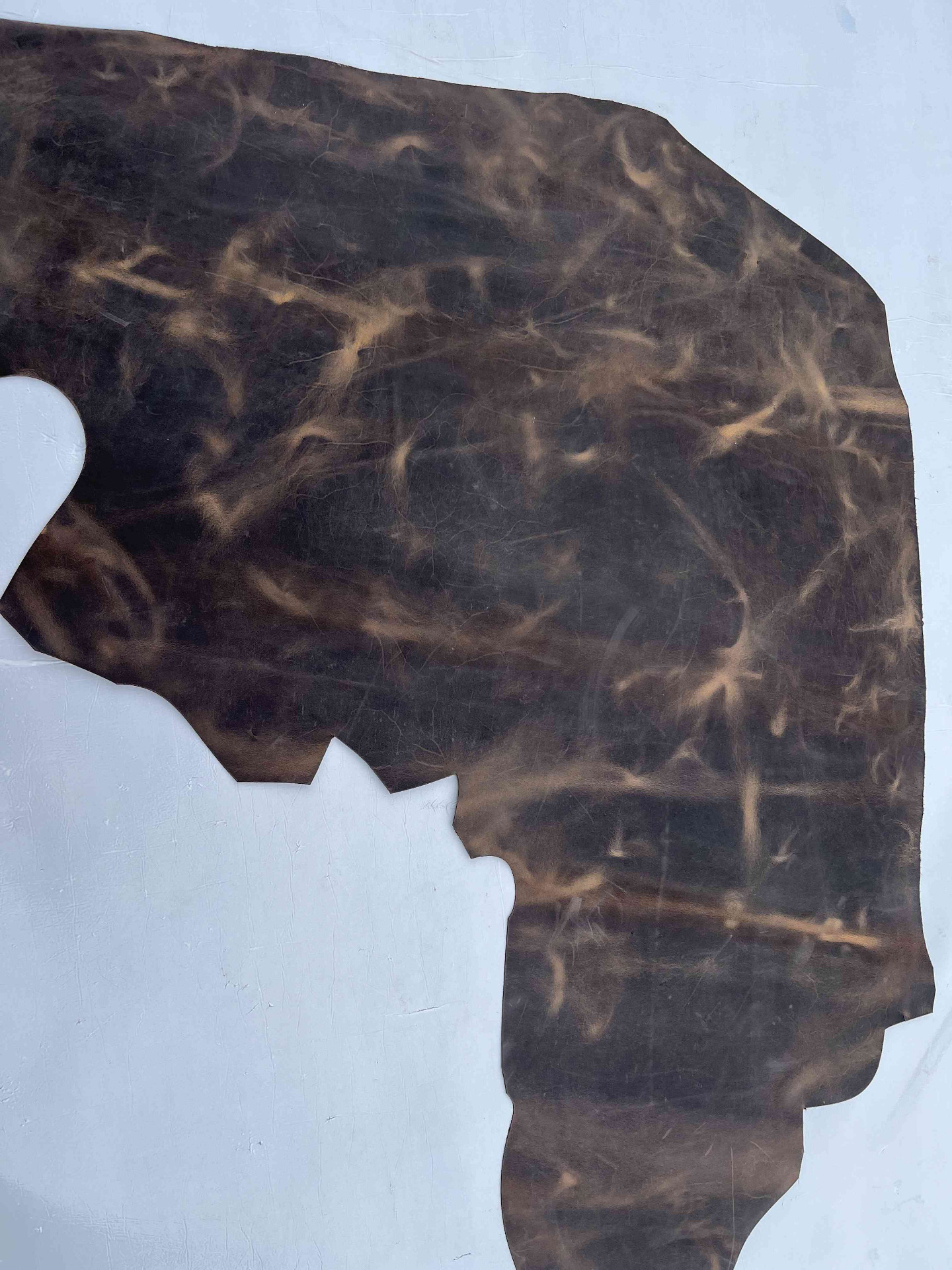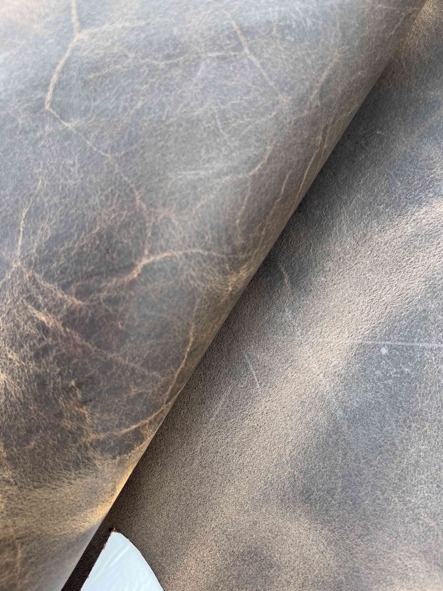 Scampolo pellame di vitello trattamento Crazy Horse (pull-up) cerato effetto schiarente, mano morbida e pastosa al tatto, ideale per borse, borselli, cartelle, zaini, portachiavi, legatoria e molto altro.