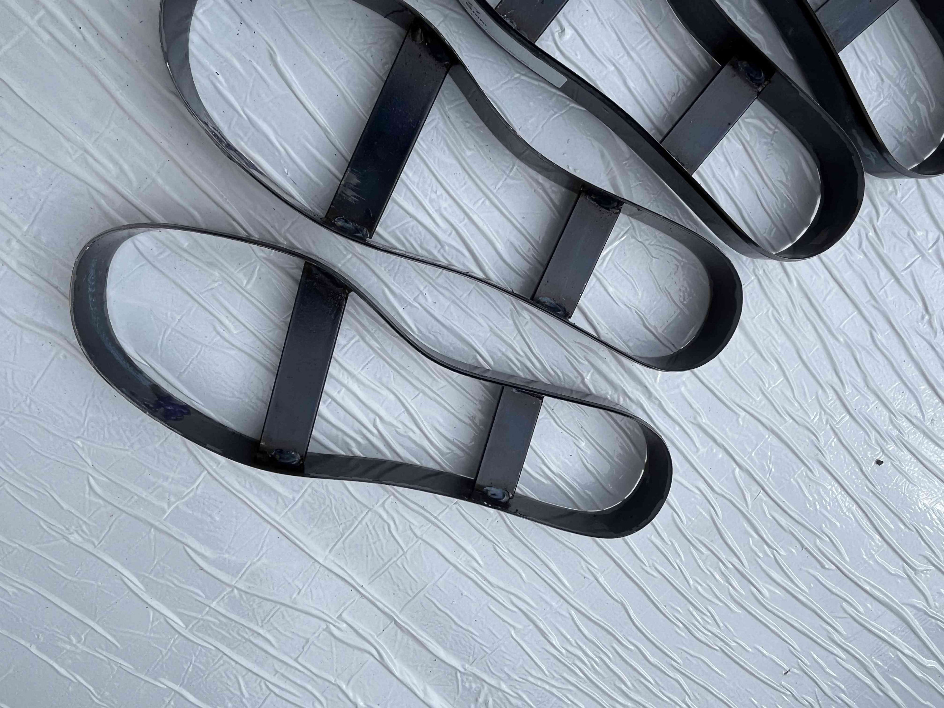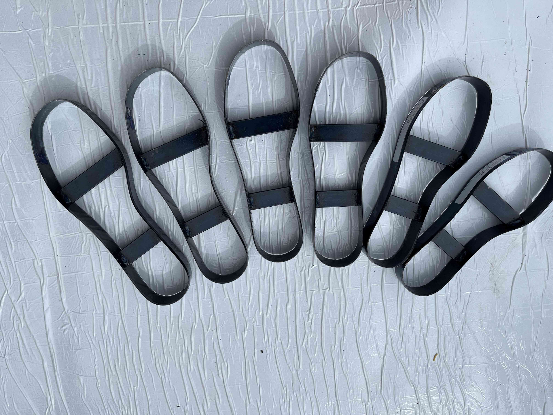 Serie di fustelle in acciaio usate per taglio delle suola sandali e infradito donna, set completo fustelle in acciaio austriaco due millimetri di spessore e trenta millimetri di altezza, fustelle con pochissime battute all'attivo in condizioni equiparabili al nuovo.