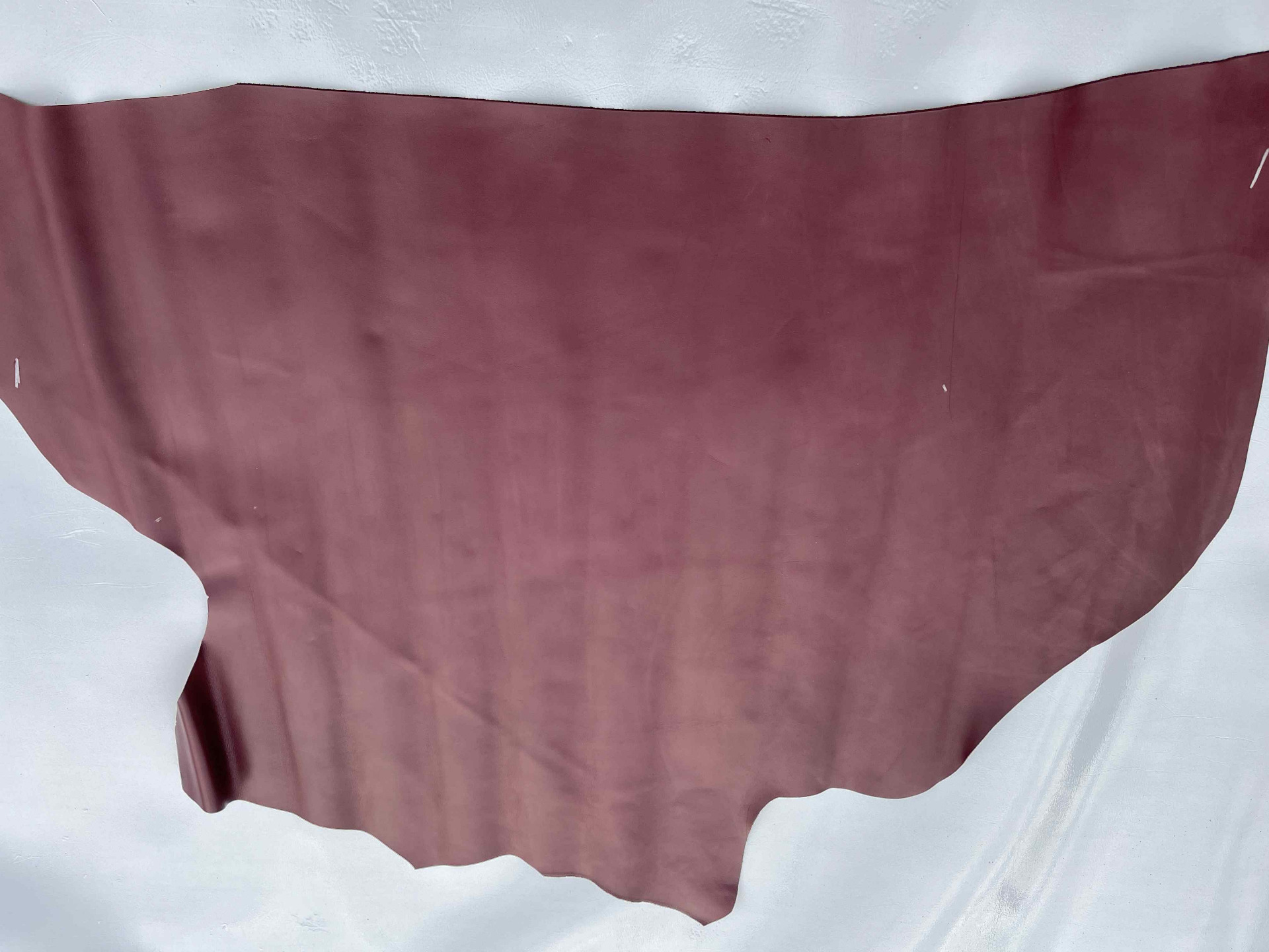 Pelle morbida di vitello colore bordò per artigianato, pellame pieno fiore soffice al tatto con un aspetto semi lucido, caratteristiche ideali per realizzare piccola pelletteria, borselli, portafogli, portachiavi, tappezzeria, articoli per animali e molto altro.