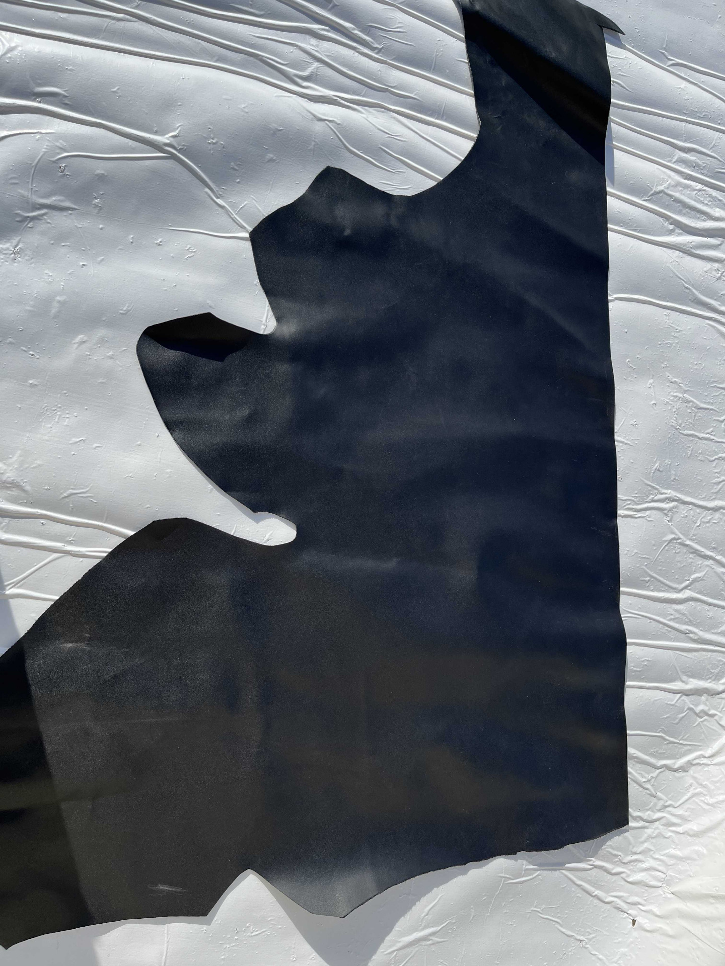 Scampolo pellame di vitello liscio colore Nero, grana corretta, aspetto semi lucido, mamo morbida e pastosa, caratteristiche ideali per la creazione di piccola pelletteria, calzature artigianali, legatoria e molto altro.