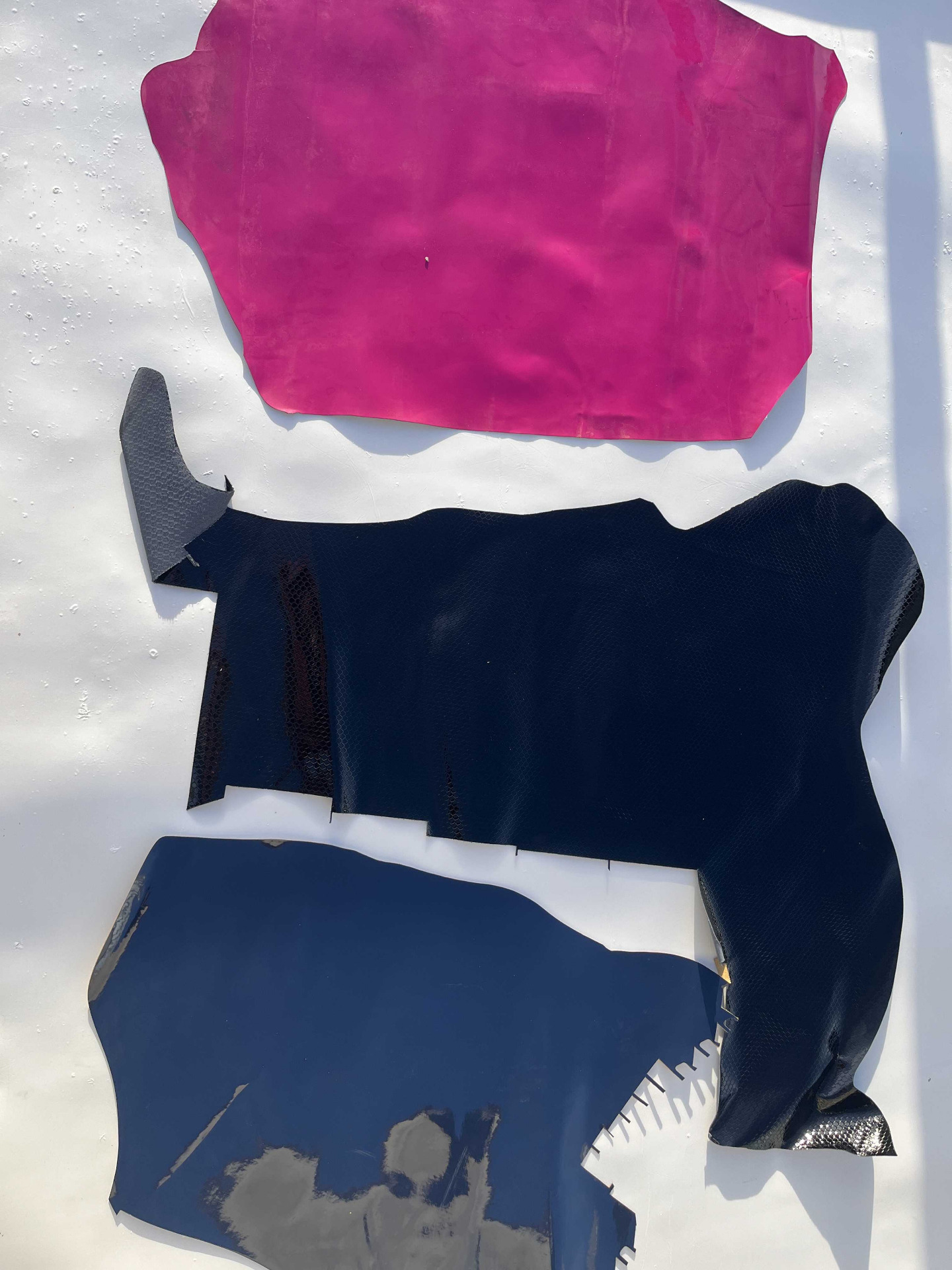 Scampoli pelle di vitello verniciata lucida colori e spessori vari, ideali per hobby creativi, piccoli progetti di pelletteria, portachiavi, braccialetti, collari e molto altro.