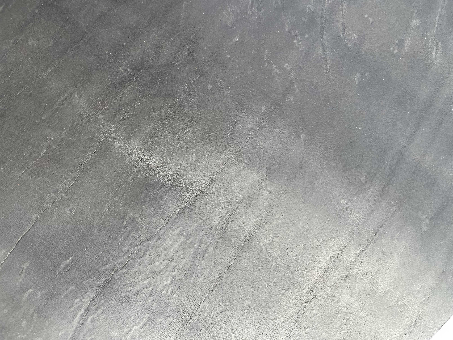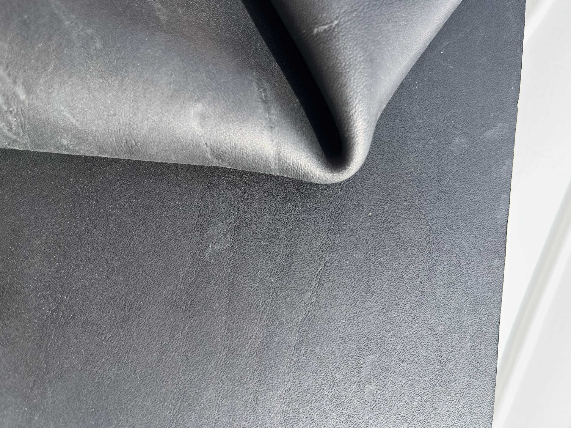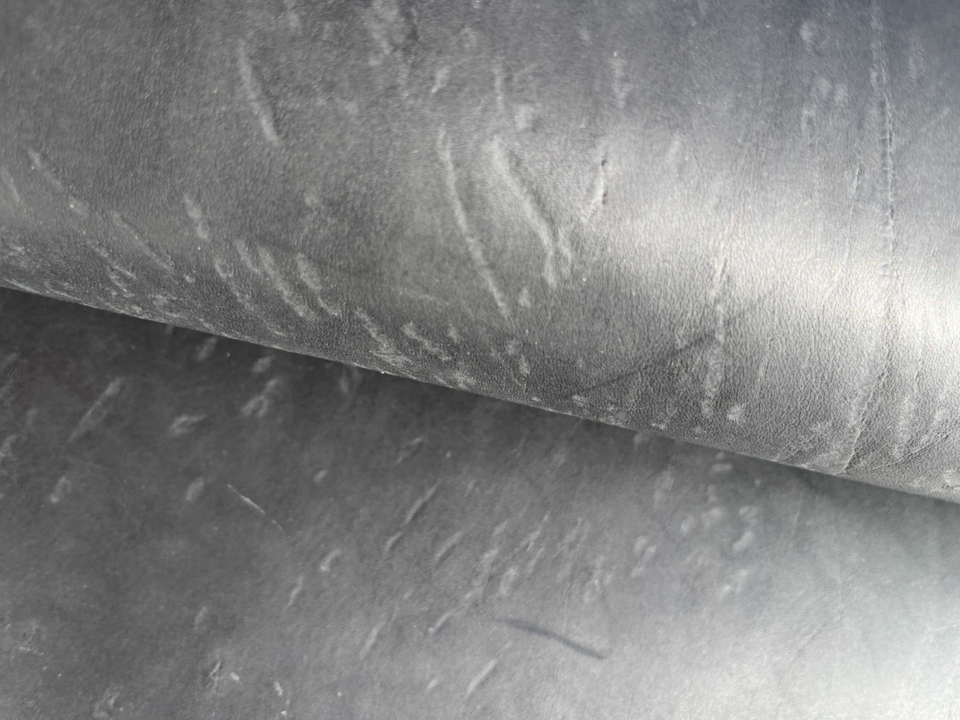 Pellame conciato 100% a vegetale di colore nero, pelle spessa, pieno fiore, anilina pura di botte invecchiato a pietra, segni e imperfezioni non sono da considerarsi difetti, ma caratteristiche naturali della sua unicità. Pellame a poro aperto ad elevata penetrazione (no ingrasso al sego) ideale per articoli artigianali di pelletteria e calzatura tuffati o tamponati manualmente effetto vintage, ampiamente utilizzato nella produzione di sandali francescanj, svuotatasche, fondine, incisione e molto altro.