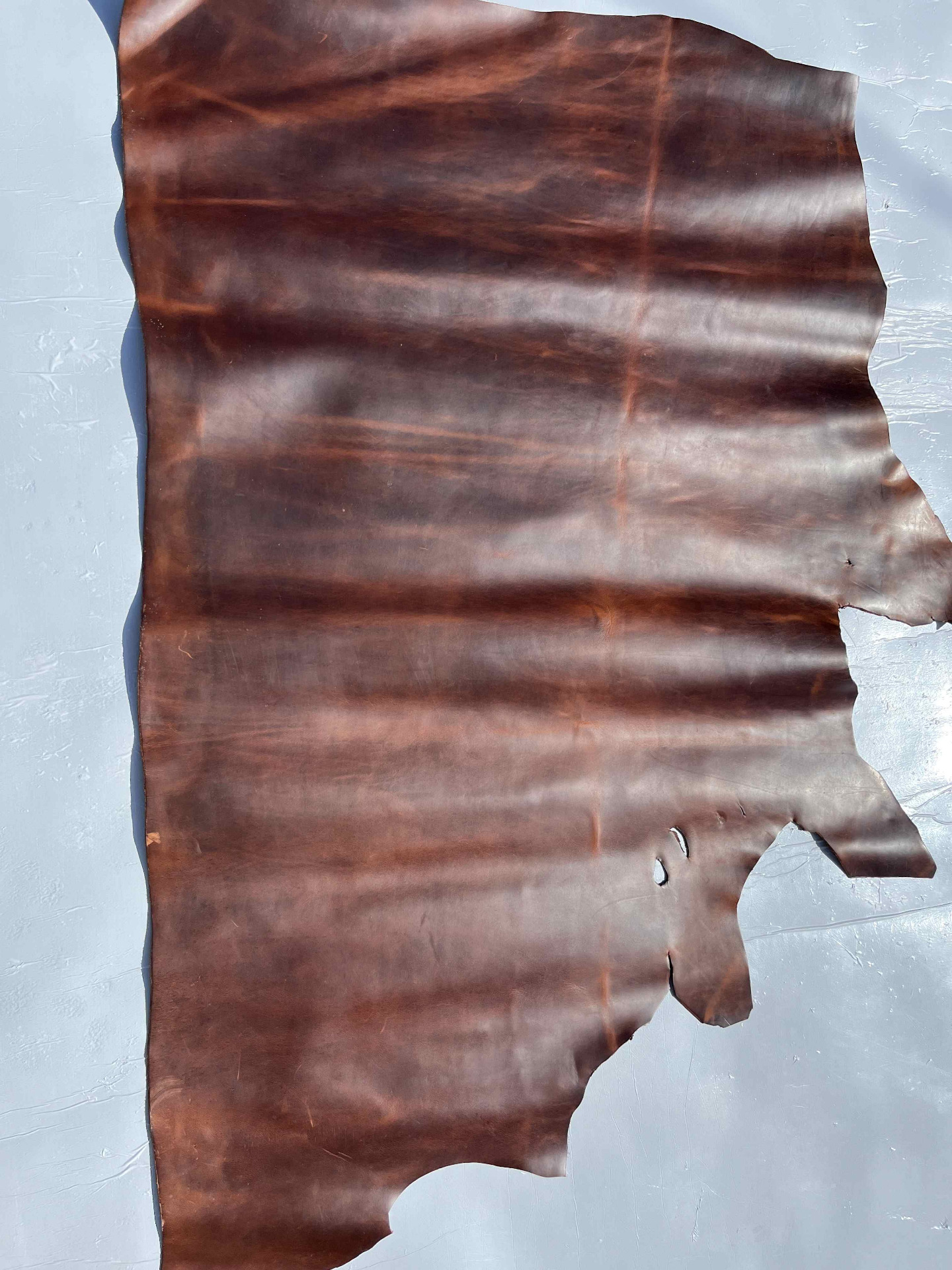 Culatta conciata 100% a vegetale effetto Crazy Horse (Pull up), mano morbida e pastosa, anilina pura di botte senza nessuna correzione in rifinizione, morbida al tatto di colore brandy, grana naturale, pellame ideale per la produzione di pelletteria artigianale, portachiavi, svuotatasche, collari, fondine, cinturini, selleria, nautica, articoli per animali, legatoria, incisione e molto altro