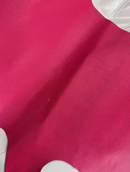Pellame di vitello da pelletteria e calzatura di colore Fucsia stampato in rilevo per imitare la trama della paglia, pellame liscio semirigido, aspetto semi lucido elegante, caratteristiche ideali per realizzare borse, sandali, zoccoli, ciabatte, infradito, borselli, portafogli, portachiavi, collari, cinturini orologi, articoli per animali e molto altro.