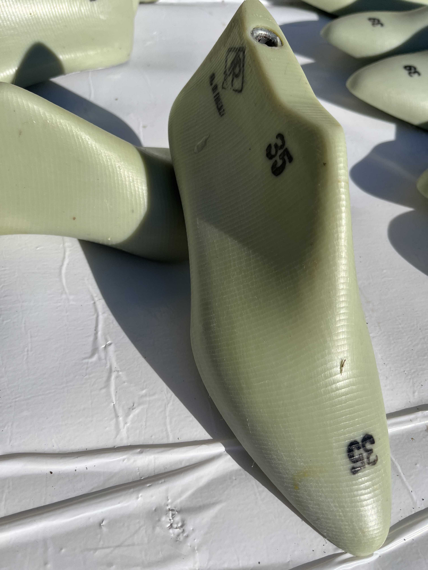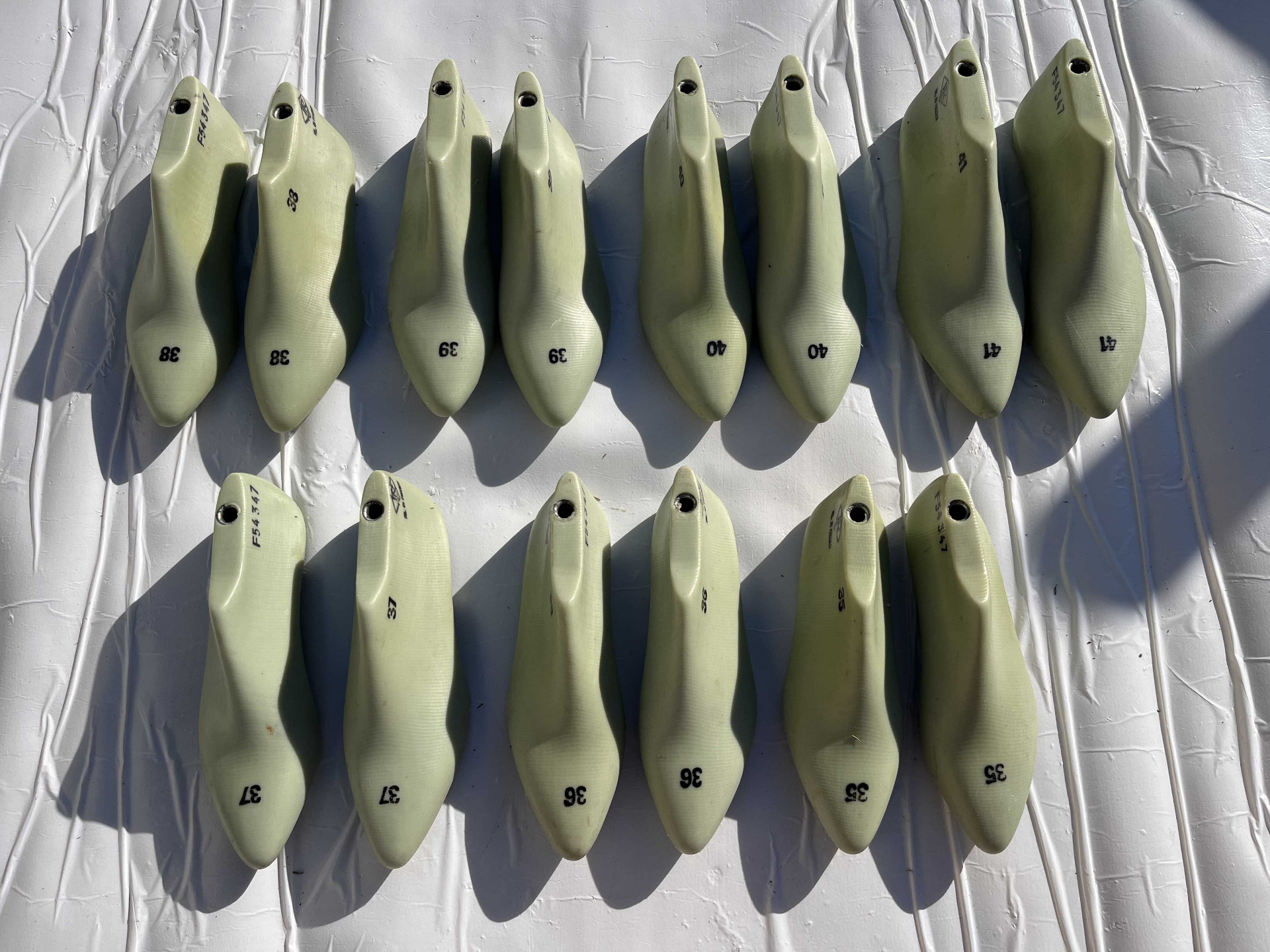 Serie completa di forme in plastica per scarpe ballerine a punta sfilata, classica forma senza tempo, perfetta nella calzata, comoda ed elegante, usate in condizioni pari al nuovo.