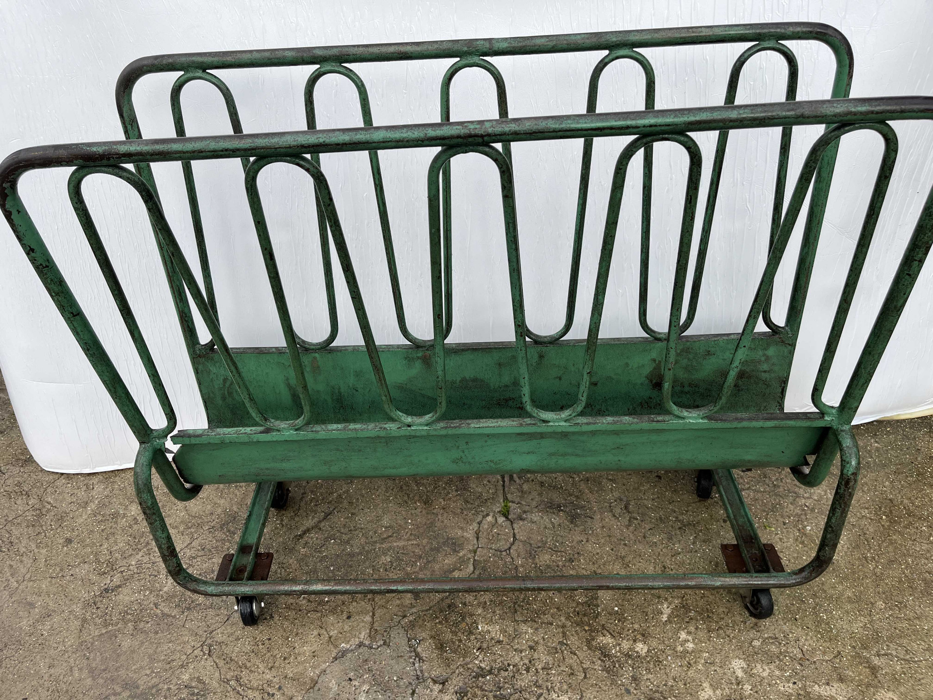 Carrello industriale primi anni 60 porta lastre, ampiamente utilizzato da calzolai e corniciai per appoggiare materiali, cuoio, gomma, cartone, cristallo, quadri, realizzato in ferro tubolare con ruggine passante, guardare le immagini