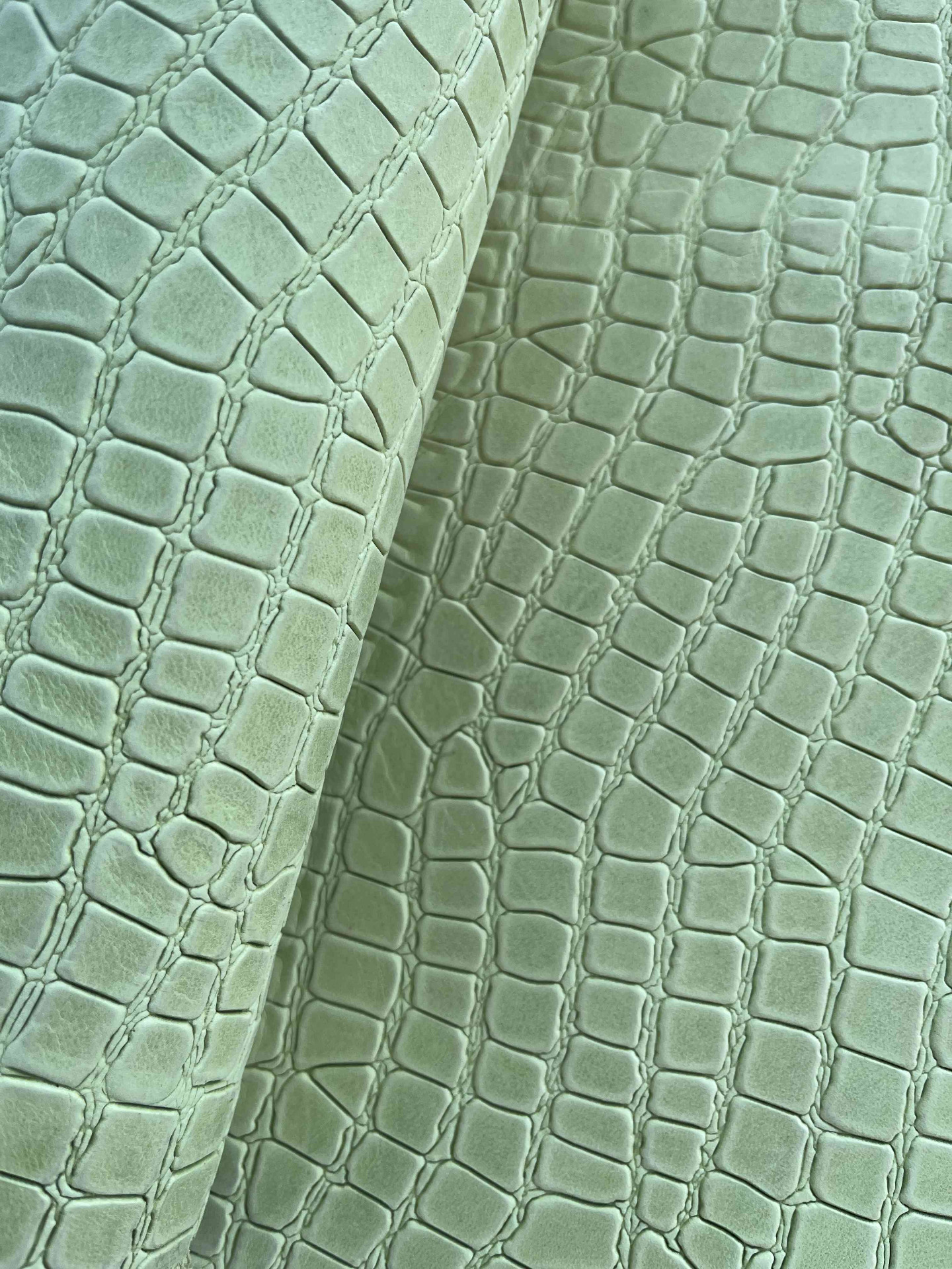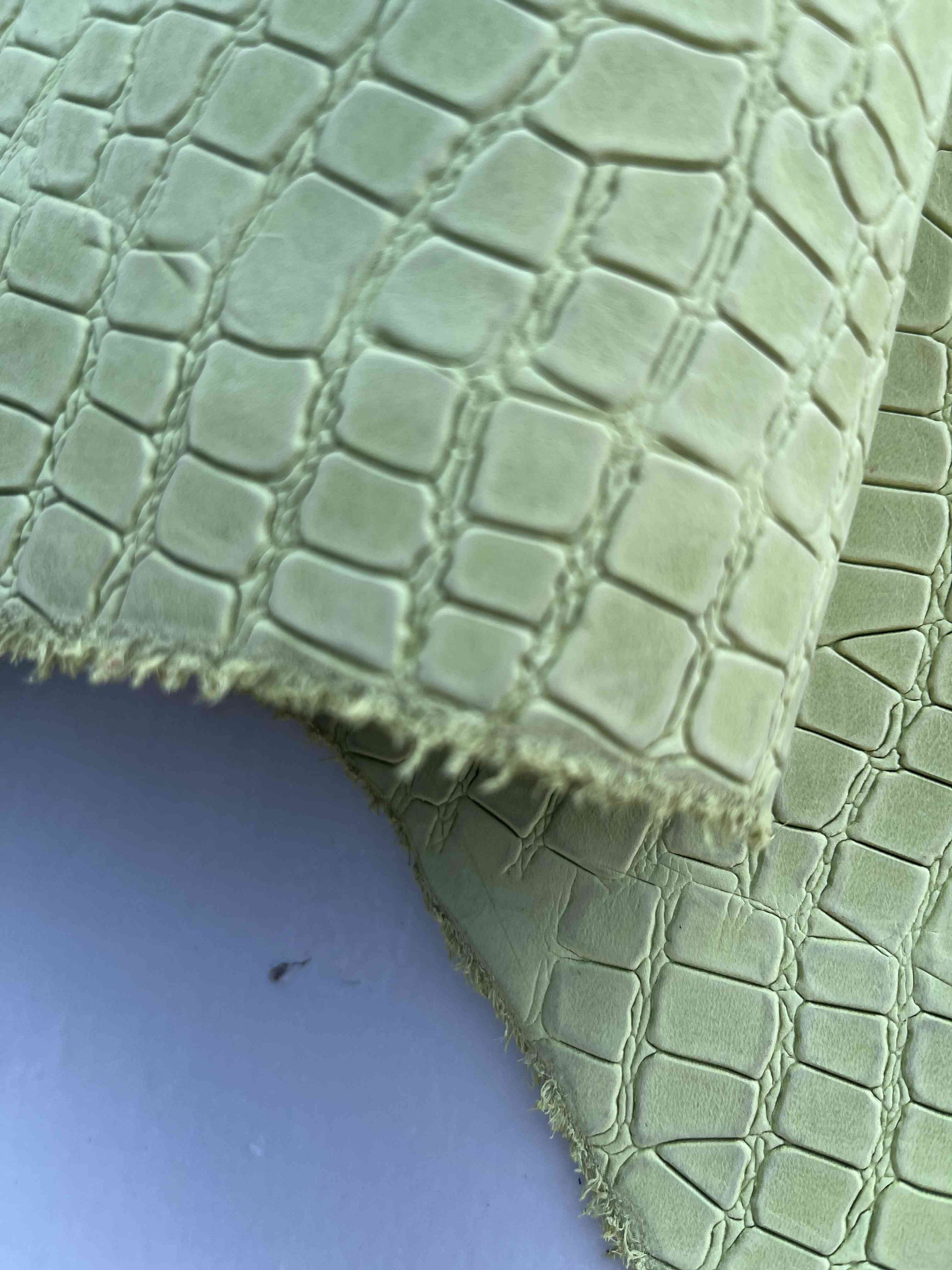 Pellame a vegetale di colore verde pistacchio finitura nabuk, senza nessuna correzione in rifinizione, bellissima stampa in rilievo, eventuali differenze di colore non sono da considerarsi difetti bensì peculiarità del nabuk naturale, ideale per la produzione artigianale di calzature e pelletteria, sandali, ciabatte, infradito, cinture, borse, cartelle, tracolle, zaini, braccialetti, svuotatasche, fondine, portachiavi, legatoria, agende, incisione e molto altro.