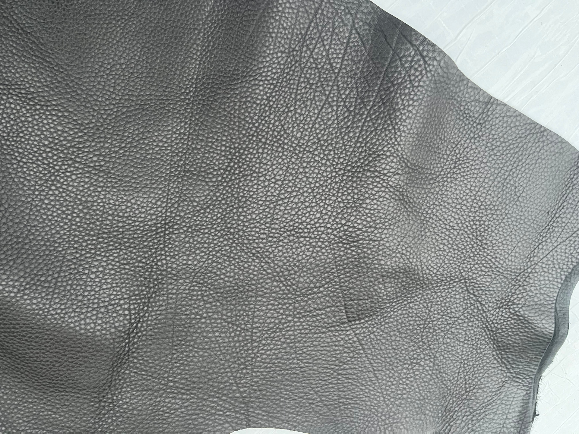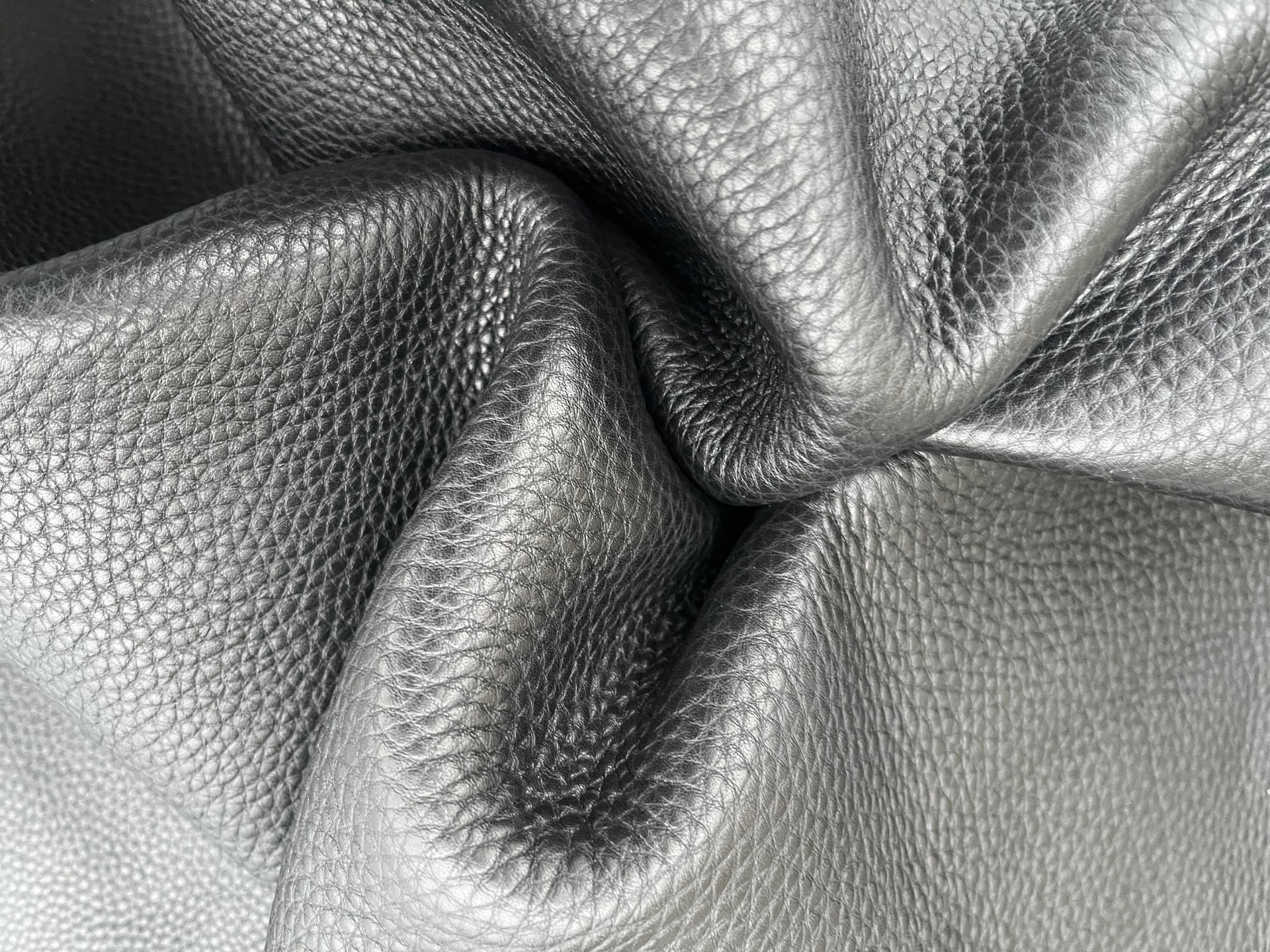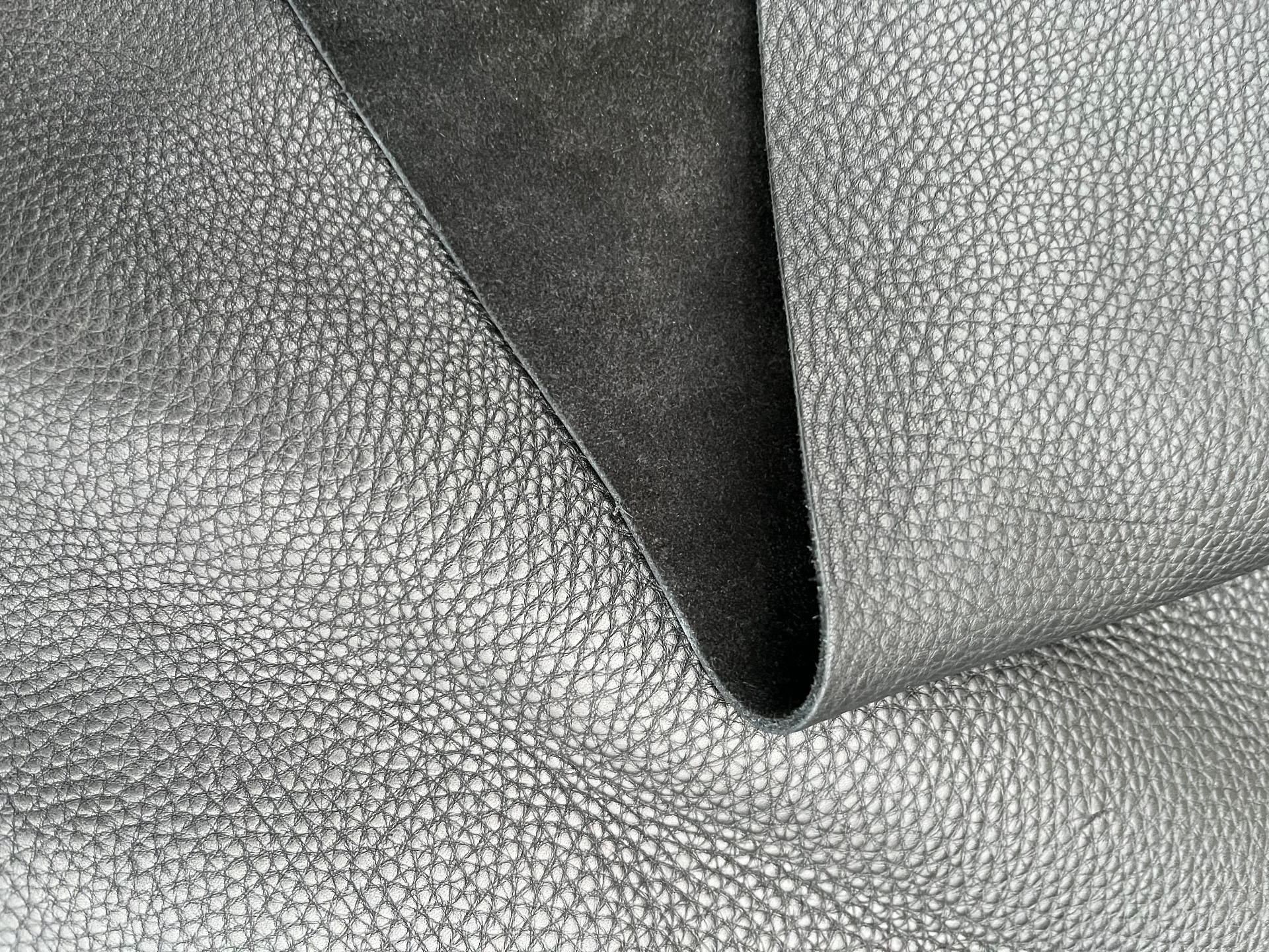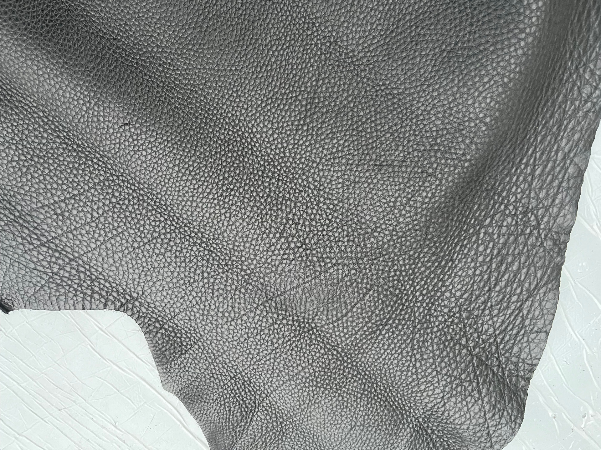 Pellame di vitello bottalato morbido al tatto di colore nero, pellame spesso e di alta qualità, pieno fiore con una bellissima grana naturale, anilina di botte senza nessuna correzione in rifinizione, segni, imperfezioni e alterazioni di colore non sono da considerarsi difetti, ma certificano la genuinità della materia prima esclusivamente naturale per la produzione di borse, borselli, cartelle, zaini, portachiavi, legatoria e altri articoli di pelletteria.