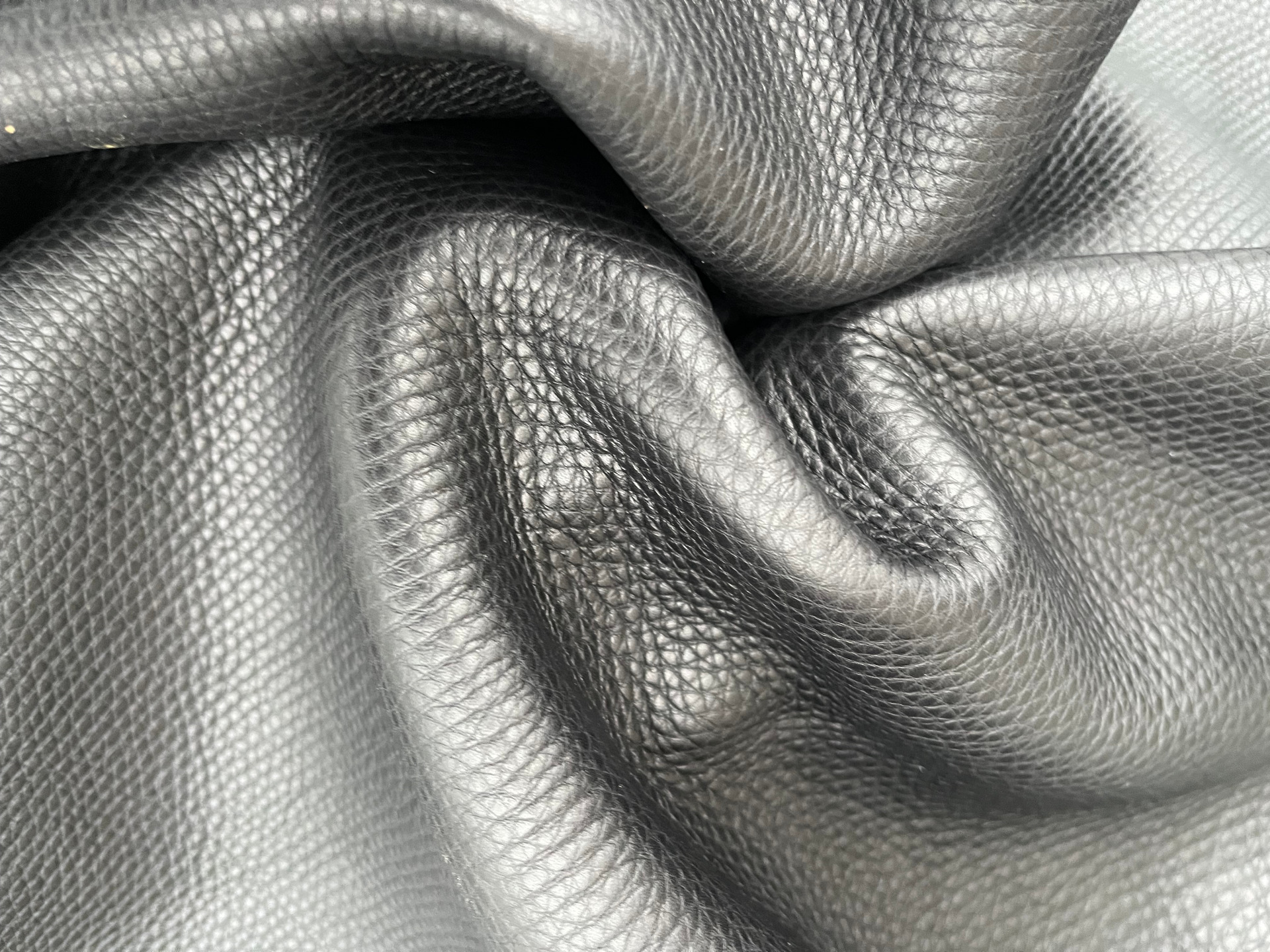 Pellame di vitello bottalato di colore nero, morbido al tatto con una bellissima stampa a trama, alto spessore per realizzare piccola pelletteria, borselli, portafogli, portachiavi, svuotatasche, collari, cinturini, selleria, nautica, articoli per animali e molto altro.