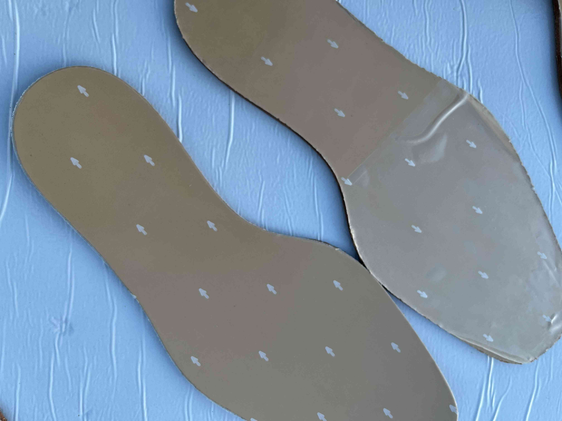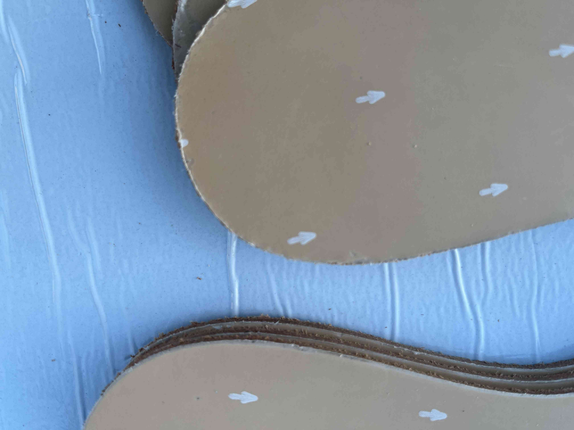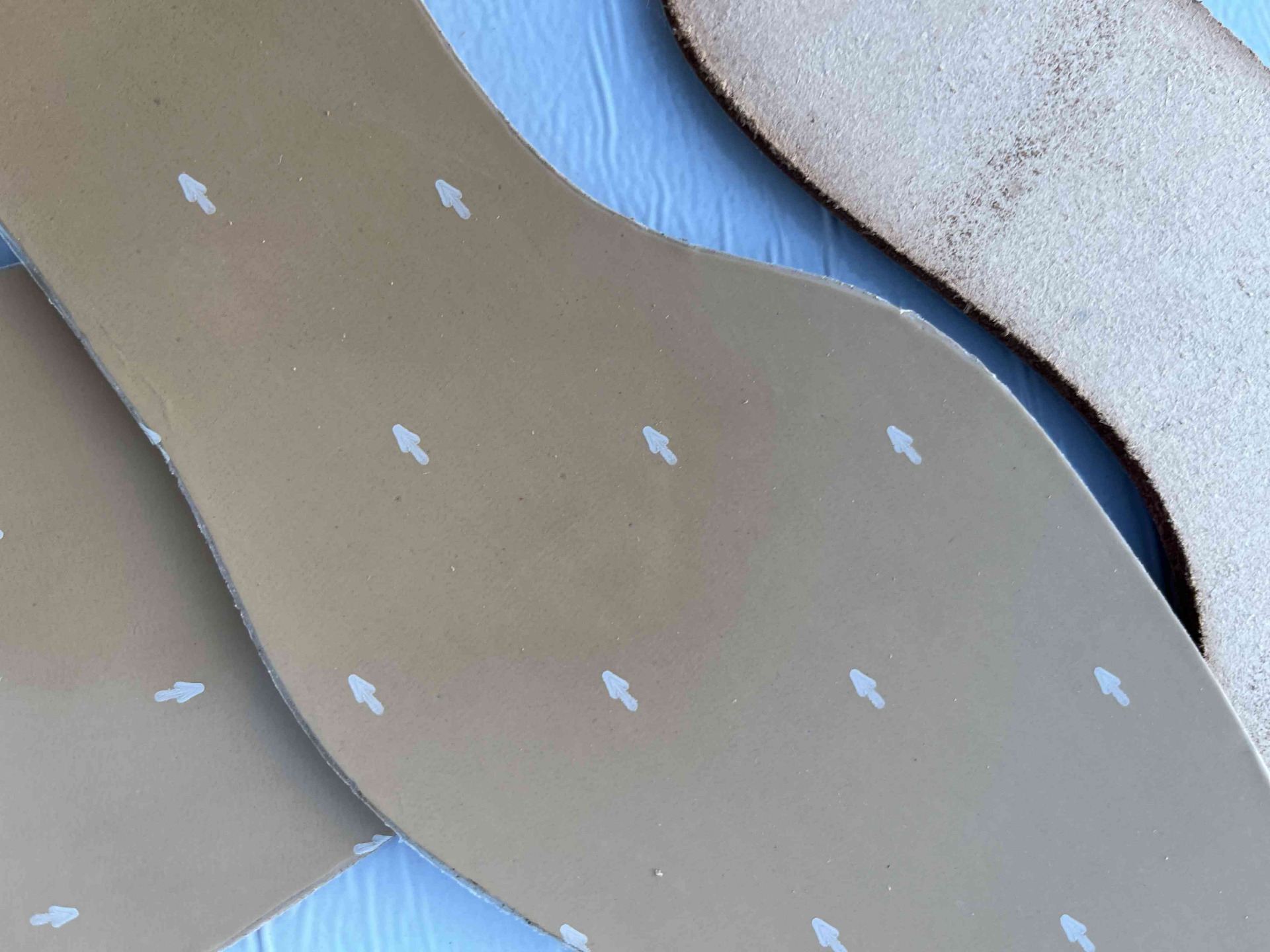 Suola scarpe donna in vero cuoio colore camel. fresate ed ugualizzate, rimanenza di produzione, misura 26 centimetri.