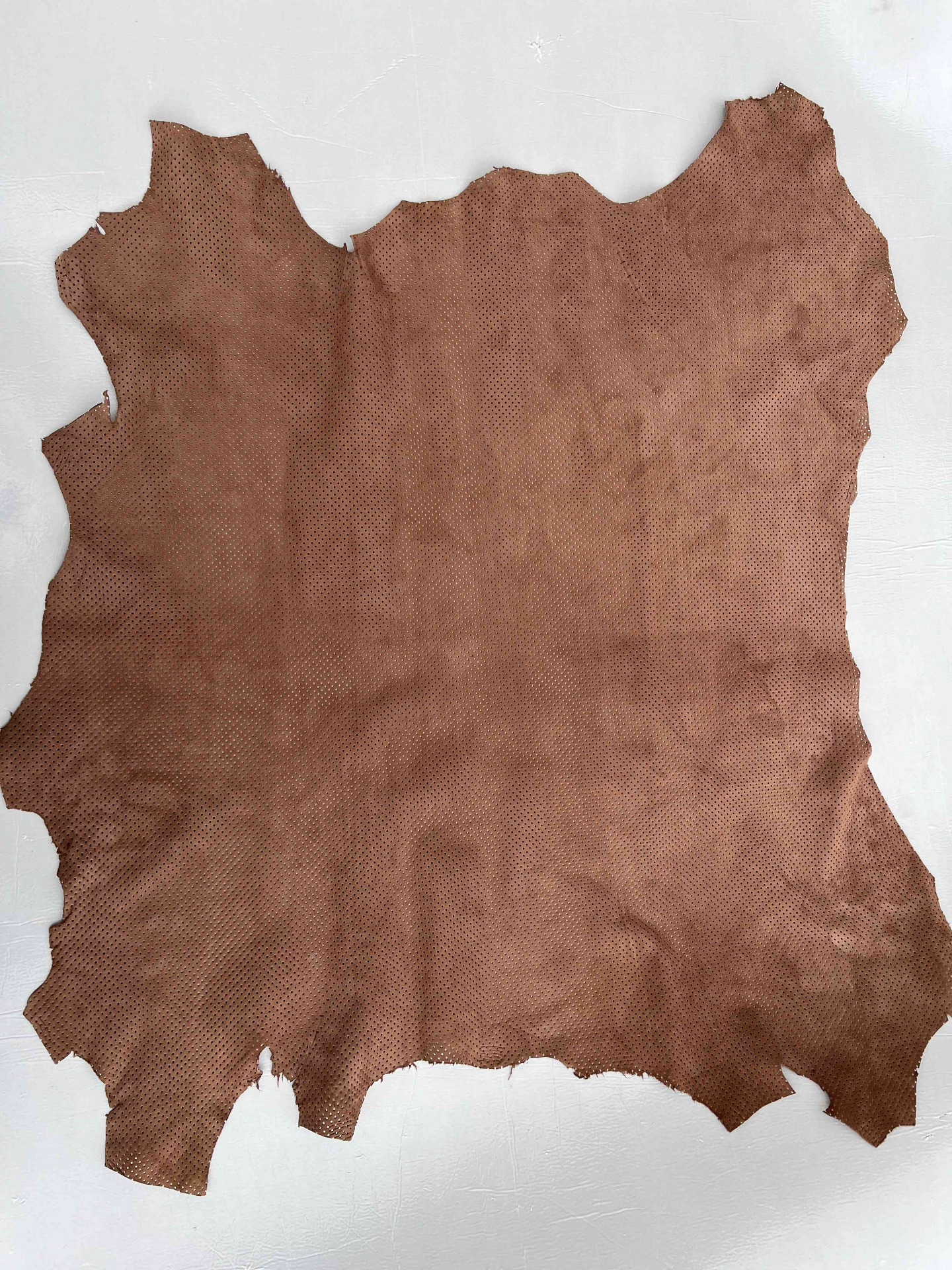 Pellame ovino nappa traforato per il settore Automotive, colore Cocoa,
