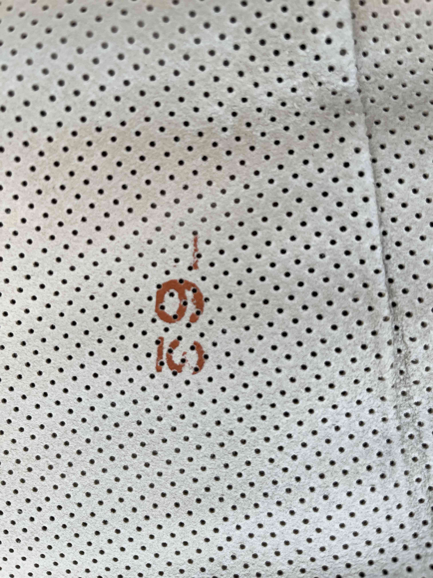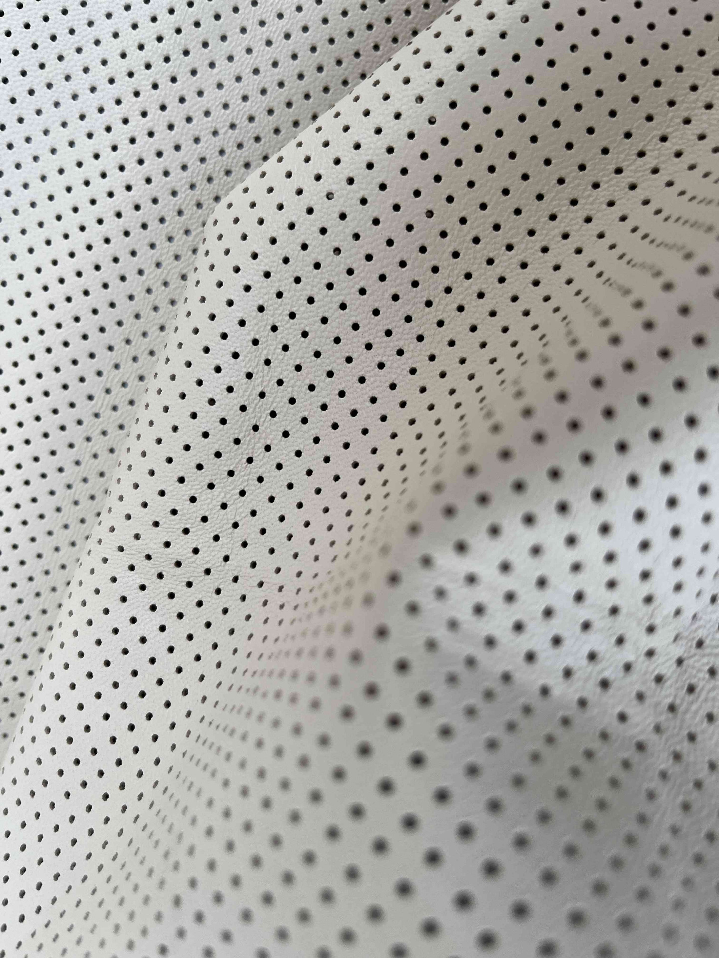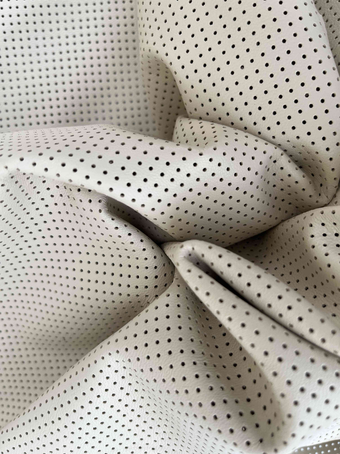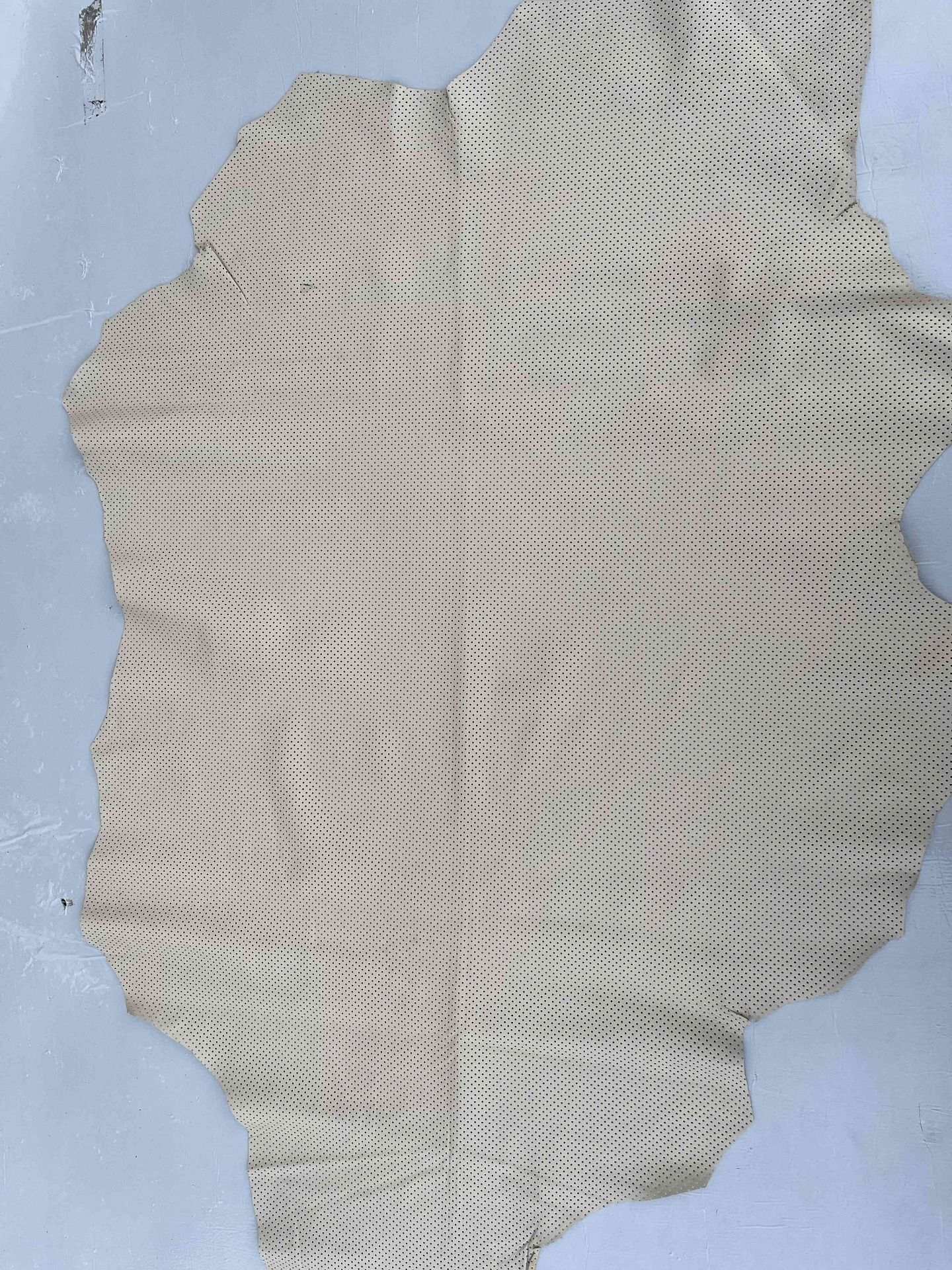 Pellame ovino nappa traforato per il settore Automotive, colore Avorio, mano morbida e pastosa per il rivestimento di volanti auto, cuffie cambio e molto altro.