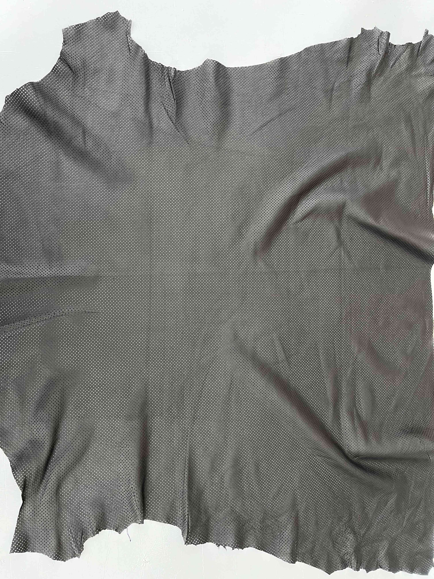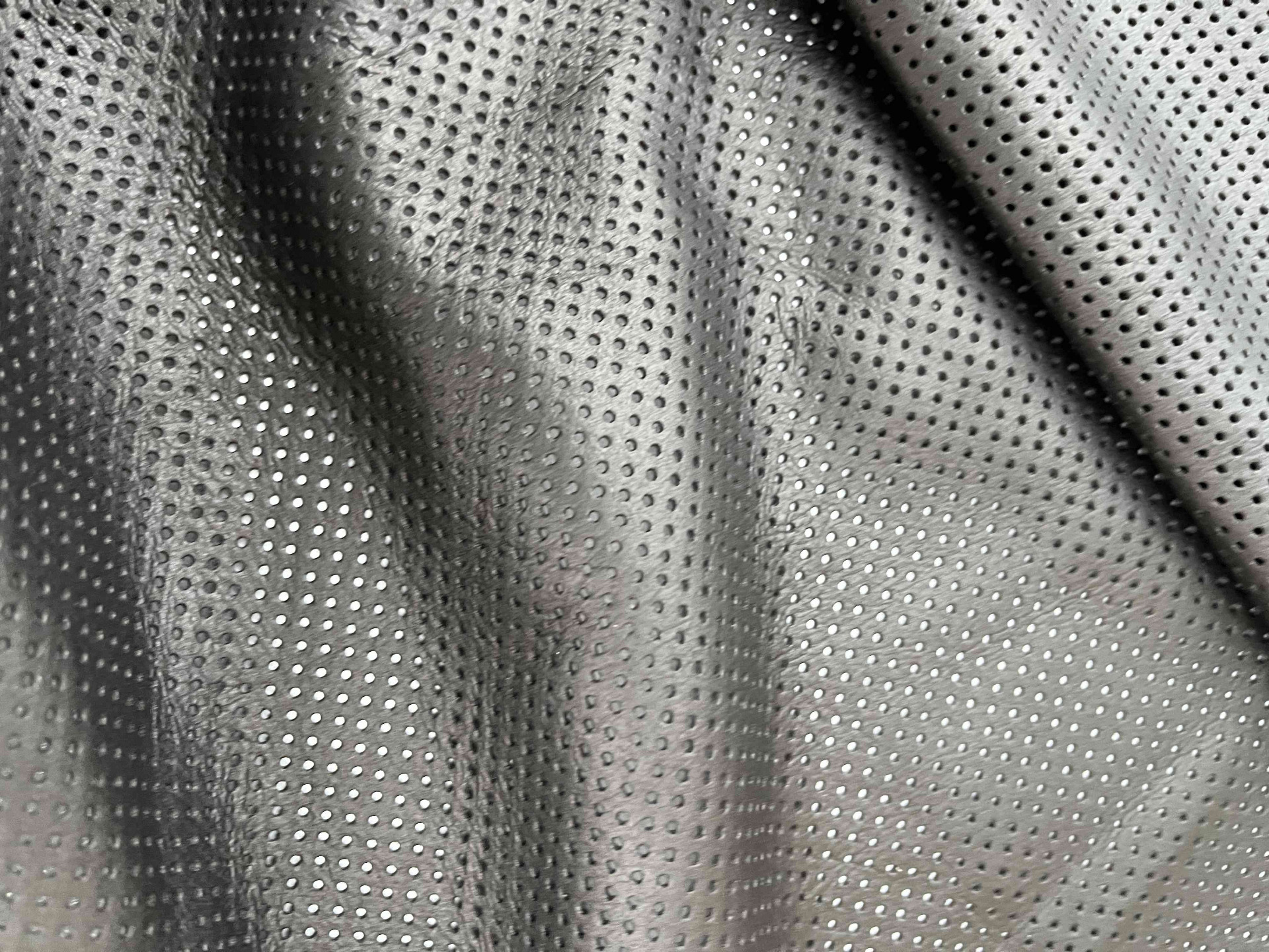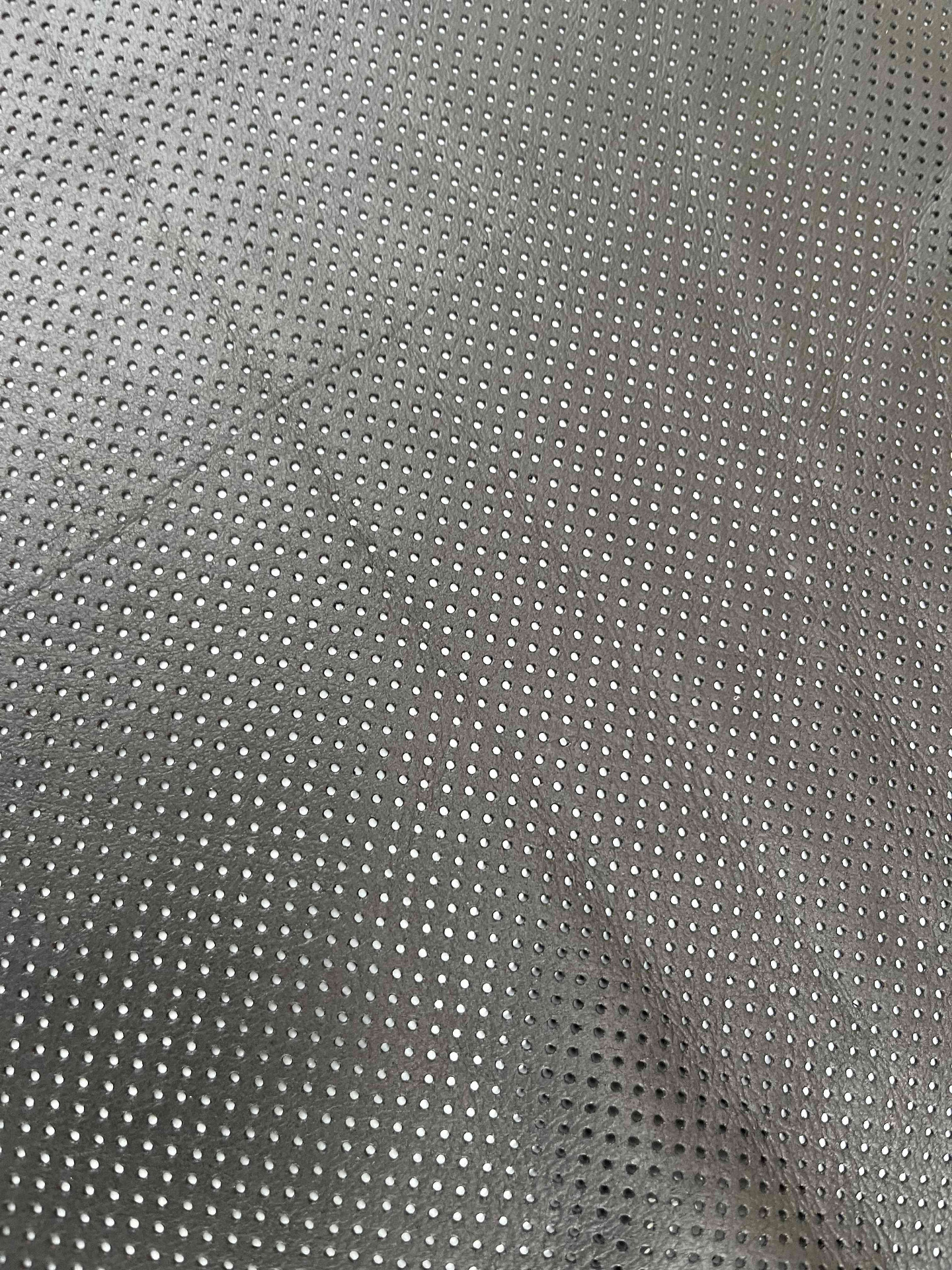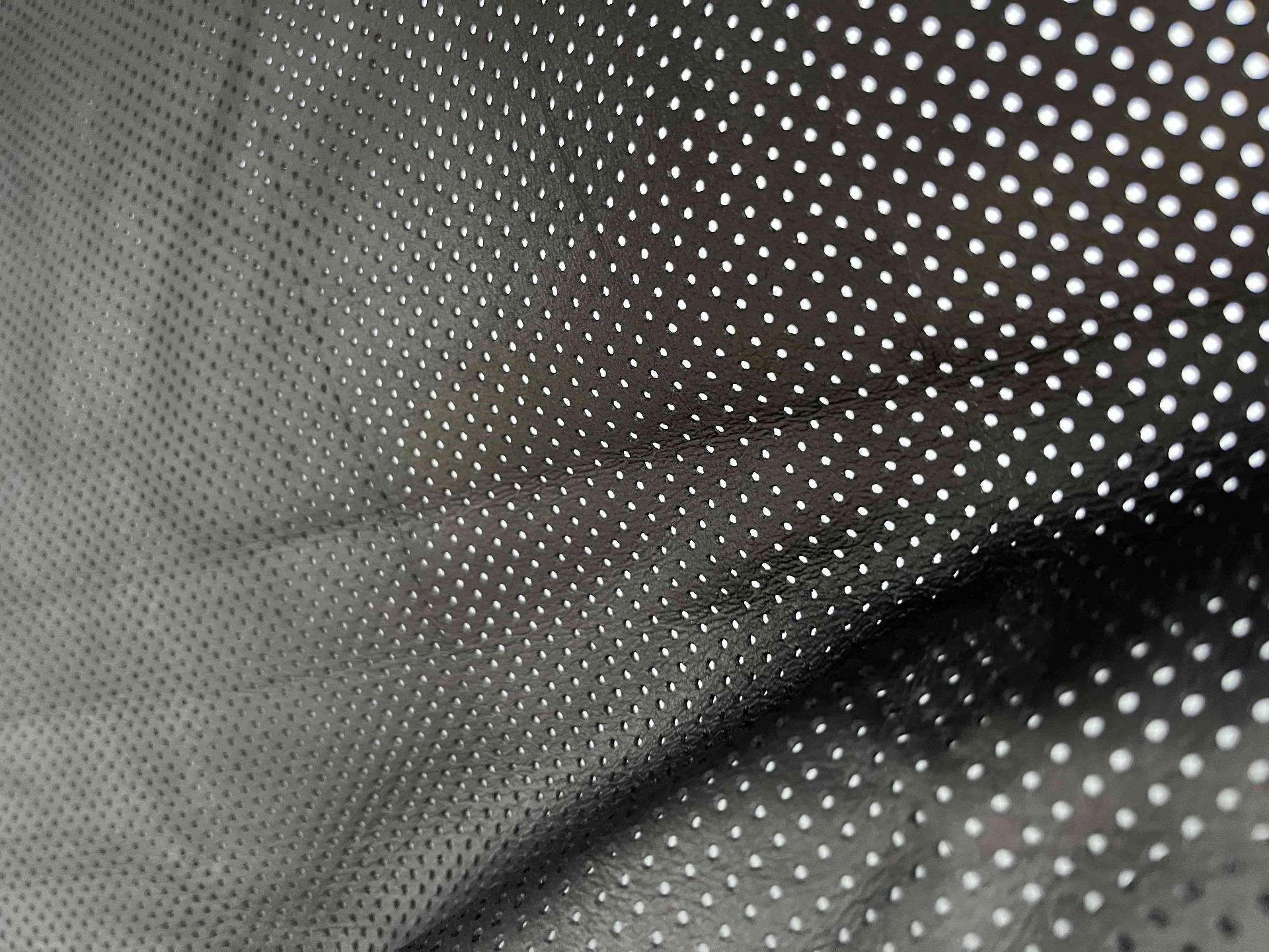 Pellame ovino nappa traforato per il settore Automotive, colore nero, mano morbida e pastosa per il rivestimento di volanti auto, cuffie cambio e molto altro.