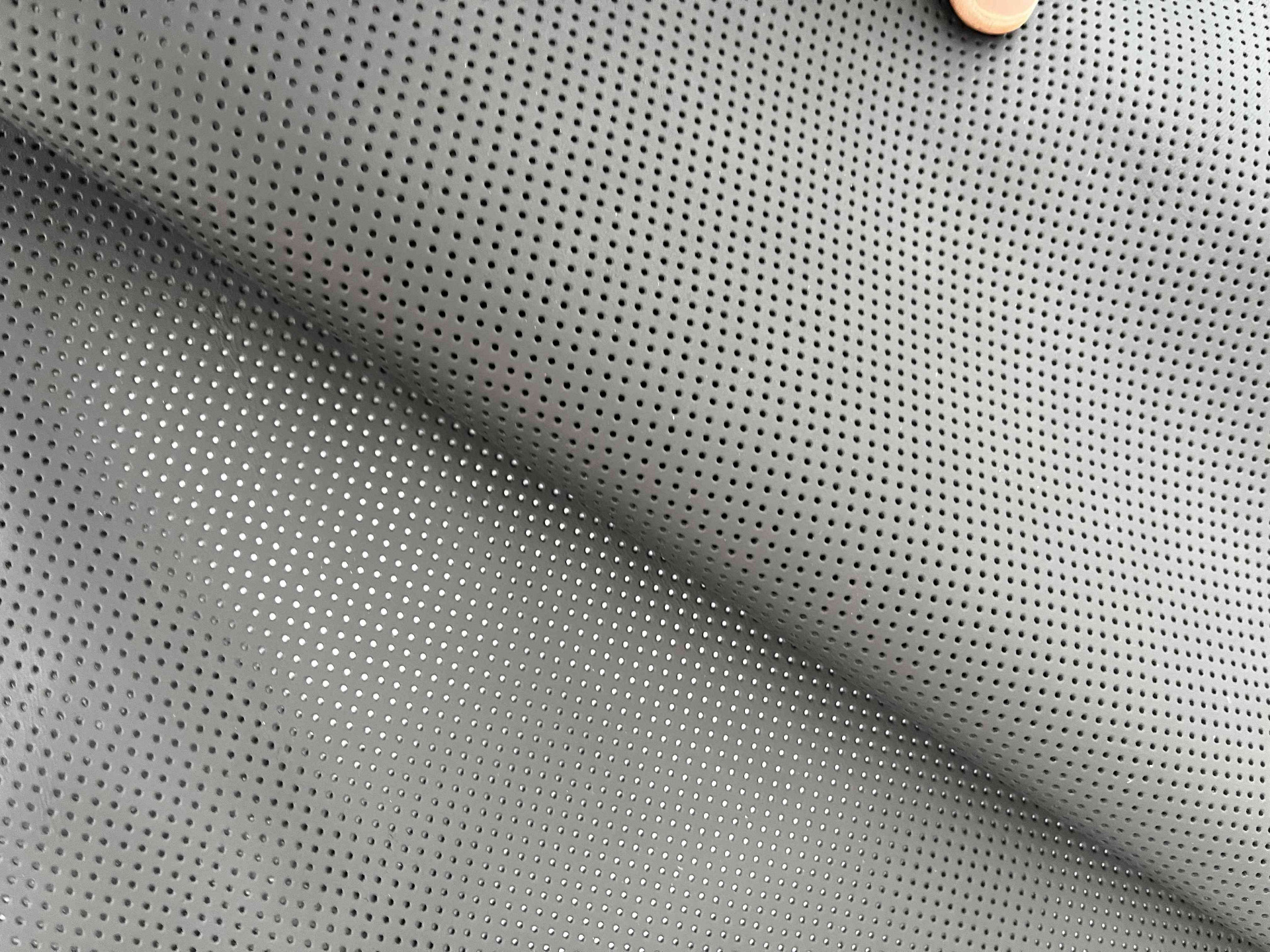 Pellame ovino nappa traforato per il settore Automotive, colore nero, mano morbida e pastosa per il rivestimento di volanti auto, cuffie cambio e molto altro.