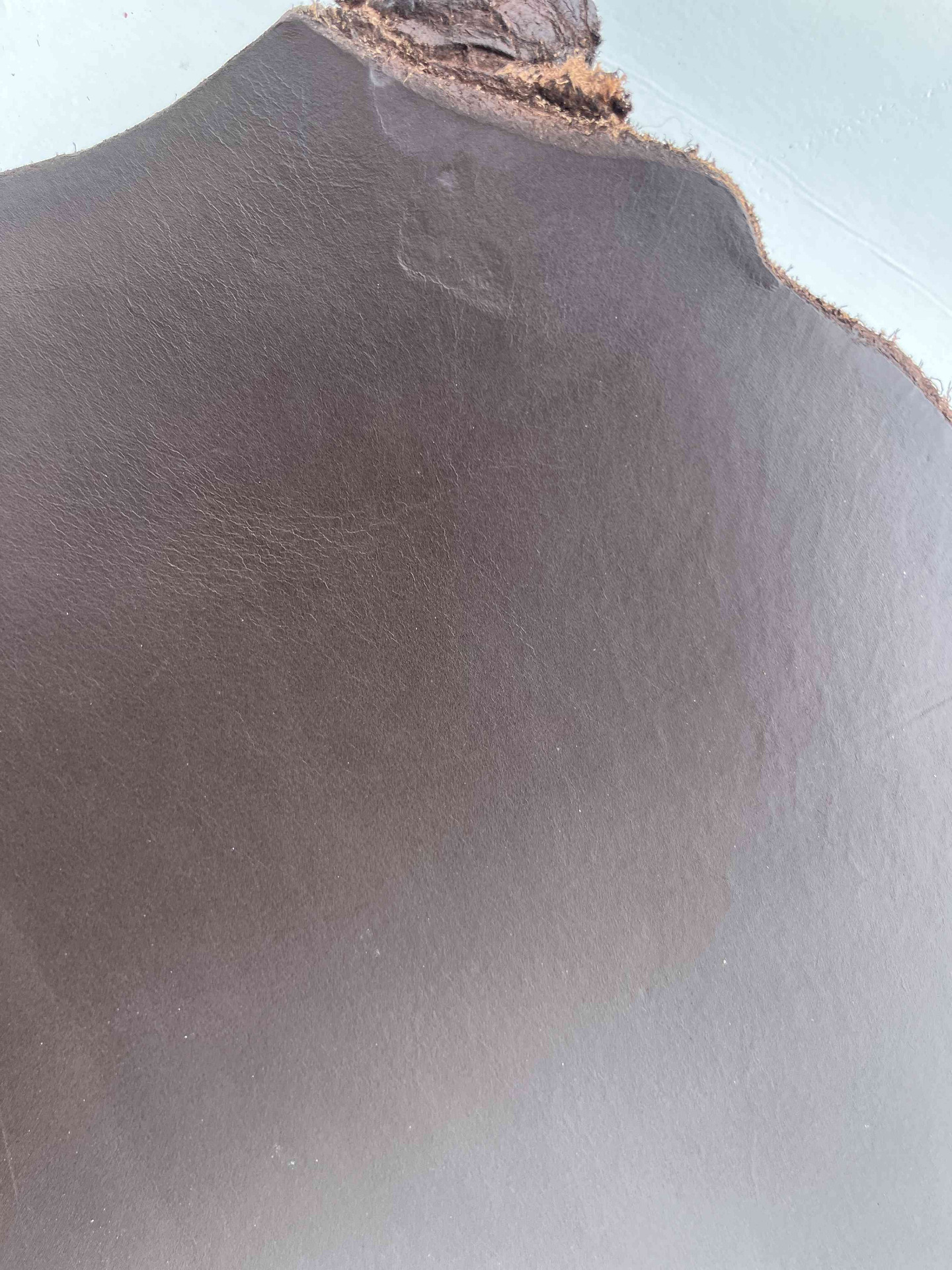 Spalla di Toro grandi dimensioni, alto spessore, pellame conciato 100% a vegetale liscio di colore Marrone ingrassato al sego, pieno fiore, finitura anilina, retro cerato.. qualità Top!