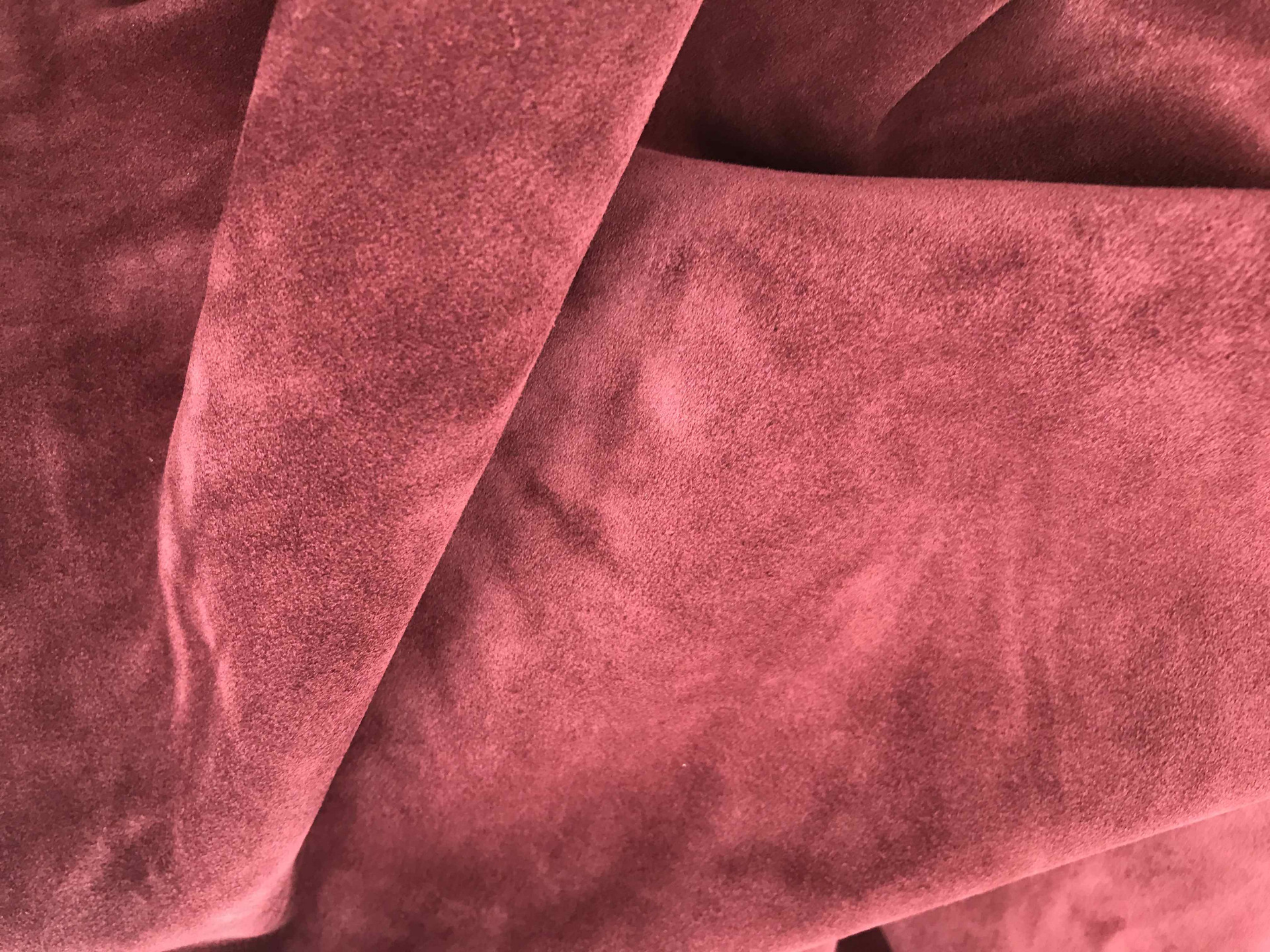 Pellame scamosciato di colore bordò per artigianato, alta qualità,