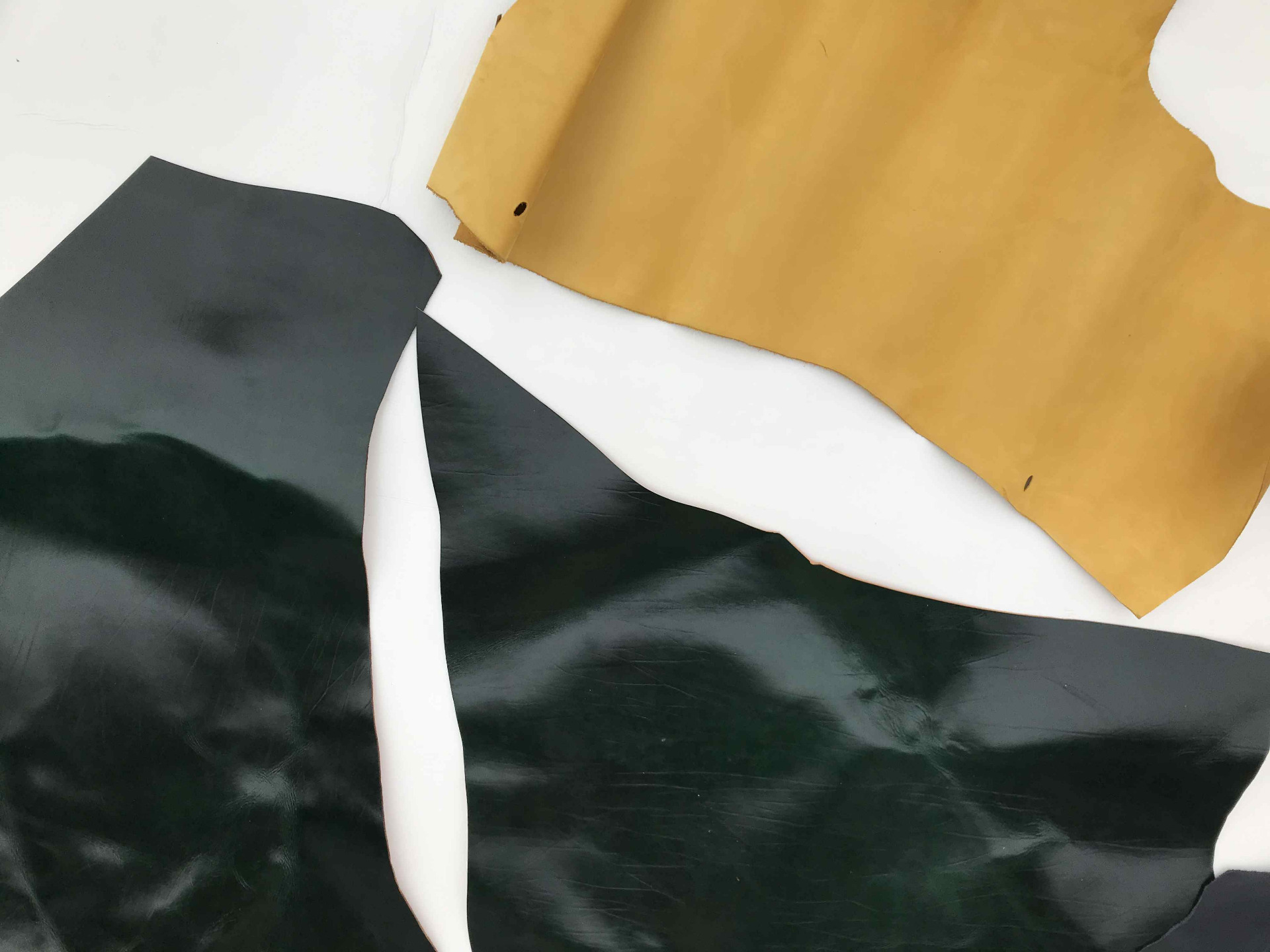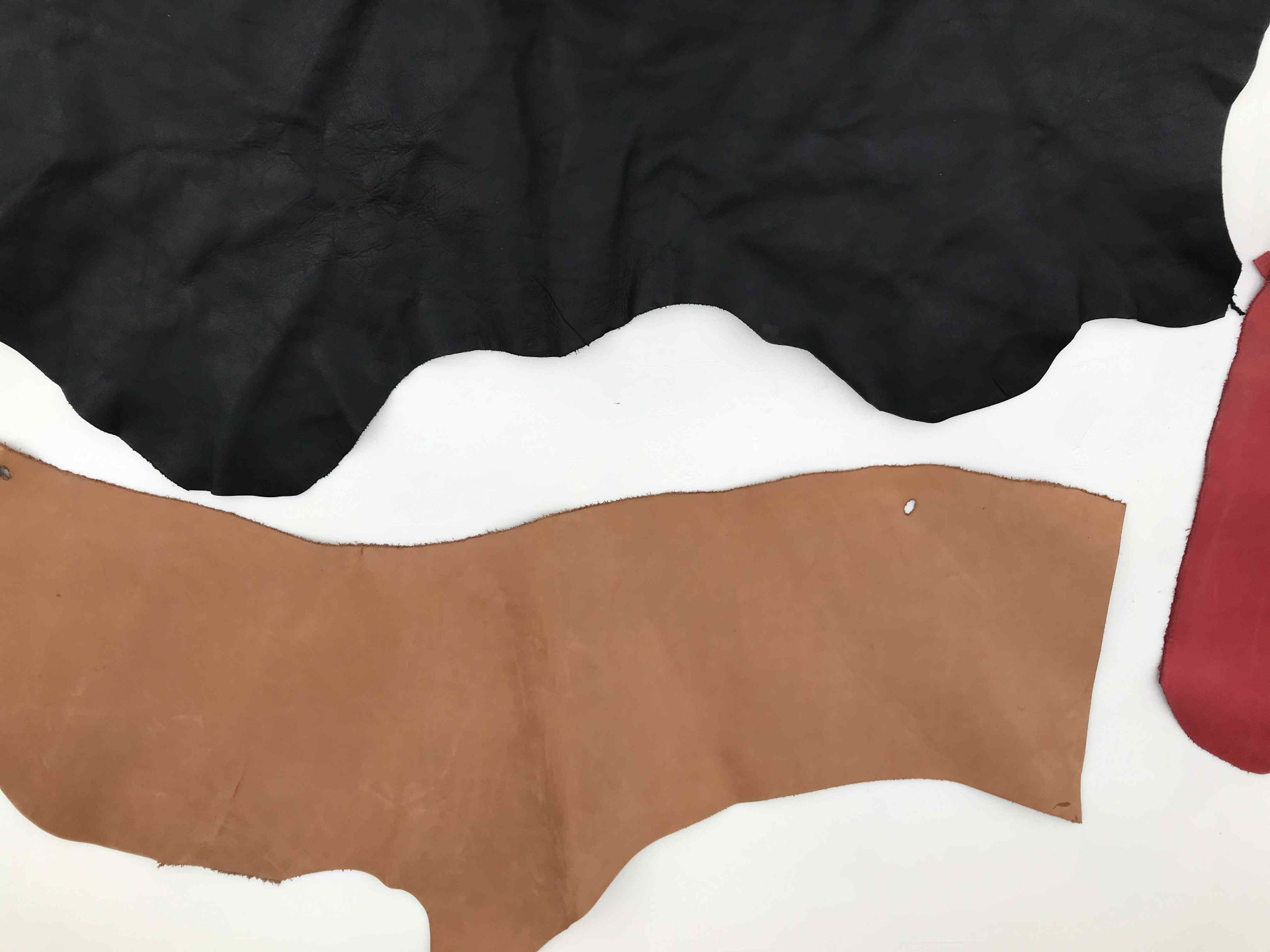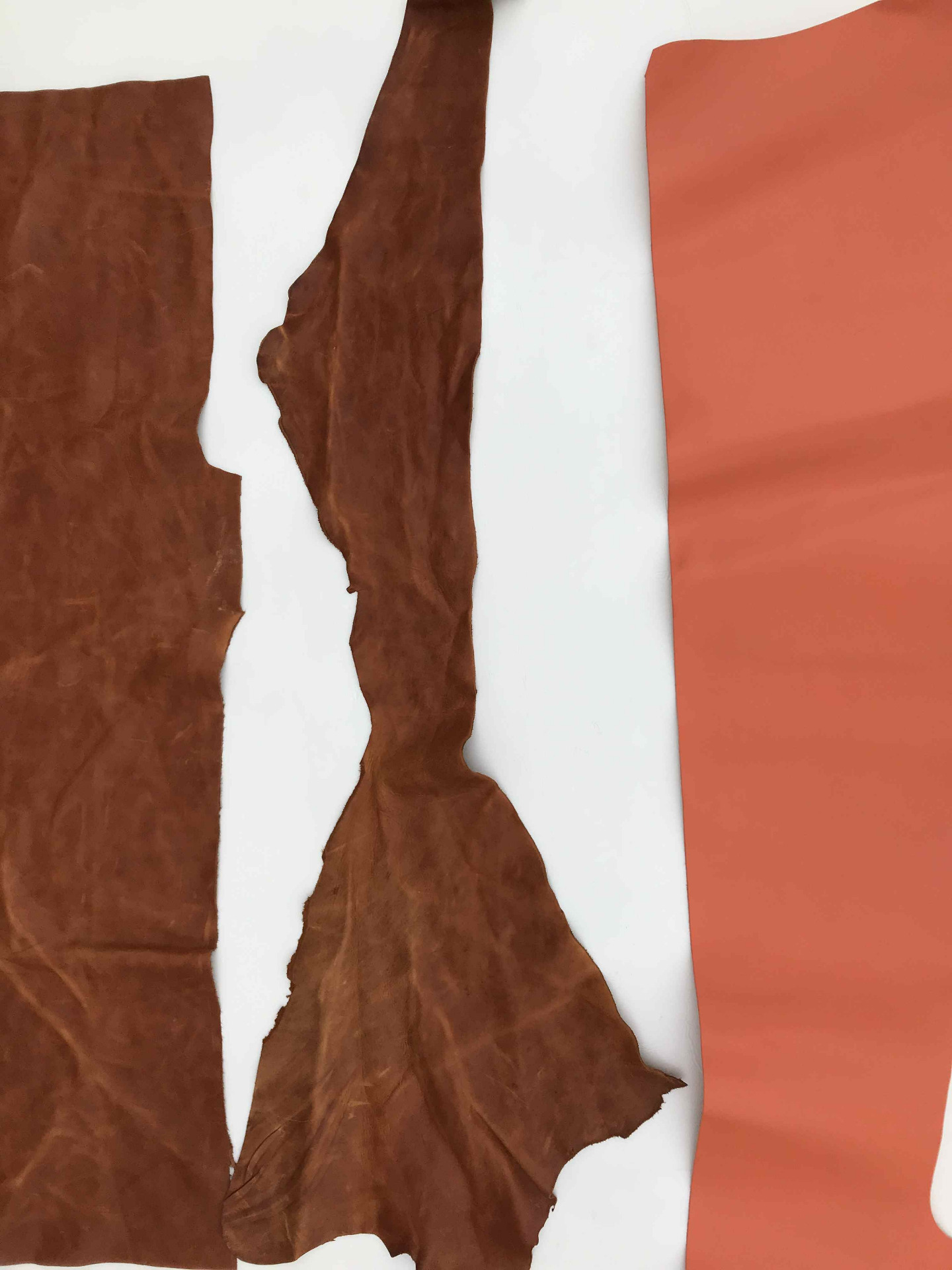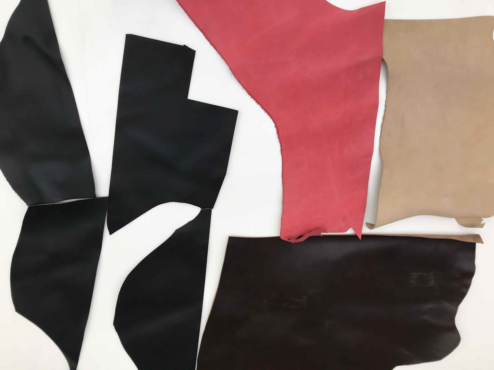 Assortimento pezzami in pelle di vacchetta per produzione di