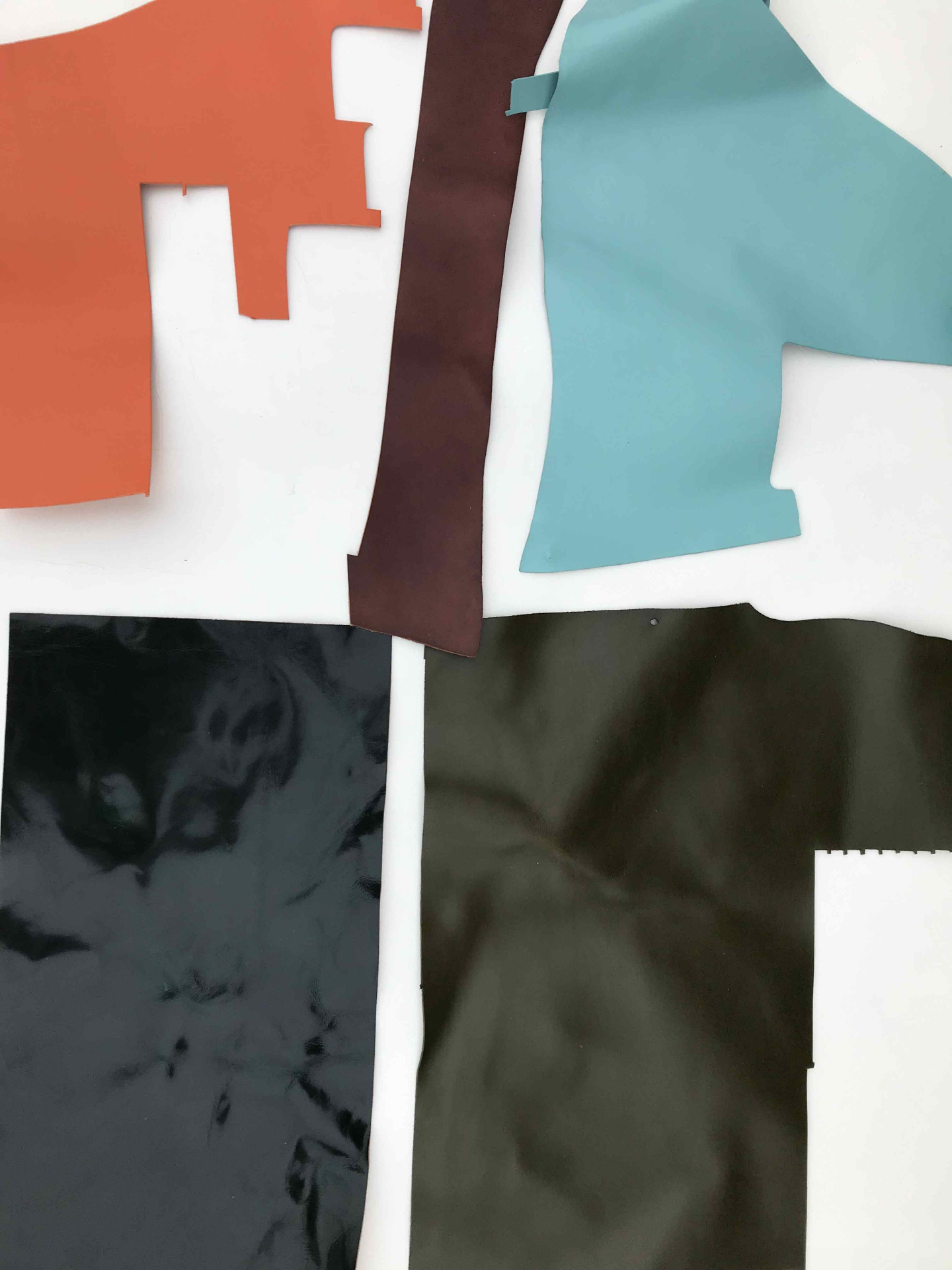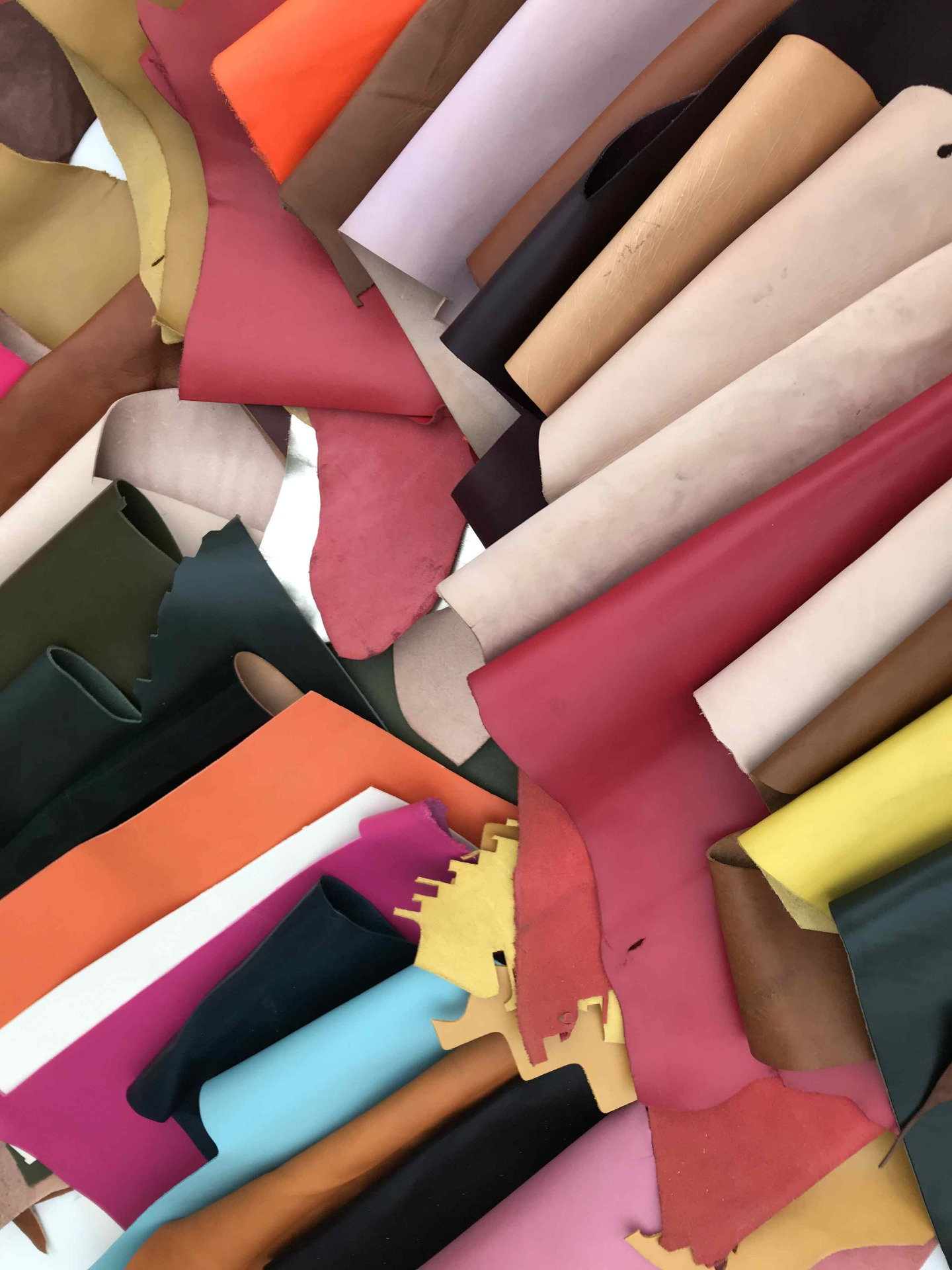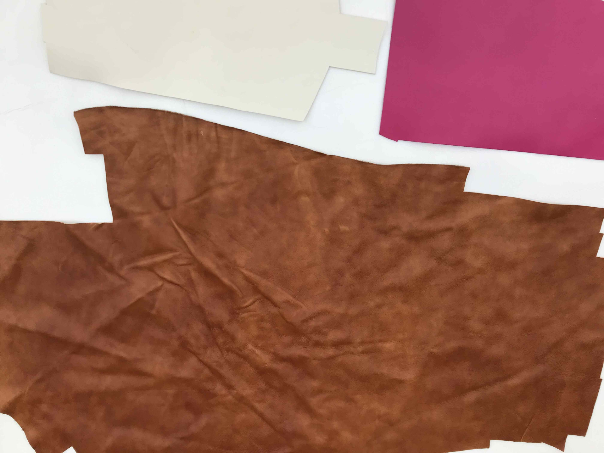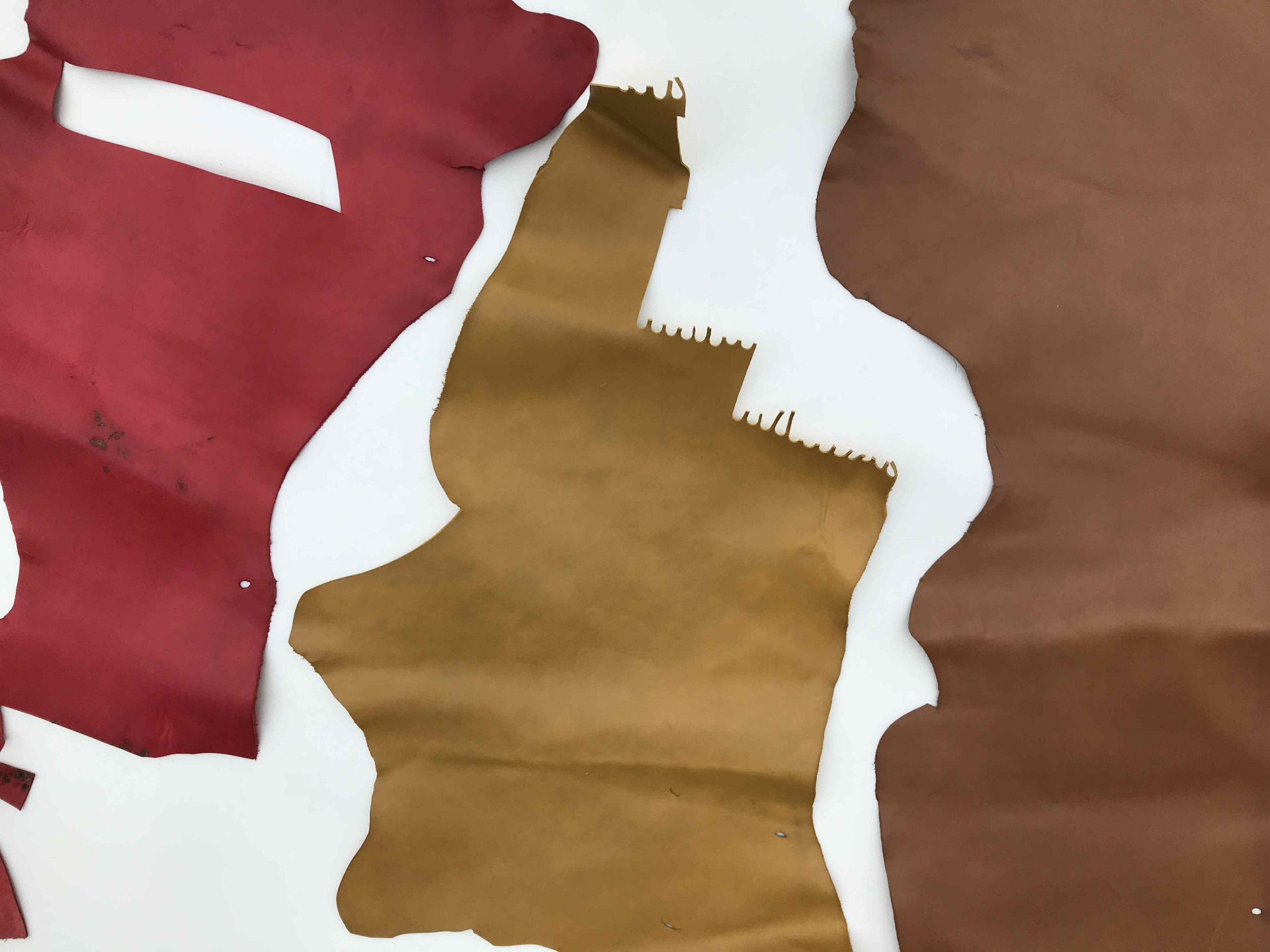 Assortimento pezzami in pelle di vacchetta per produzione di