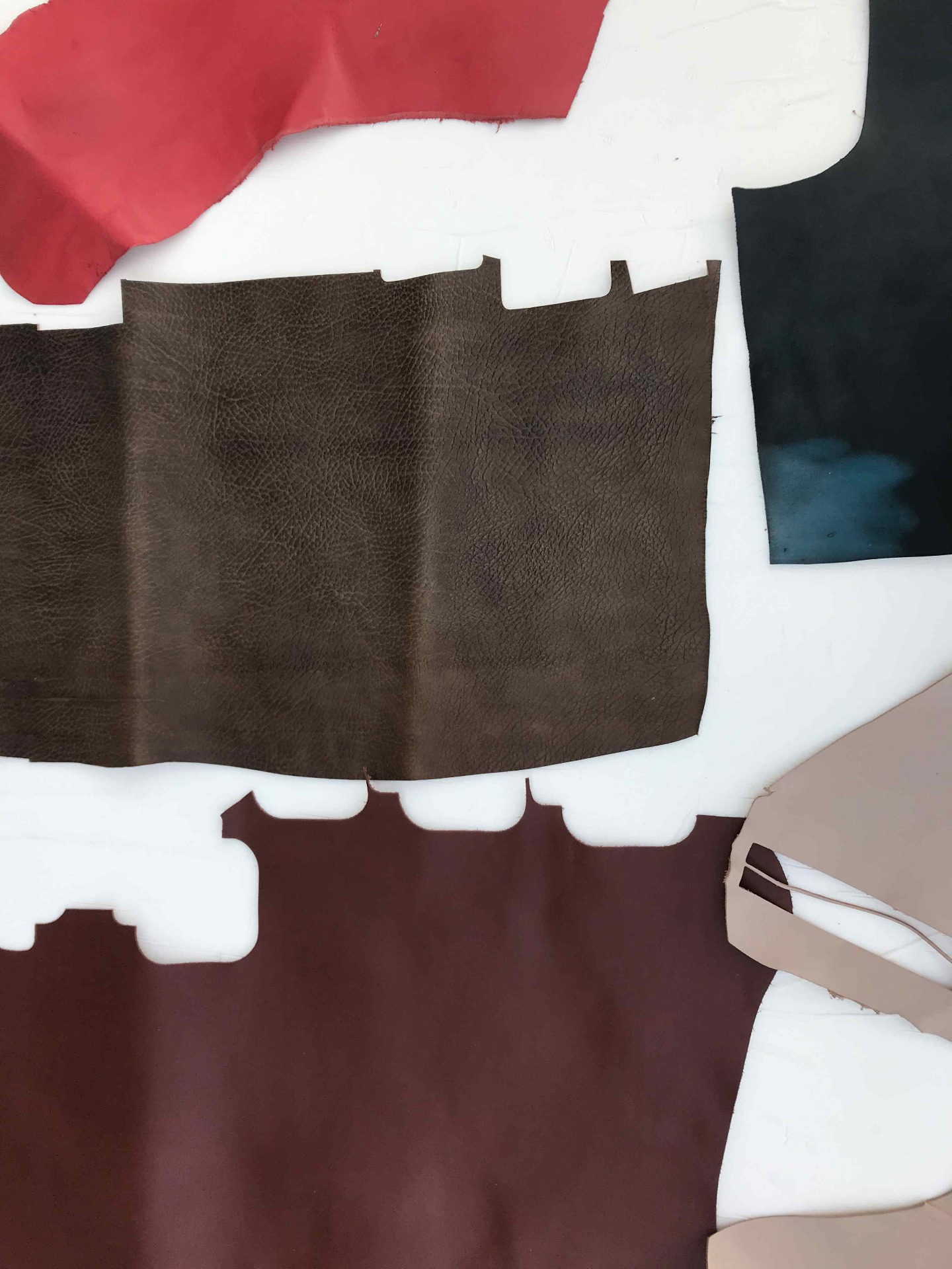 Assortimento pezzami in vero cuoio per artigianato e bricolage fai da te, pellame concia 100% a vacchetta ingrassata al sego pieno fiore con caratteristiche ideali per la produzione di svuotatasche, fondine, portafogli, portachiavi, borselli, bracciali, borse, cinturini per orologi, agende, collari, incisione, articoli per animali e molto altro.