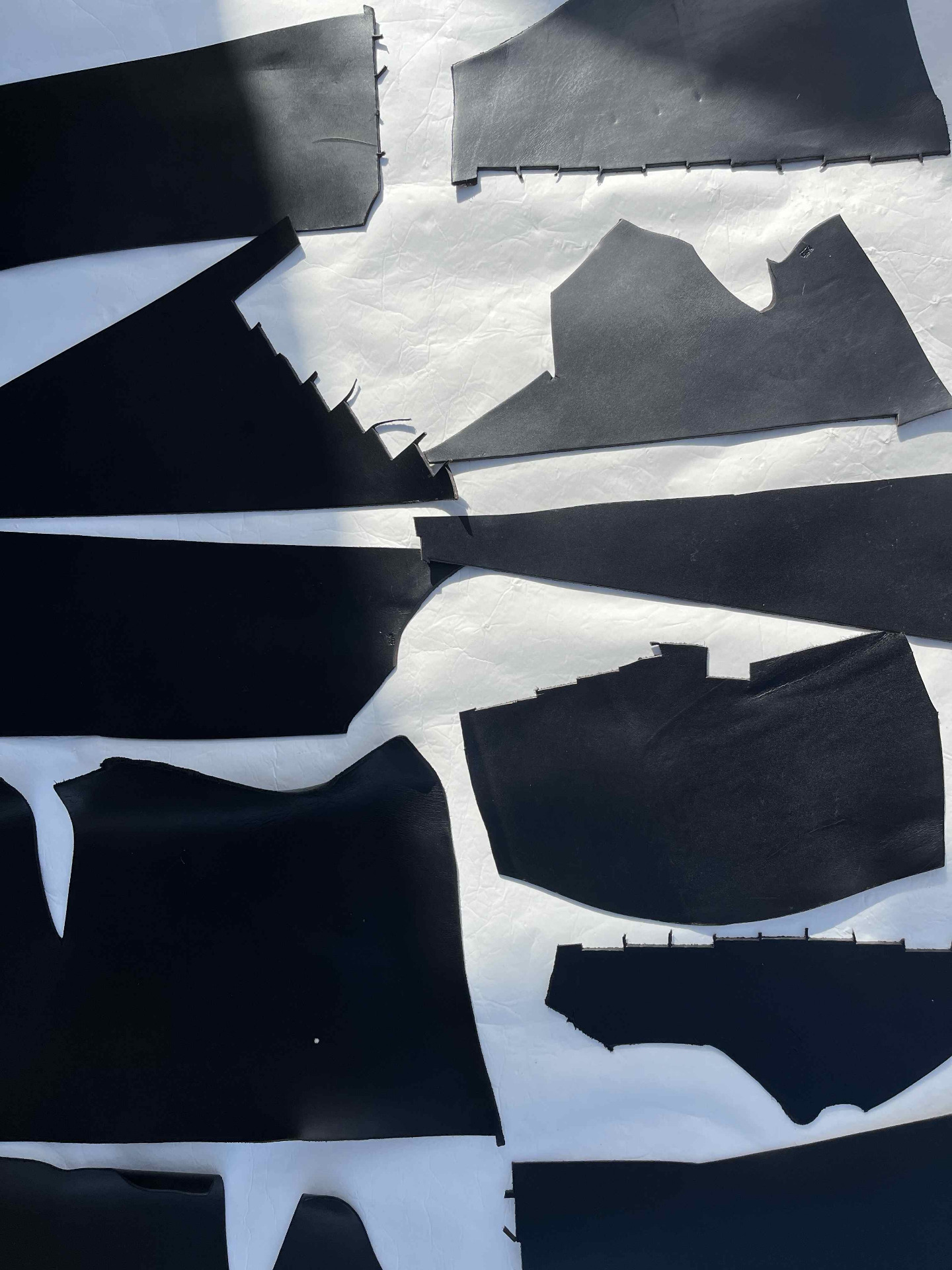 Pezzami di Cuoio di colore nero conciato 100% a vegetale ingrassato al sego, cuoio alto spessore, liscio pieno fiore, cerato da carne per la produzione di piccola pelletteria artigianale, fondine, incisione, articoli per animali e molto altro.