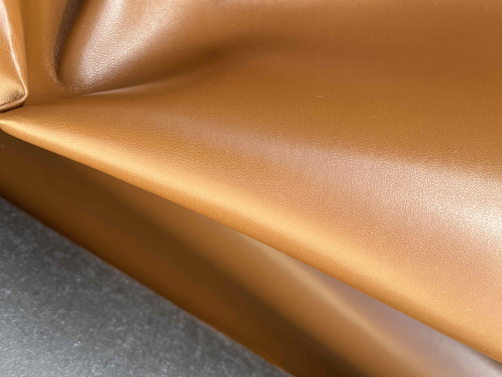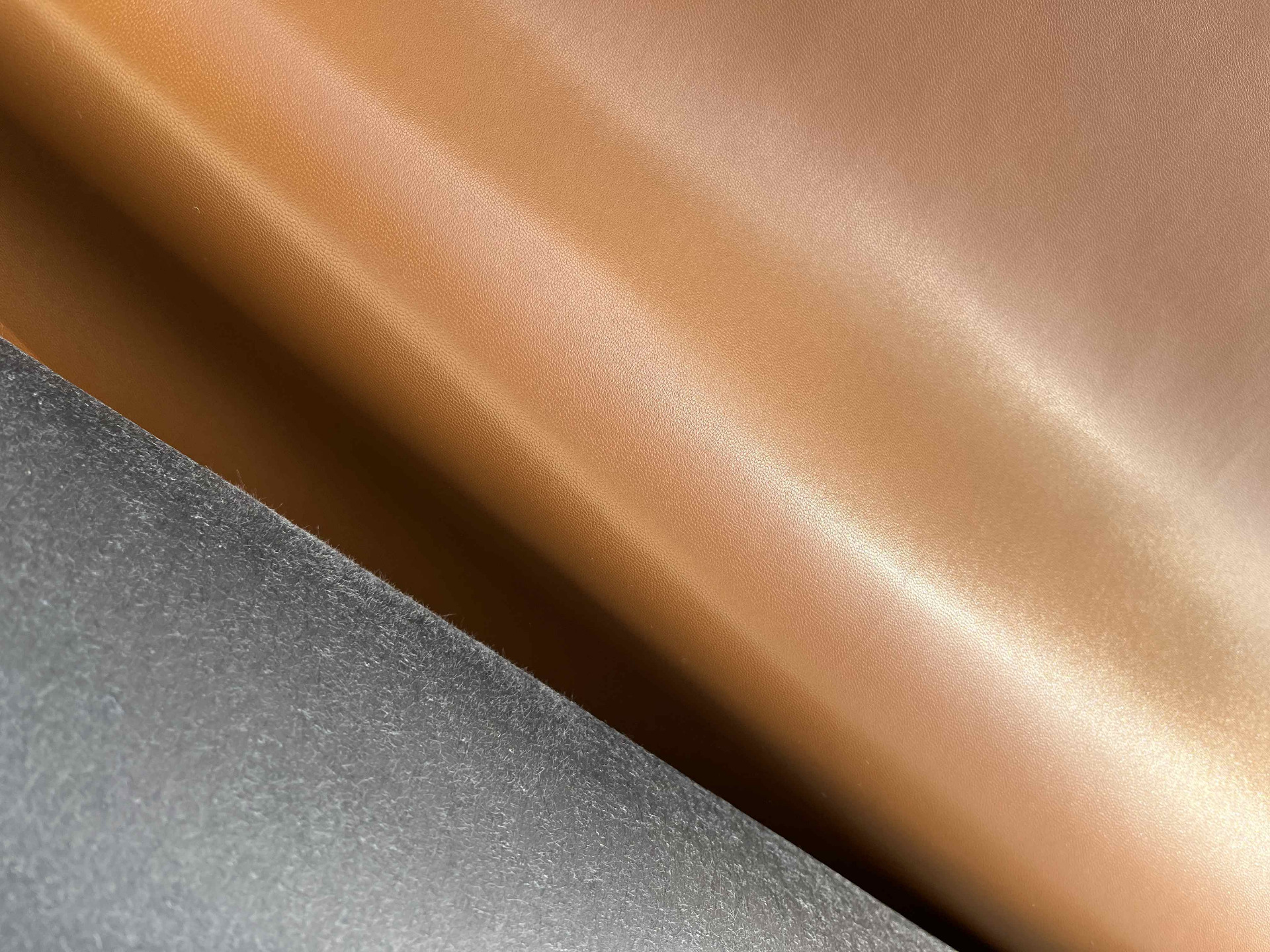 Finta pelle, ecopelle liscia di colore brandy di prima qualità, morbida ottima resistente all'abrasione, ideale per il settore della pelletteria, calzatura, tappezzeria e rivestimenti, selleria, automotive, nautica e molto altro.
