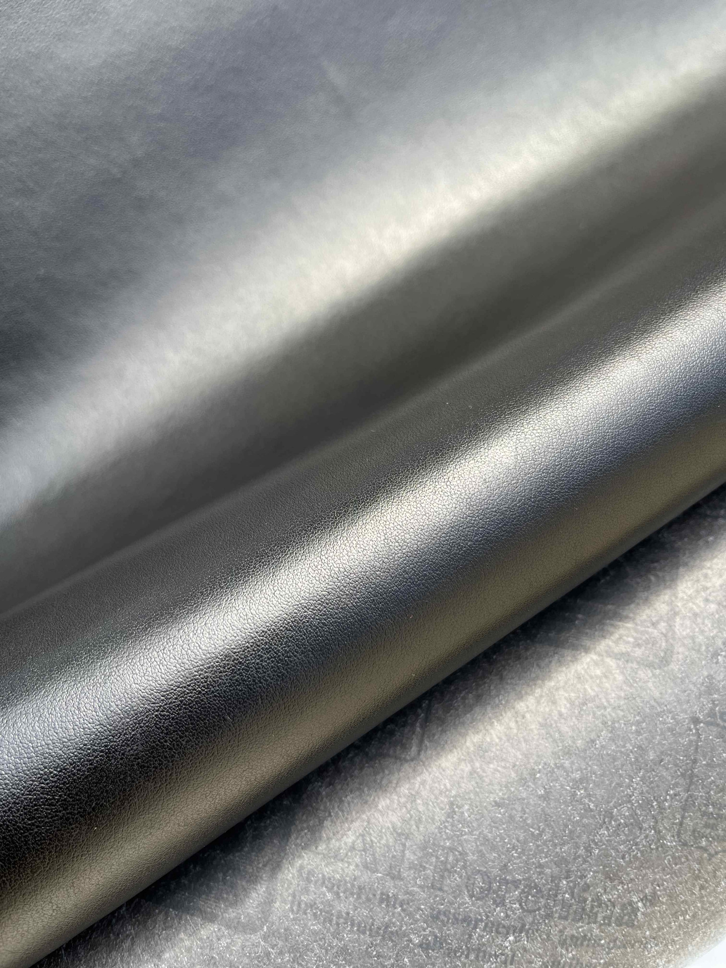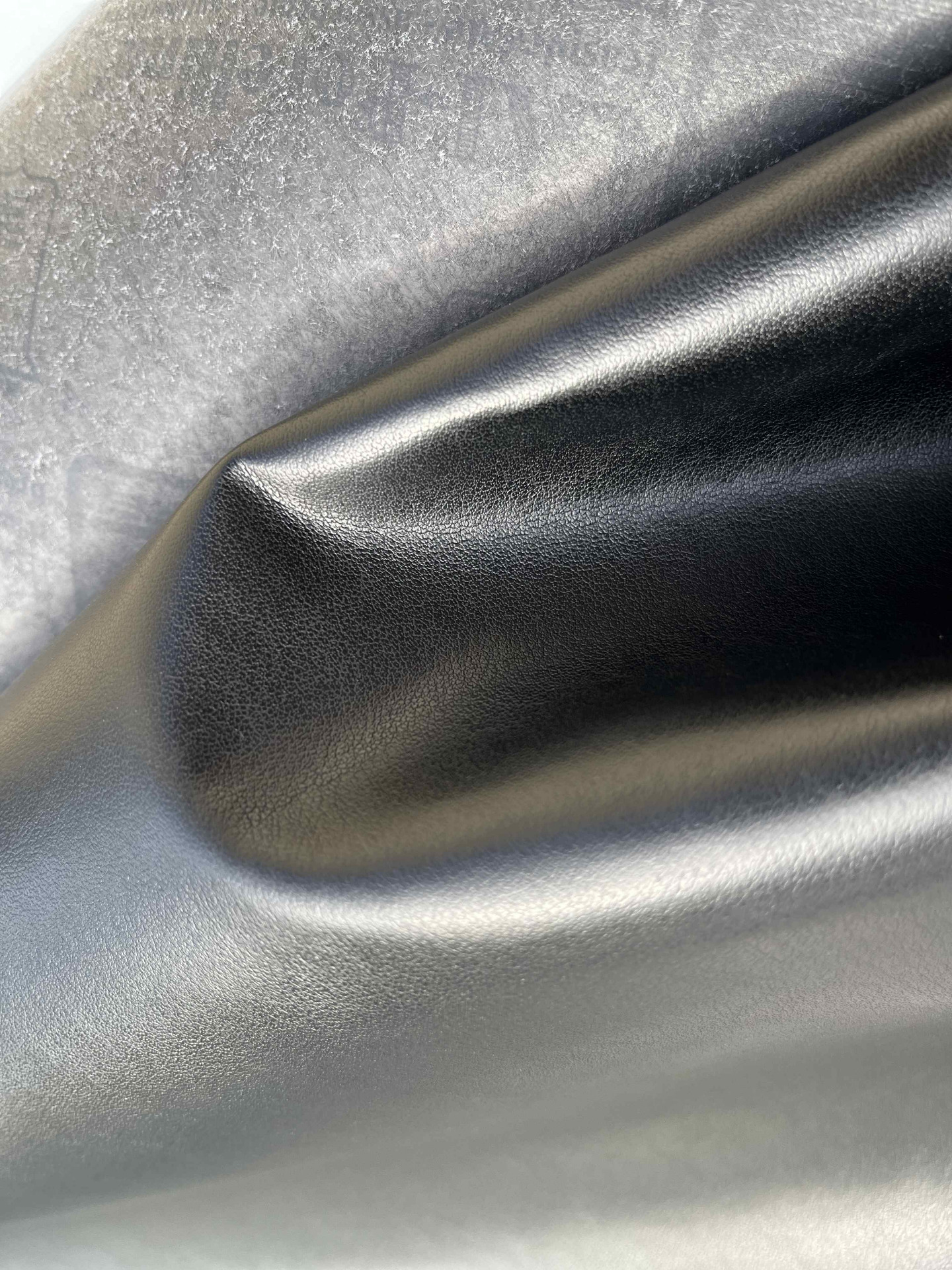 Finta pelle, ecopelle liscia di colore neroprodotta da Fiscatech nel pieno rispetto dell'ambiente, prima qualità, morbida ottima resistente all'abrasione, ideale per il settore della pelletteria, calzatura, tappezzeria e rivestimenti, selleria, automotive, nautica e molto altro.