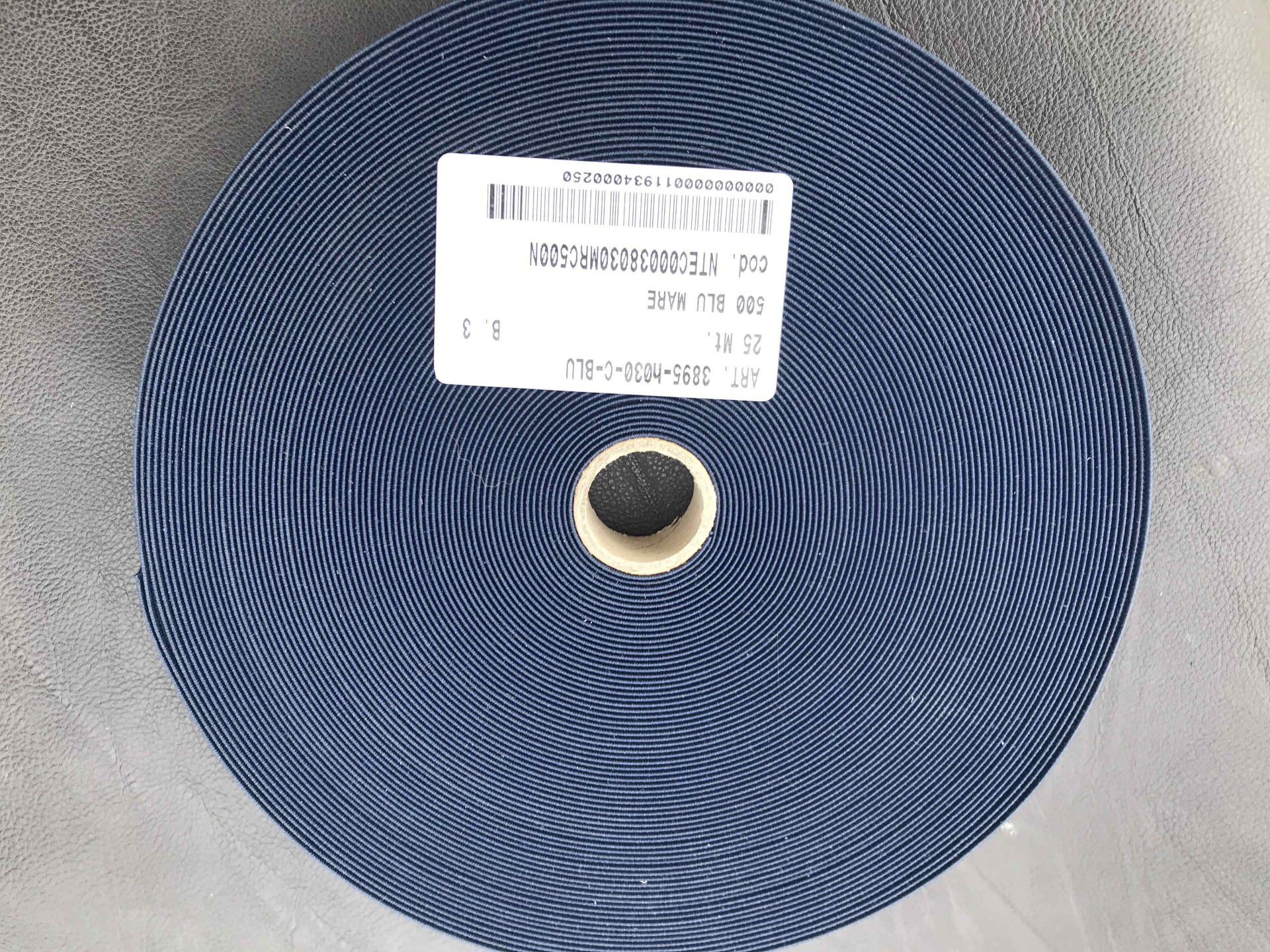 Nastro elastico industriale di alta qualità in bobine da 25 metri per cucito, colore blu ampiamente utilizzato nel settore abbigliamento, merceria, calzatura e pelletteria. ampiamente utilizzato nel settore abbigliamento, merceria, calzatura e pelletteria.