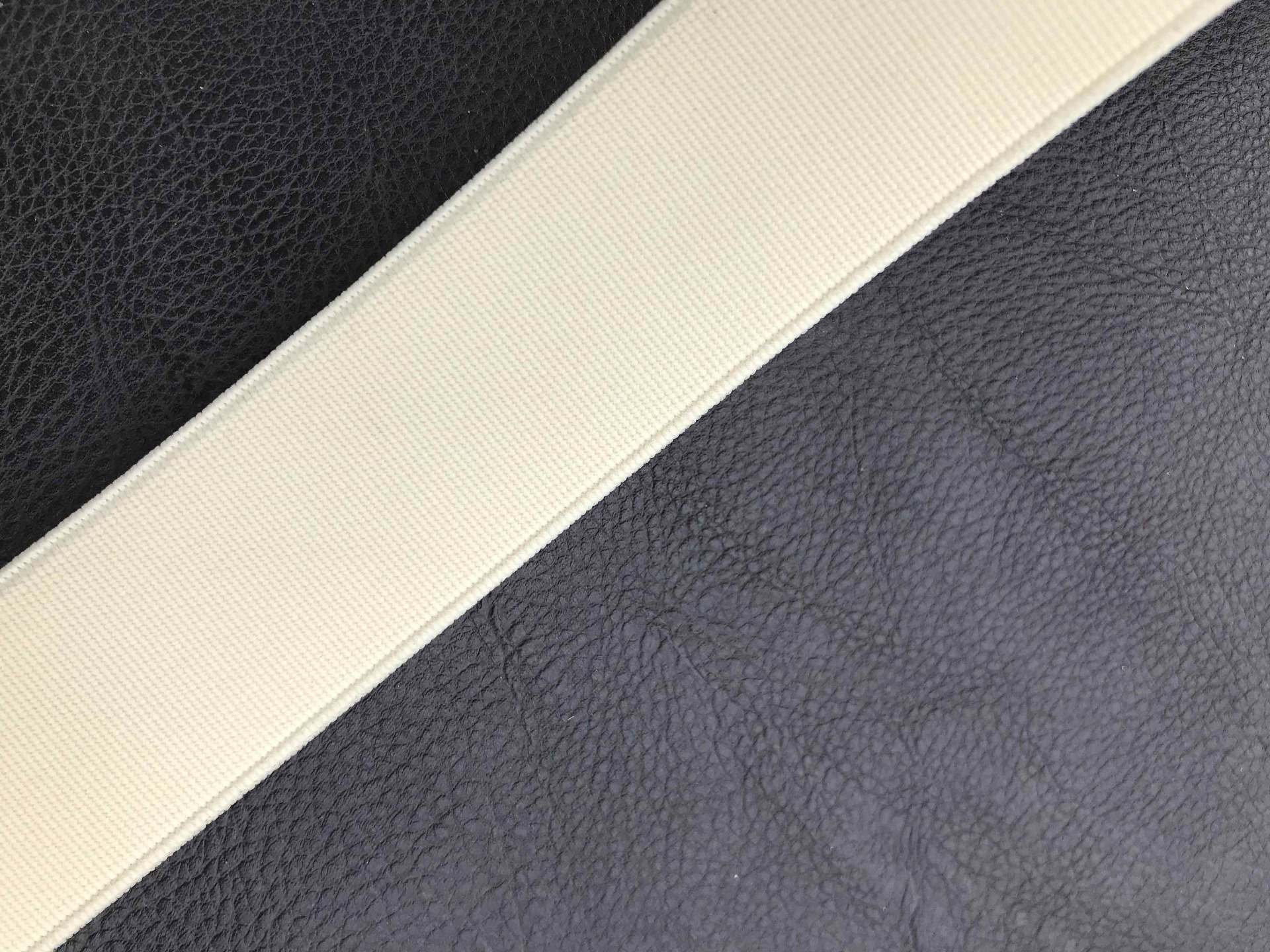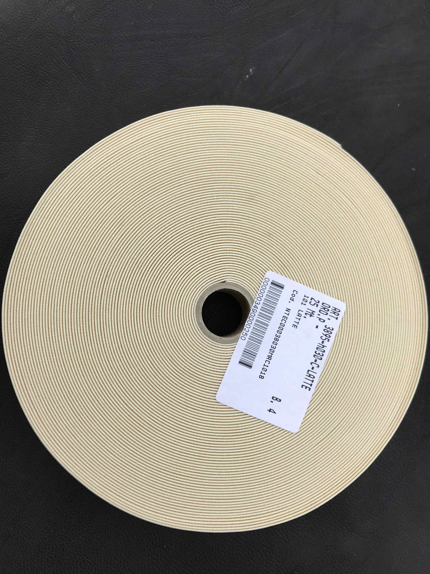 Nastro elastico industriale di alta qualità in bobine da 25 metri per cucito, colore panna ampiamente utilizzato nel settore abbigliamento, merceria, calzatura e pelletteria. ampiamente utilizzato nel settore abbigliamento, merceria, calzatura e pelletteria.