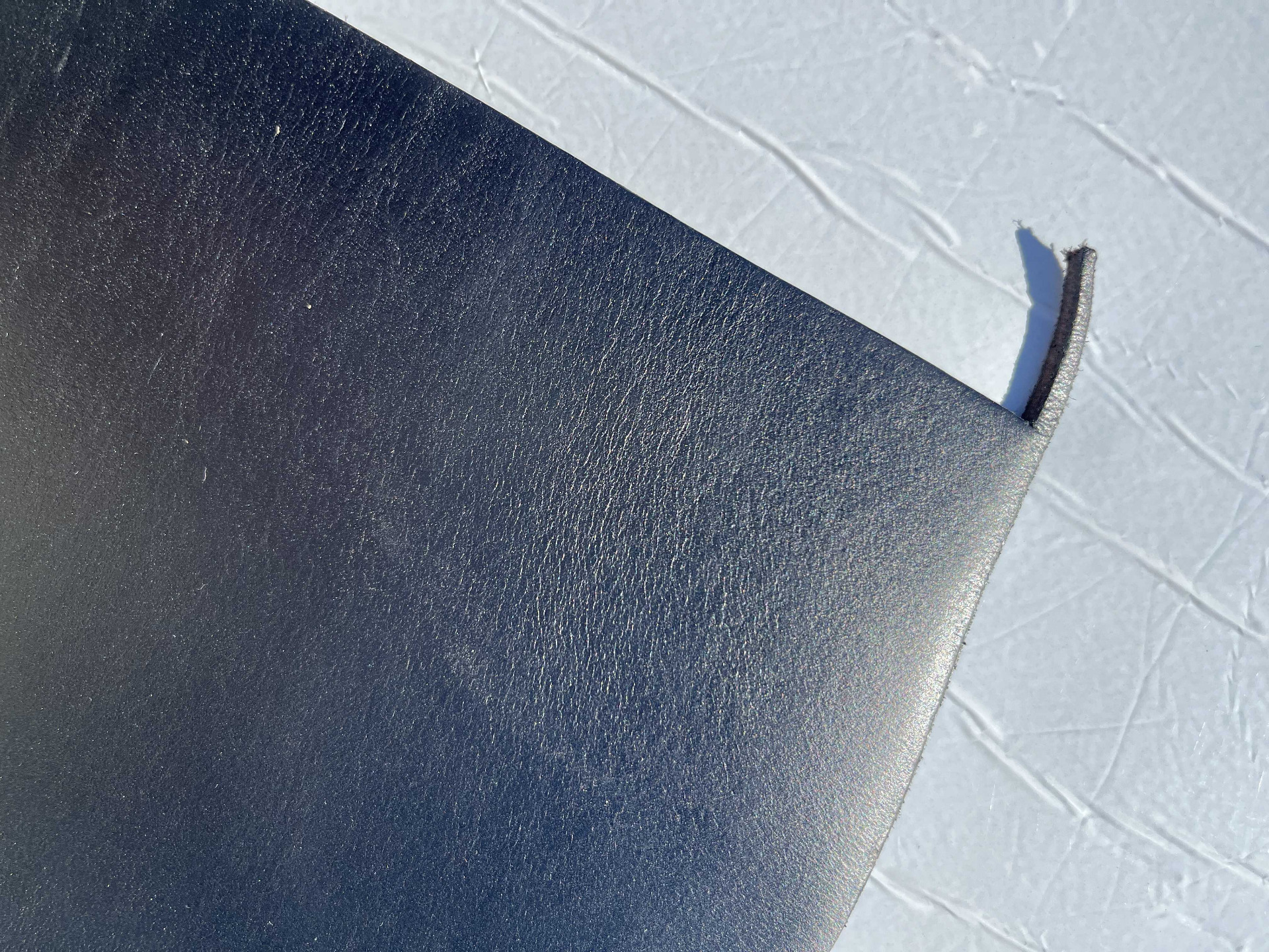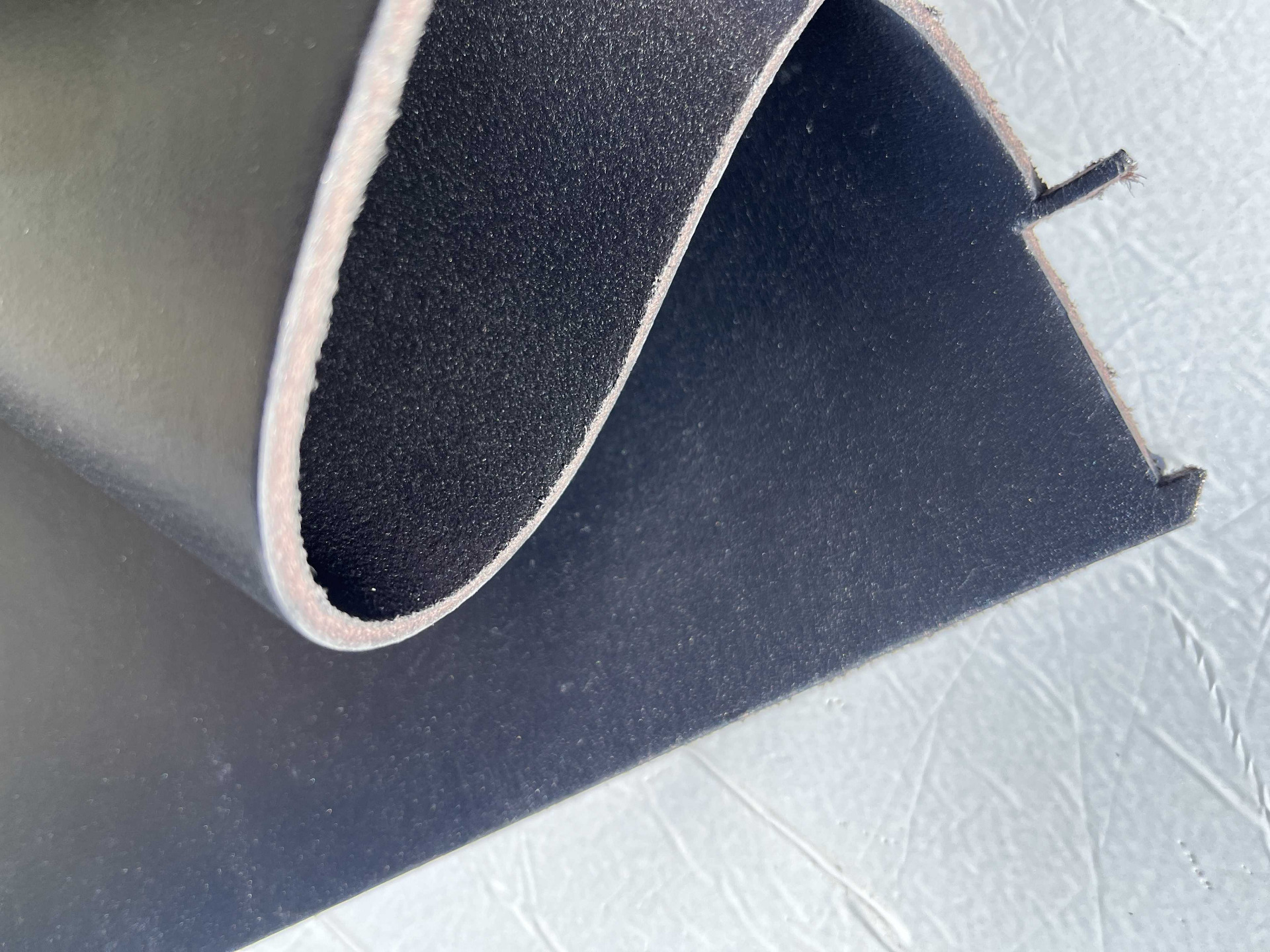 Pellame conciato 100% a vegetale ingrassato al sego di colore Nero, liscio pieno fiore, qualità top, alto spessore uniforme per tutta la superficie, cerato da carne per la produzione di piccola pelletteria artigianale, articoli per animali e molto altro.