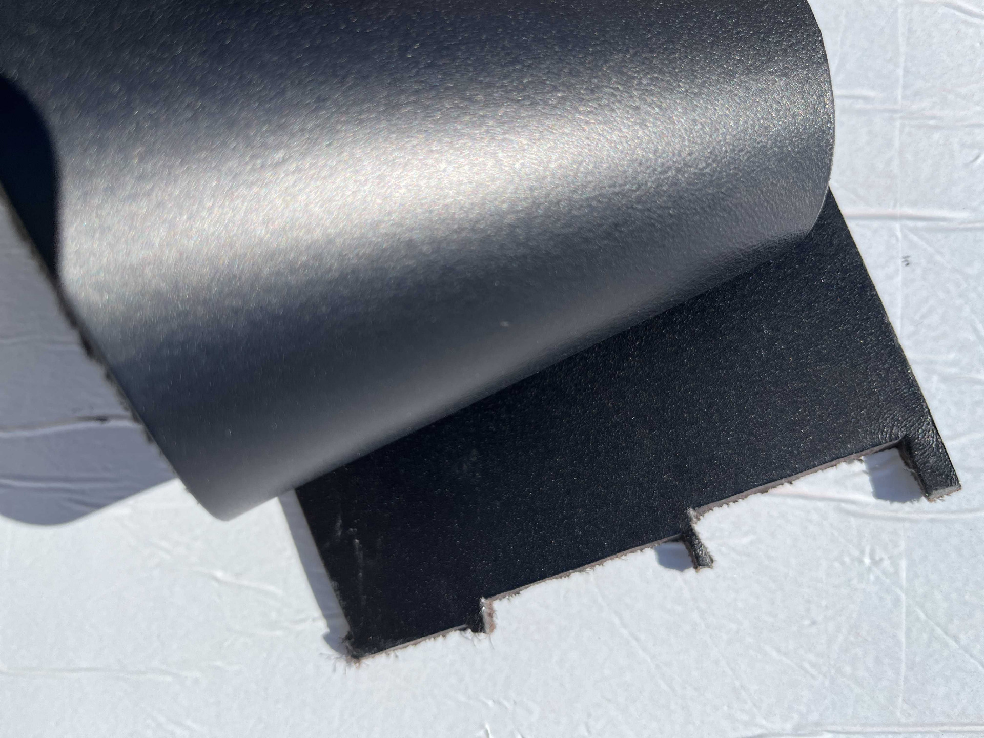 Pellame conciato 100% a vegetale ingrassato al sego di colore Nero, liscio pieno fiore, qualità top, alto spessore uniforme per tutta la superficie, cerato da carne per la produzione di piccola pelletteria artigianale, articoli per animali e molto altro.