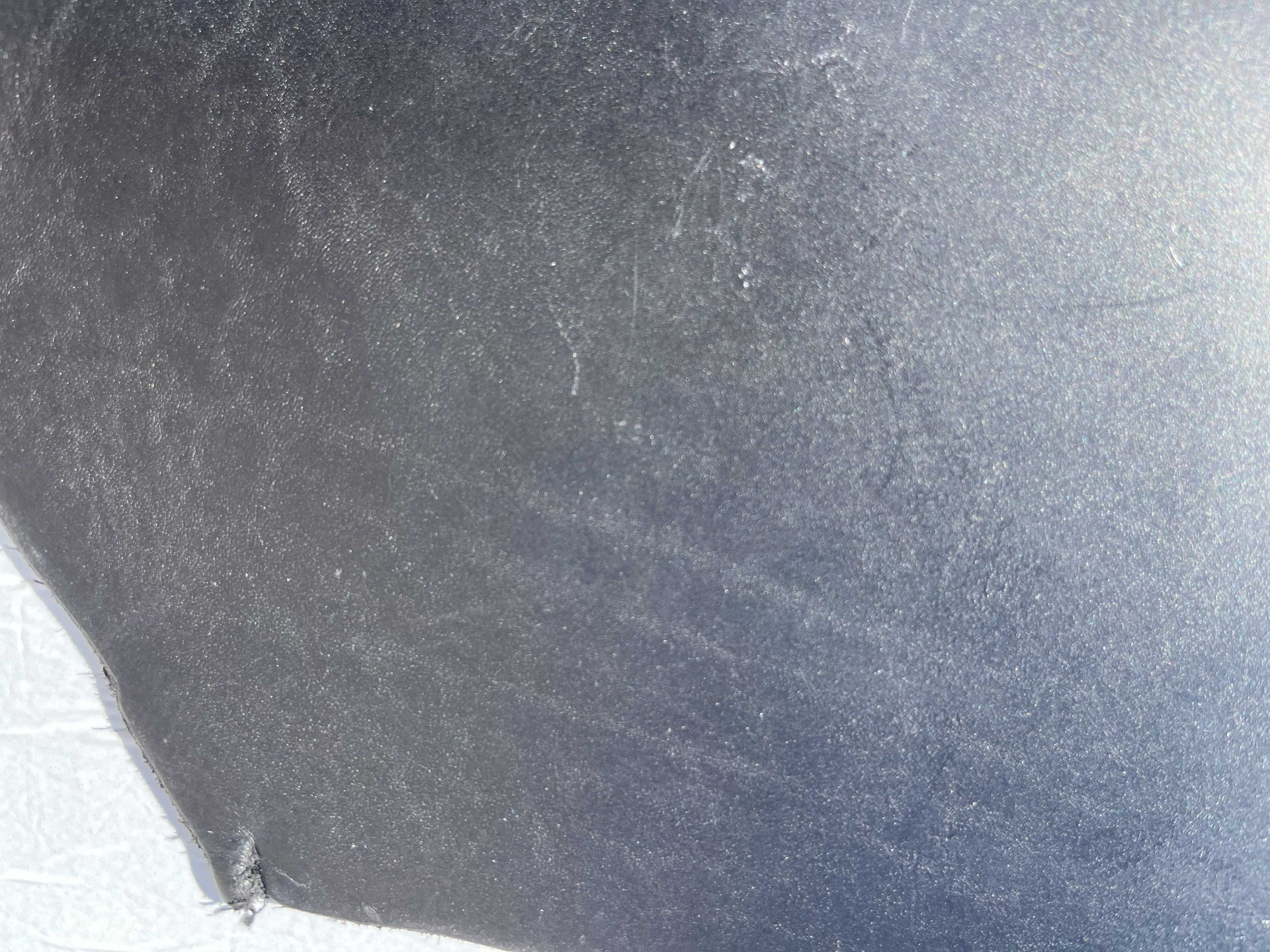 Pellame conciato 100% a vegetale ingrassato al sego di colore Nero, liscio pieno fiore, qualità top, alto spessore uniforme per tutta la superficie, cerato da carne per la produzione di piccola pelletteria artigianale, articoli per animali e molto altro.
