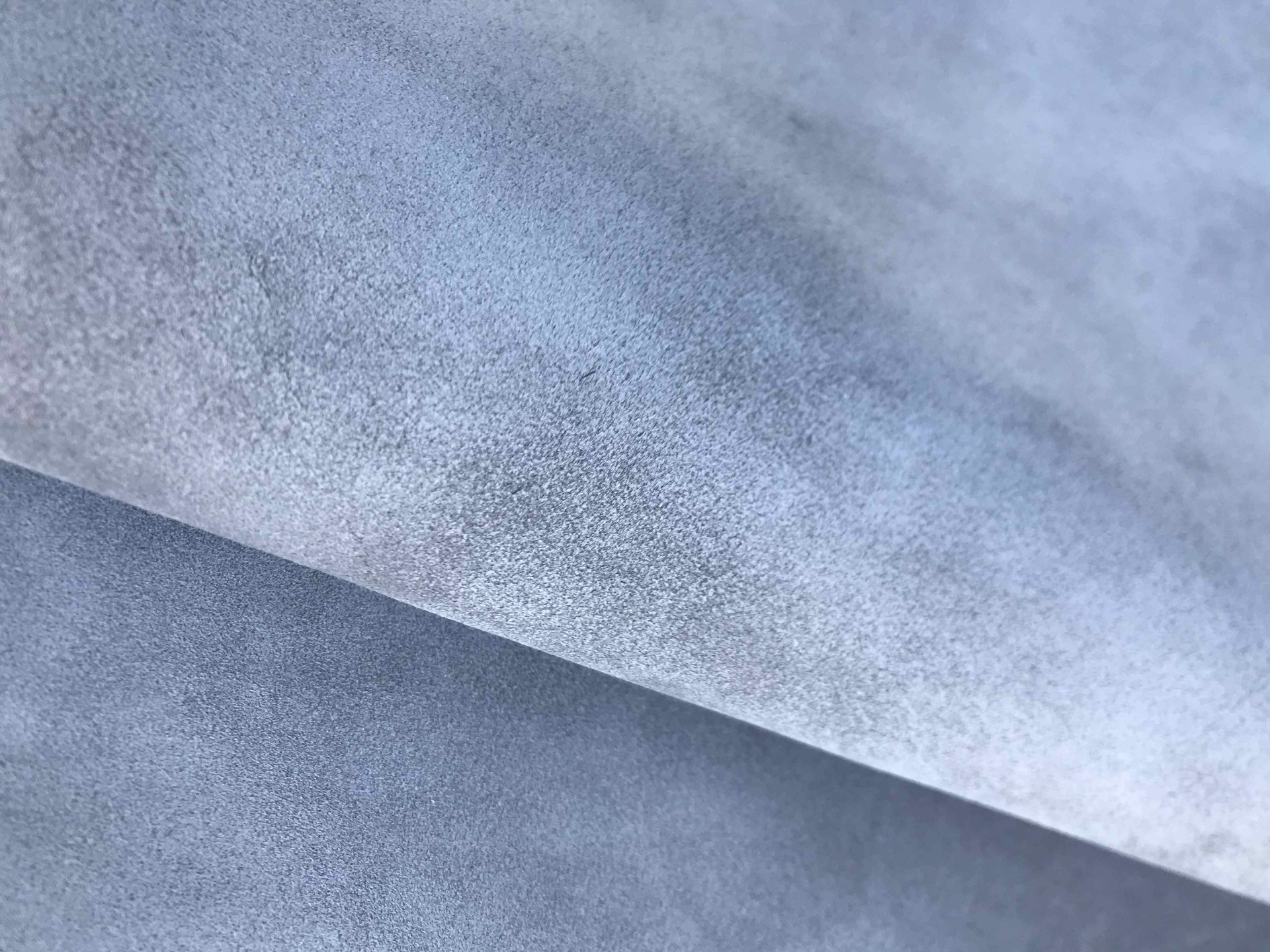 Pellame scamosciato accoppiato con ecopelle, mano semirigida, alto spessore, ampiamente utilizzato nel settore della pelletteria e calzatura nella tranciatura di tomaie per sandali, infradito e ciabatte, borse, cinture, collari e molto altro, consente di ottenere una tomaia con il retro già completo di fodera pronta per il montaggio.