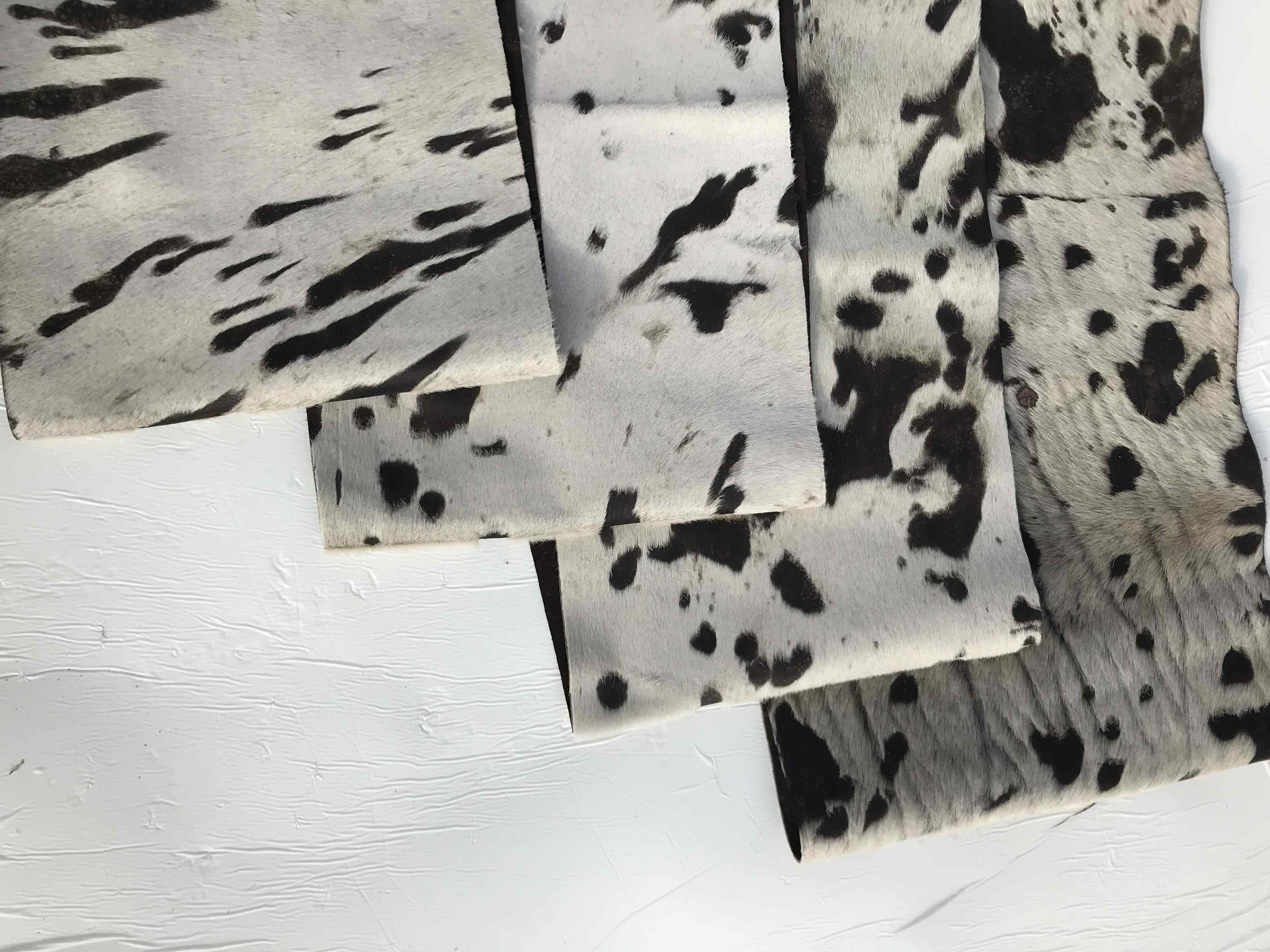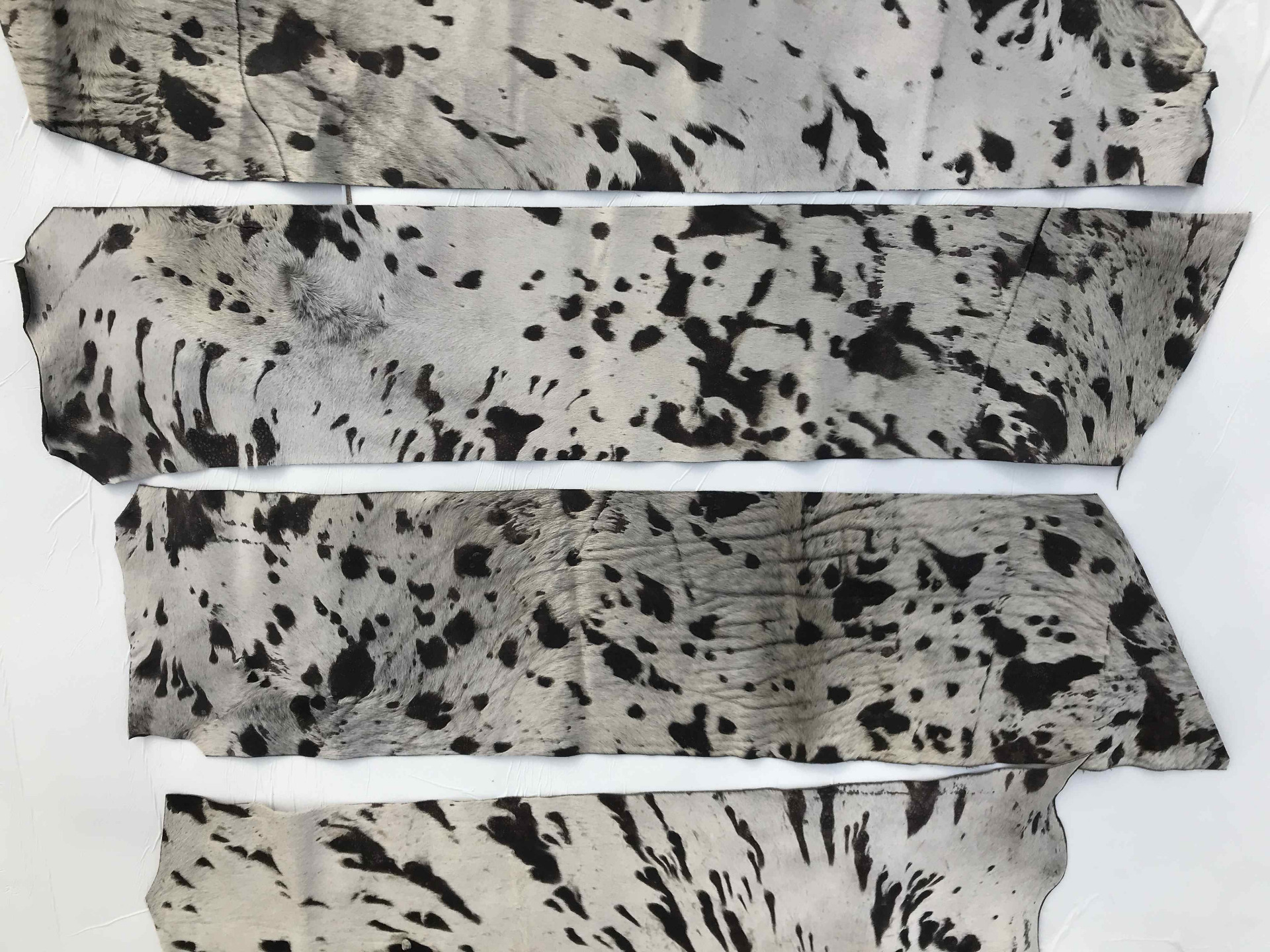 Pelli di cavallino naturale nel classico colore originale della mucca.. veramente fantastiche, quattro strisce ideali per cinture, borse fatte a mano, zaini, tracolle, portafogli, portachiavi, braccialetti, tappezzeria, articoli per animali e molto altro.