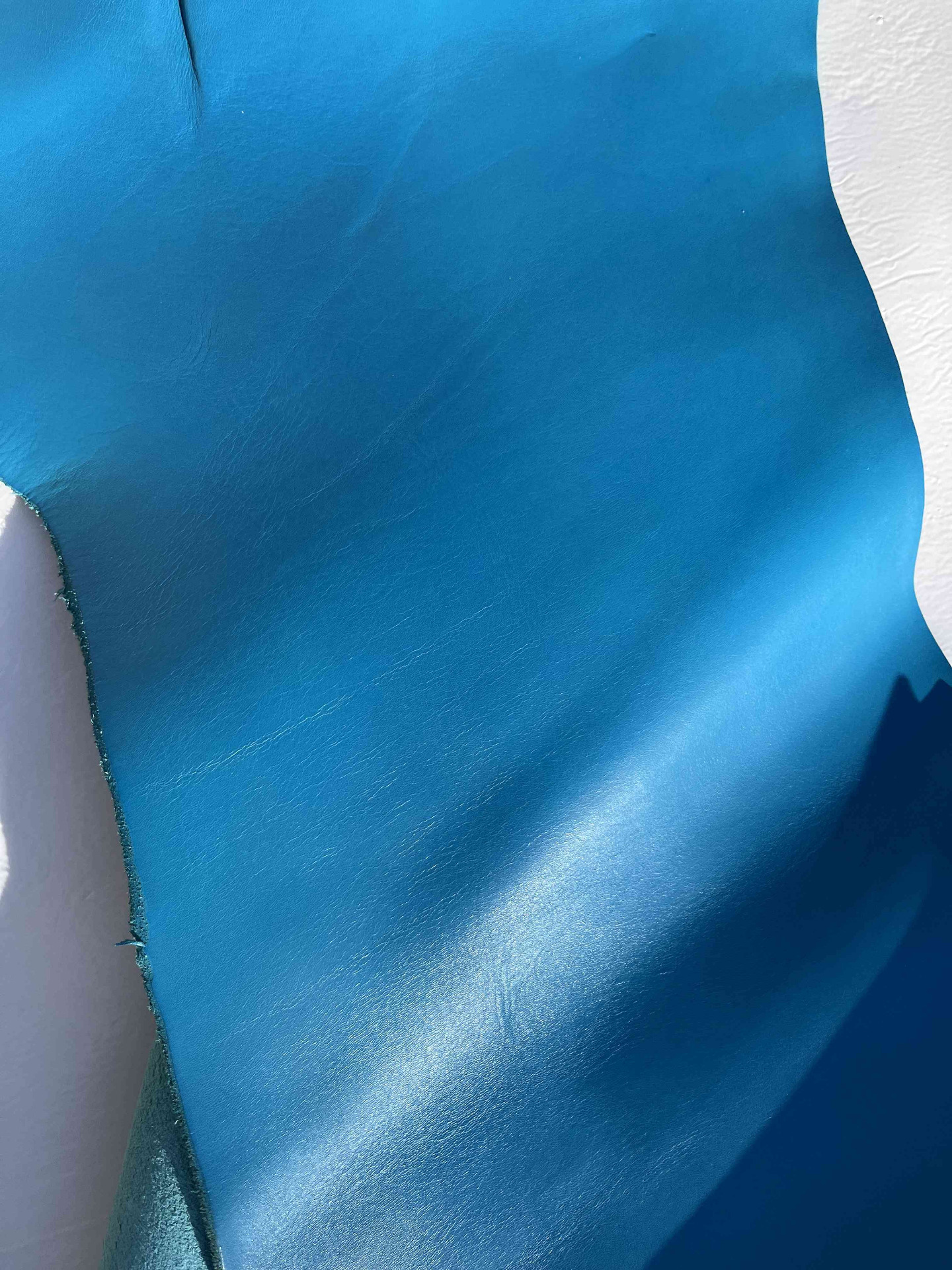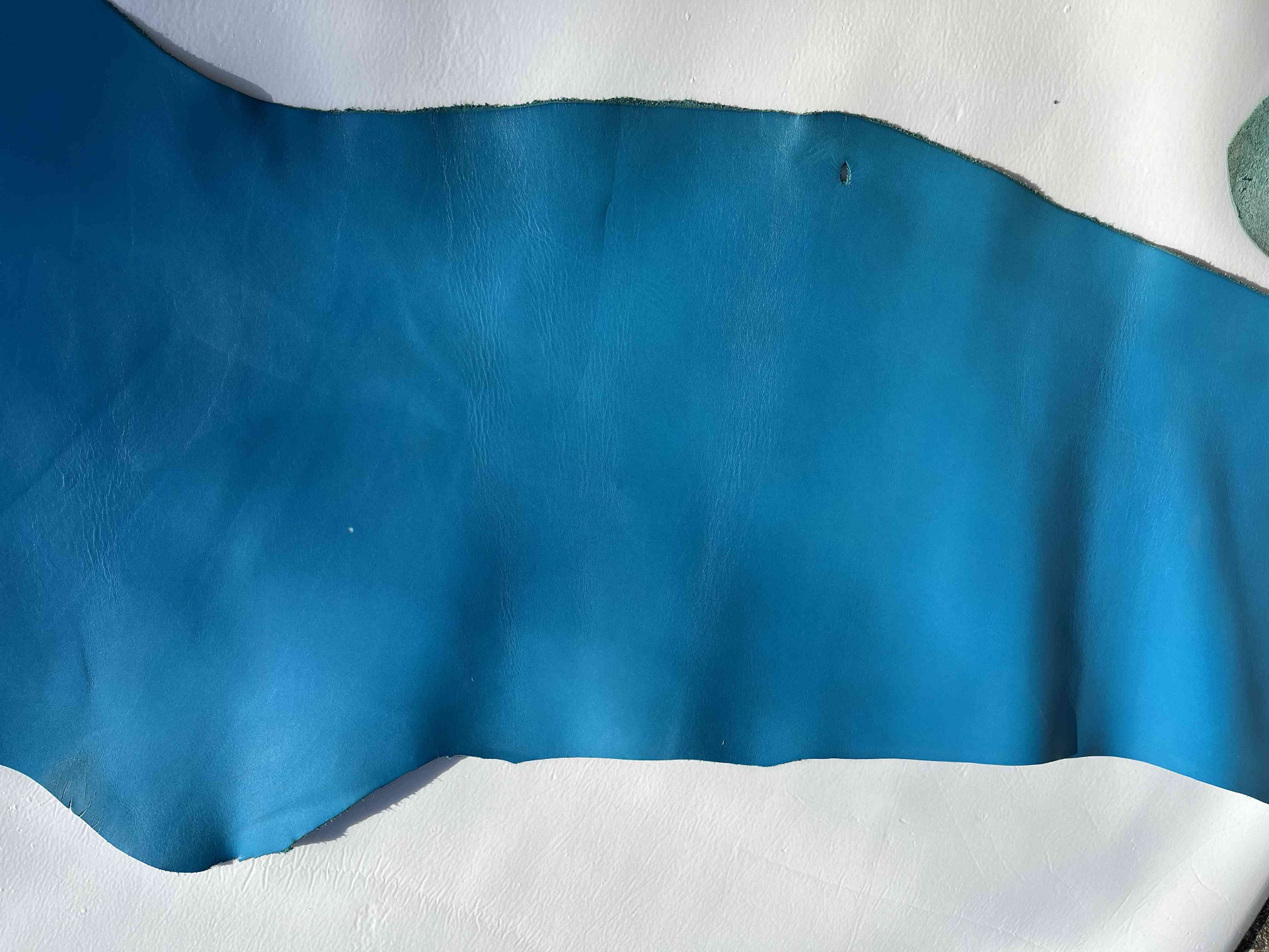 Pellame concia 100% a vegetale liscio colore celeste ingrasso sintetico, pieno fiore, segni e imperfezioni non sono da considerarsi difetti, ma caratteristiche naturali.