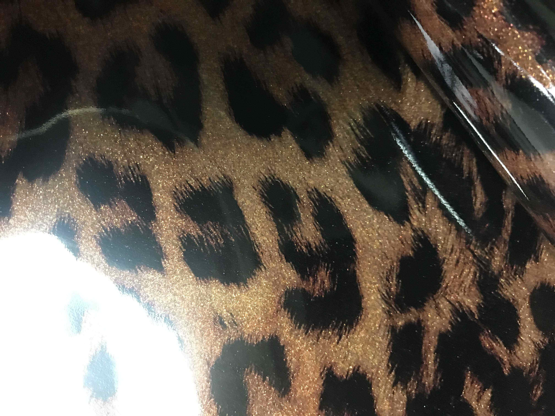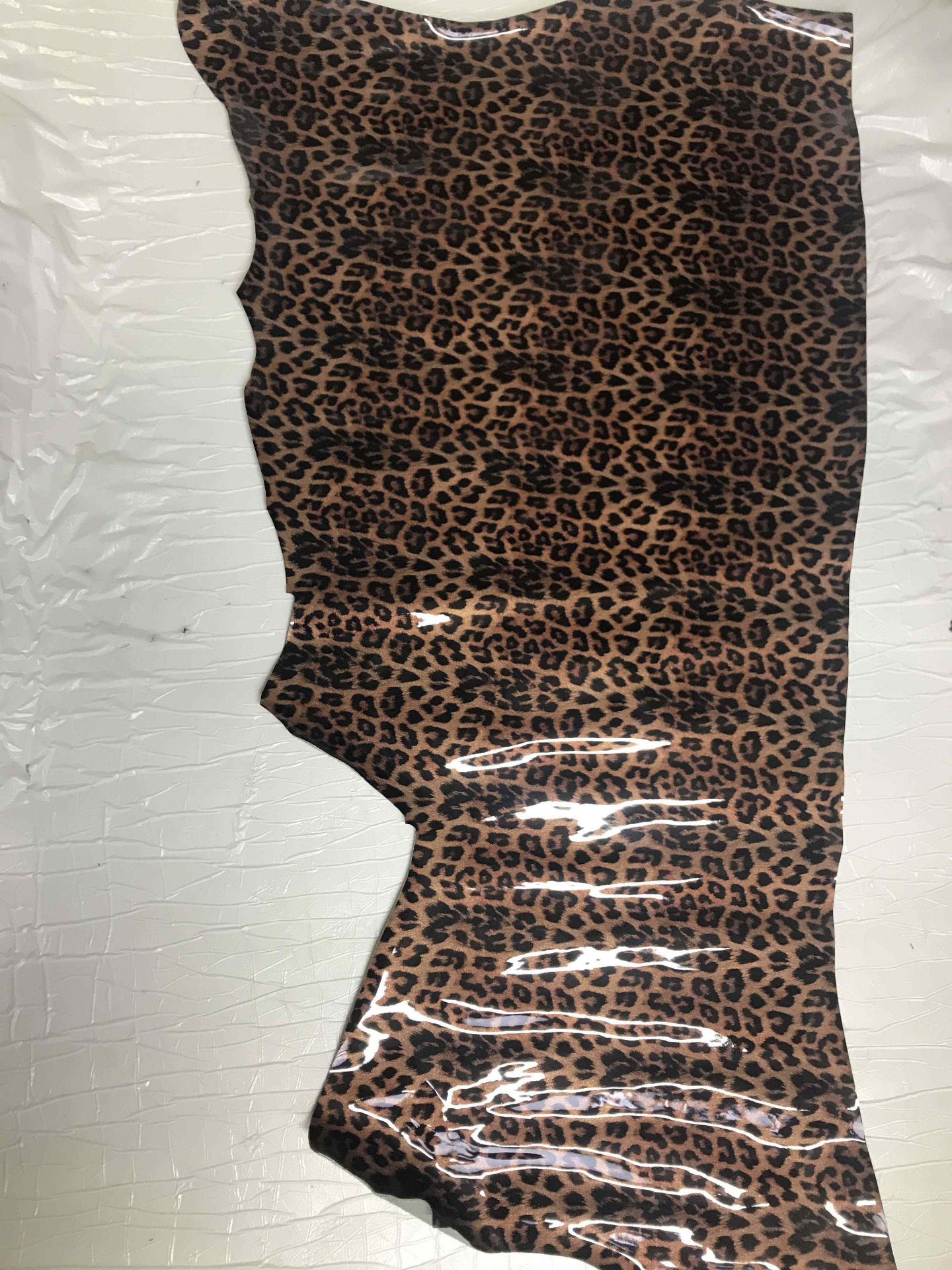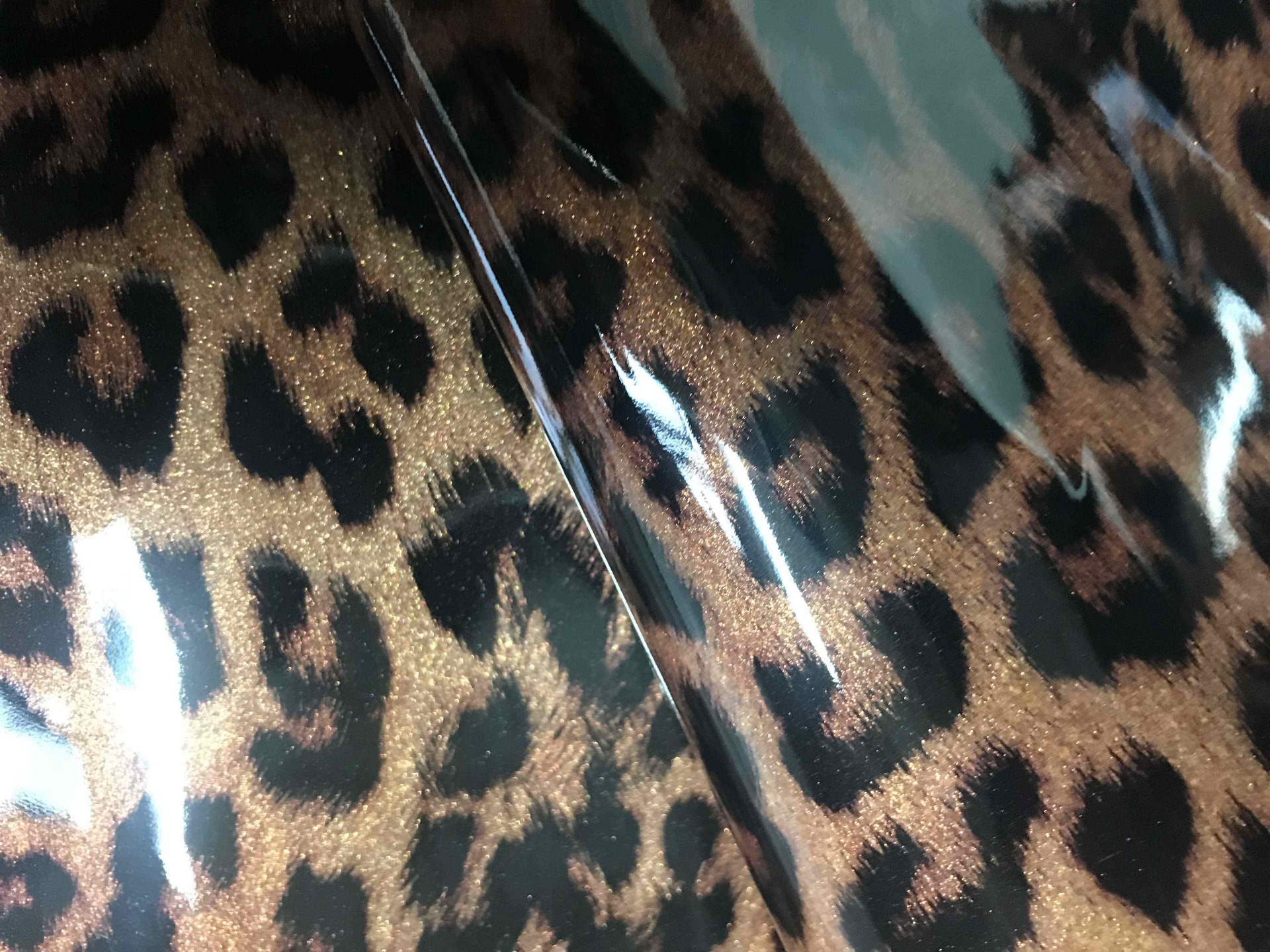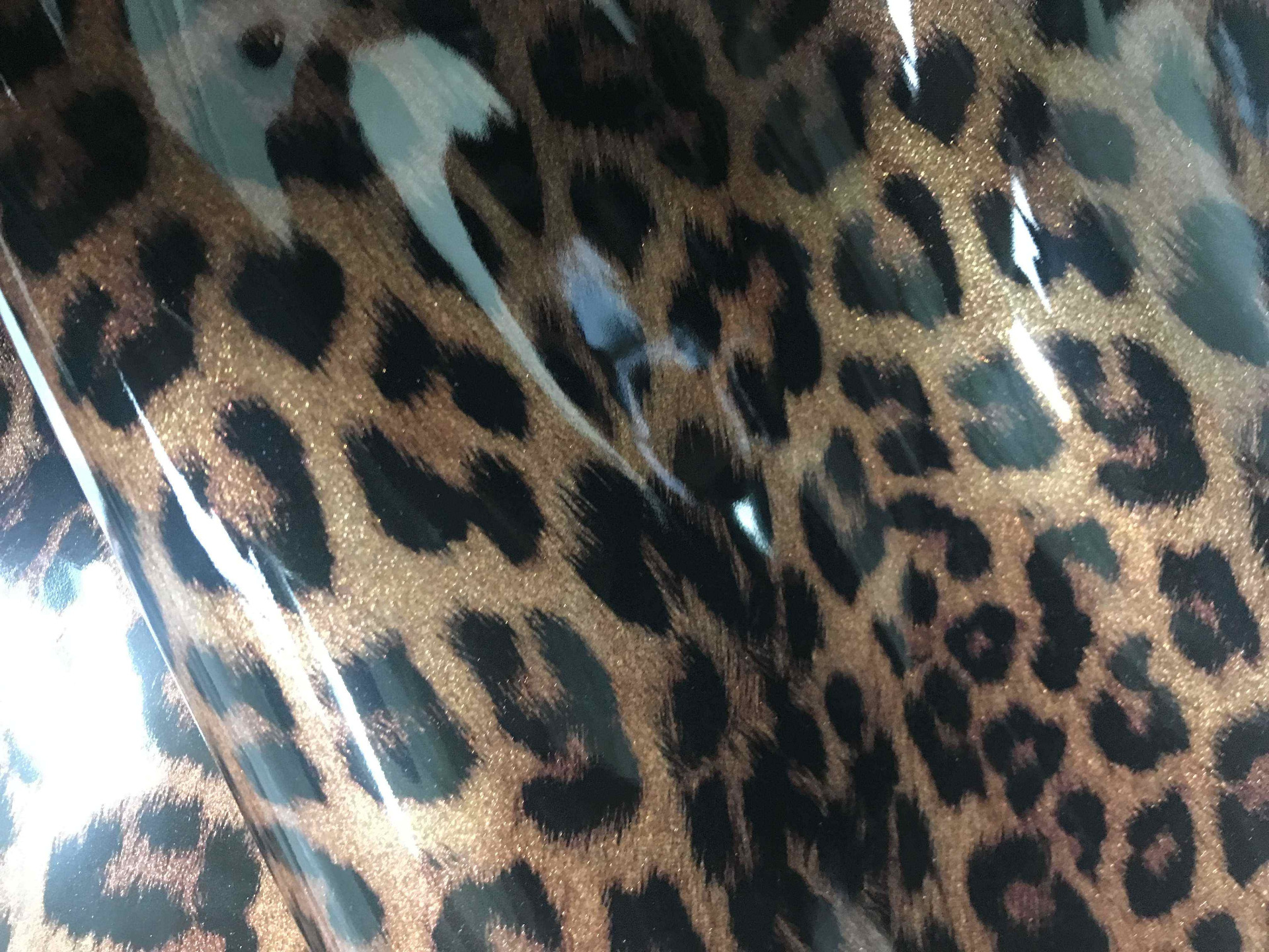 Pelle di vitello finitura a vernice effetto cavallino cavallino leopardato da pelletteria e calzatura, morbida al tatto per borse, borselli, cinturini, decolté, ballerine e molto altro.