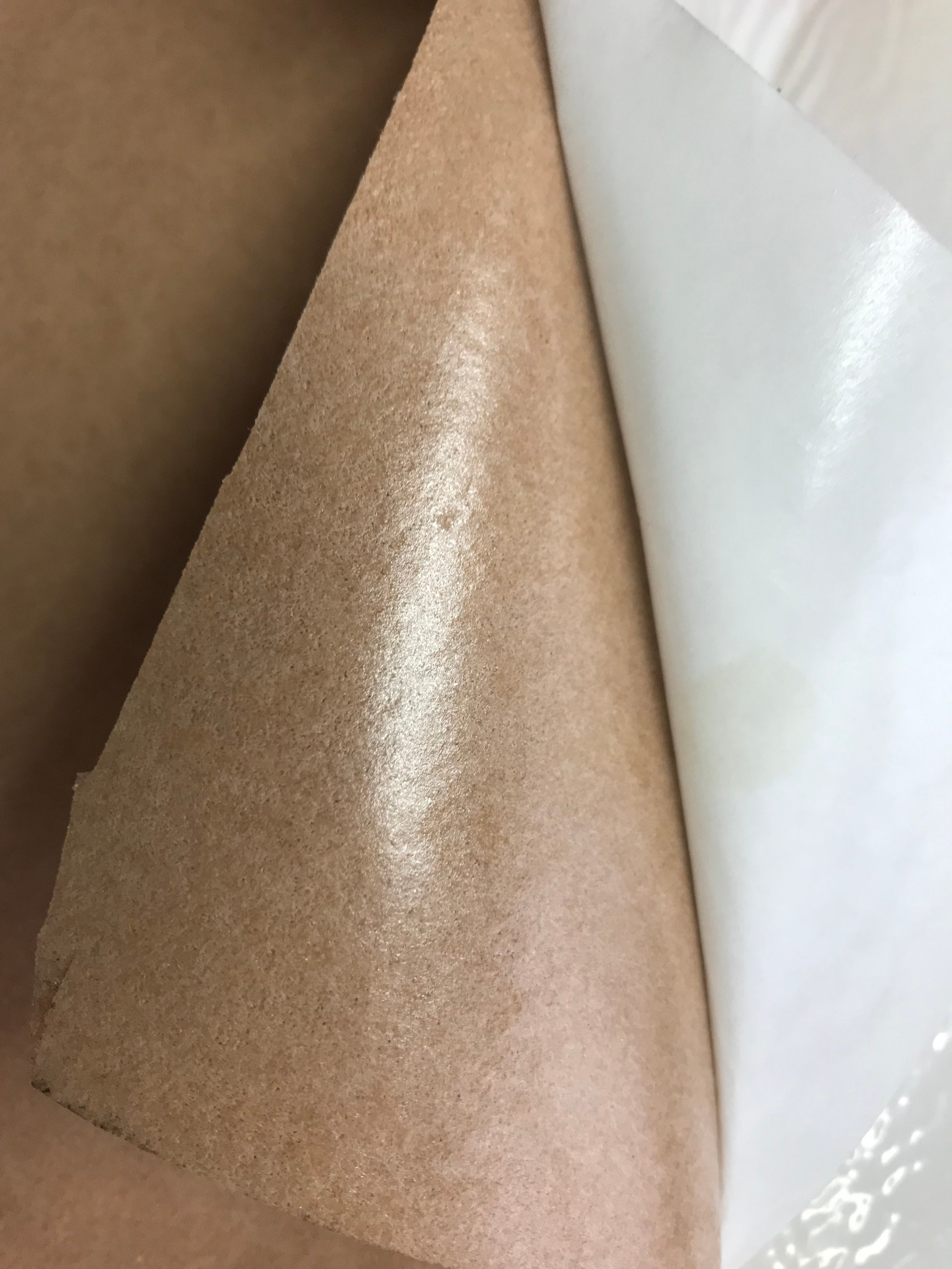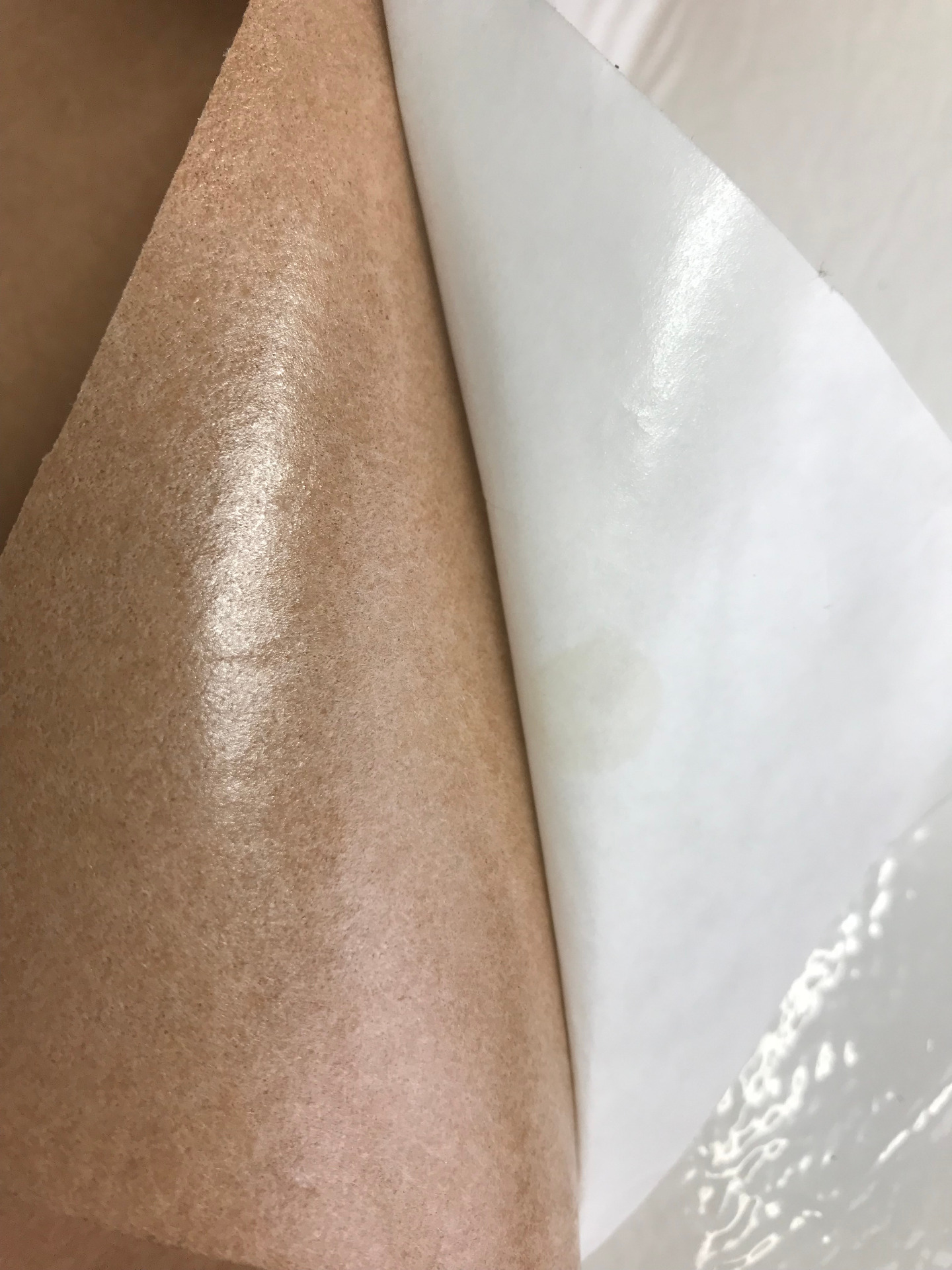 Salpa autoadesiva di colore salmone idoneo al rinforzo e alla doppiatura di pellami e tessuti da pelletteria e calzature.