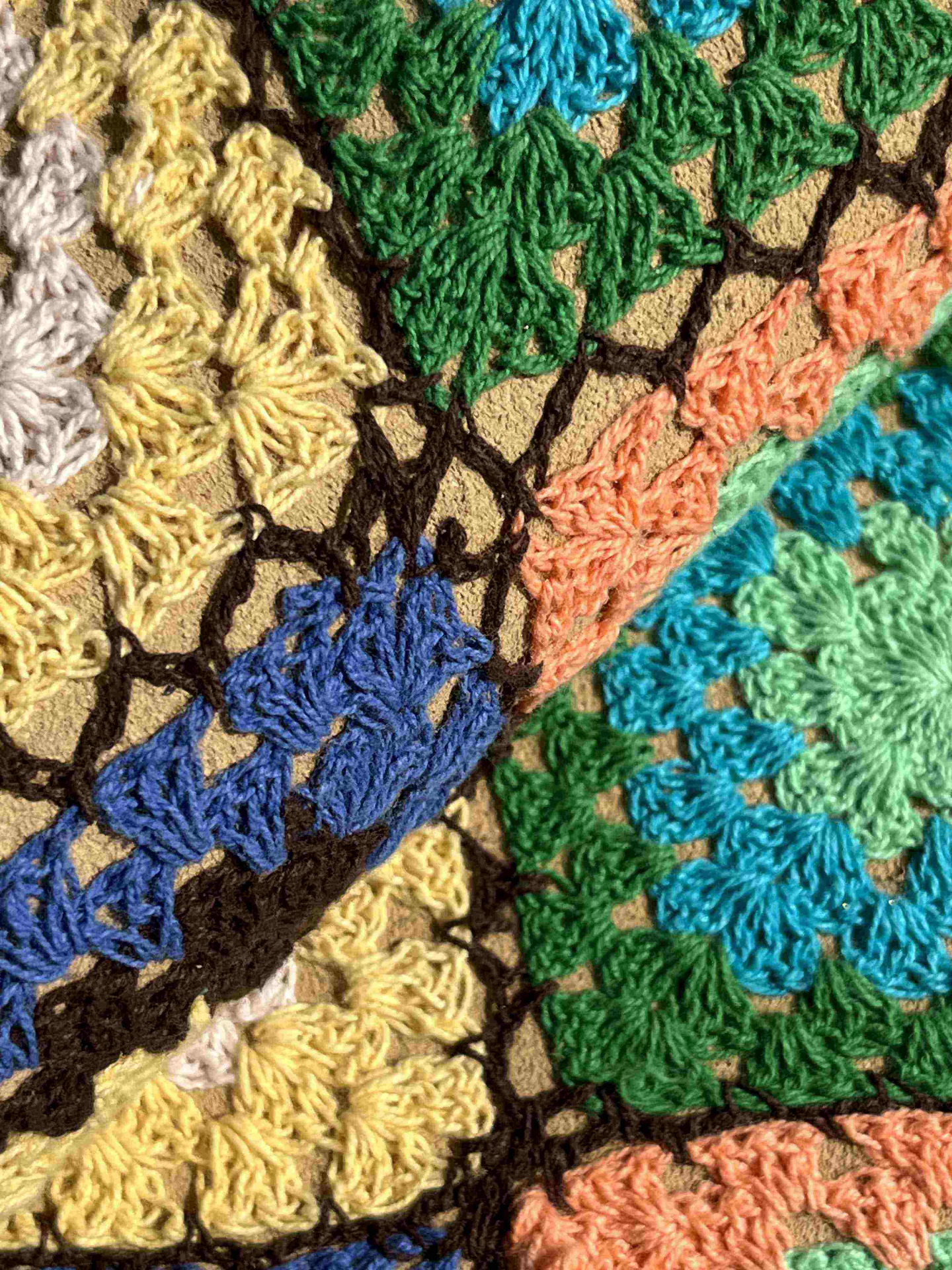 Pelle di vitello accoppiato con tessuto in maglia imitazione uncinetto, ideale per la produzione di calzature e pelletteria, sandali, ciabatte, infradito e molto altro, pelle spessa e morbida al tatto.