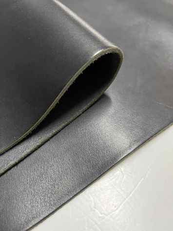 Pellame conciato 100% a vegetale ingrassato al sego, liscio di colore nero, mano pastosa, senza nessuna correzione in rifinizione, segni e imperfezioni non sono da considerarsi difetti ma caratteristiche naturali della sua unicità, alto spessore, pieno fiore, finitura anilina, ideale per la produzione artigianale di calzature e pelletteria, fondine, svuotatasche, incisione e molto altro.