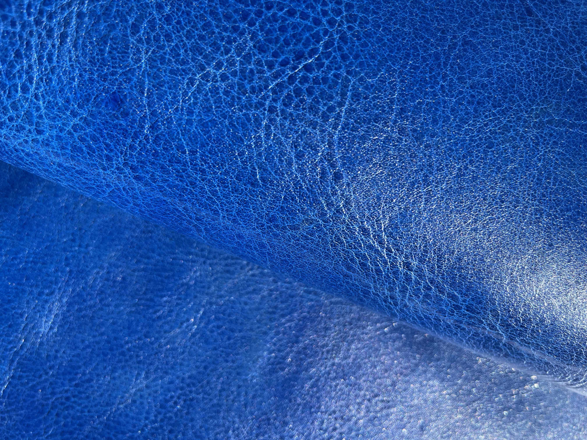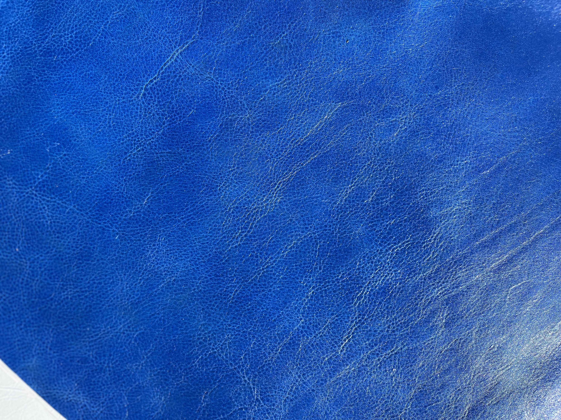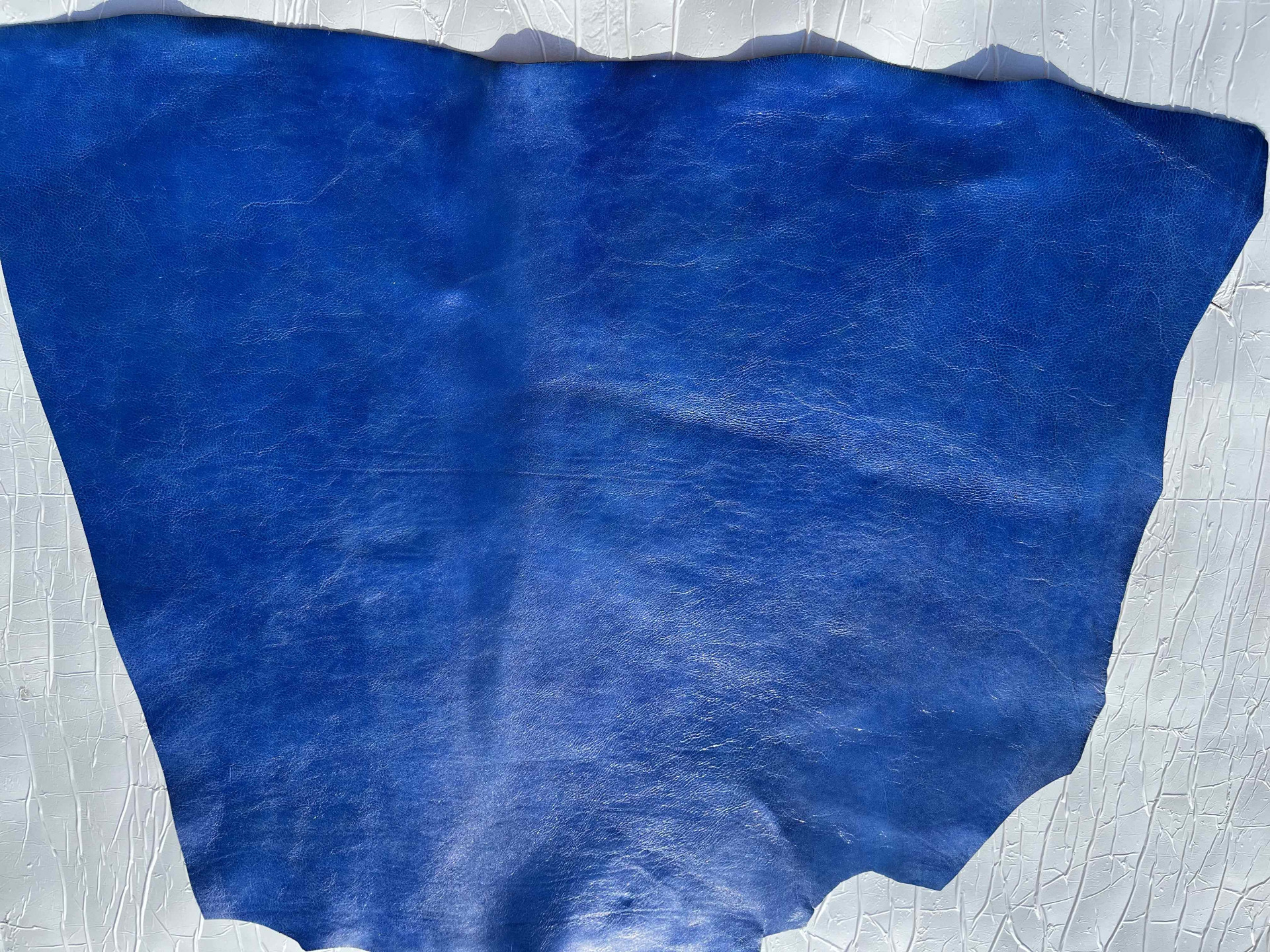Spalla conciata a vegetale bottalata di colore azzurro morbida e pastosa al tatto, pellame di alta qualità pieno fiore, segni e imperfezioni non sono da considerarsi difetti, ma certificano la genuinità della materia prima, caratteristiche ideali per la produzione di cinture, borse, incisione e molto altro.