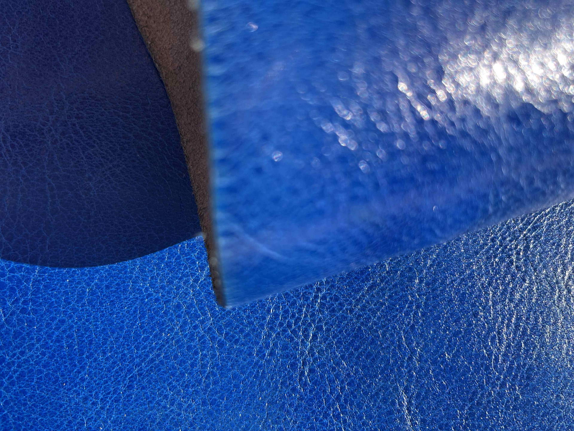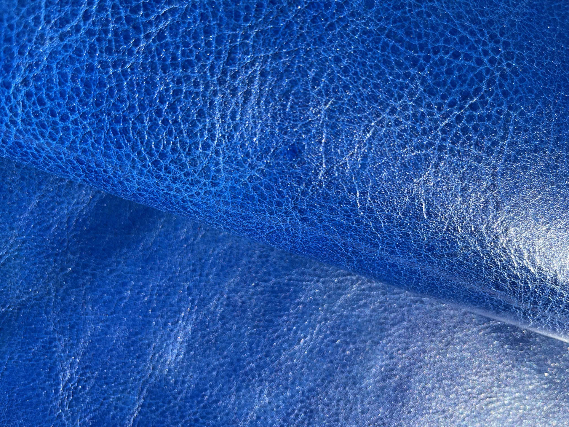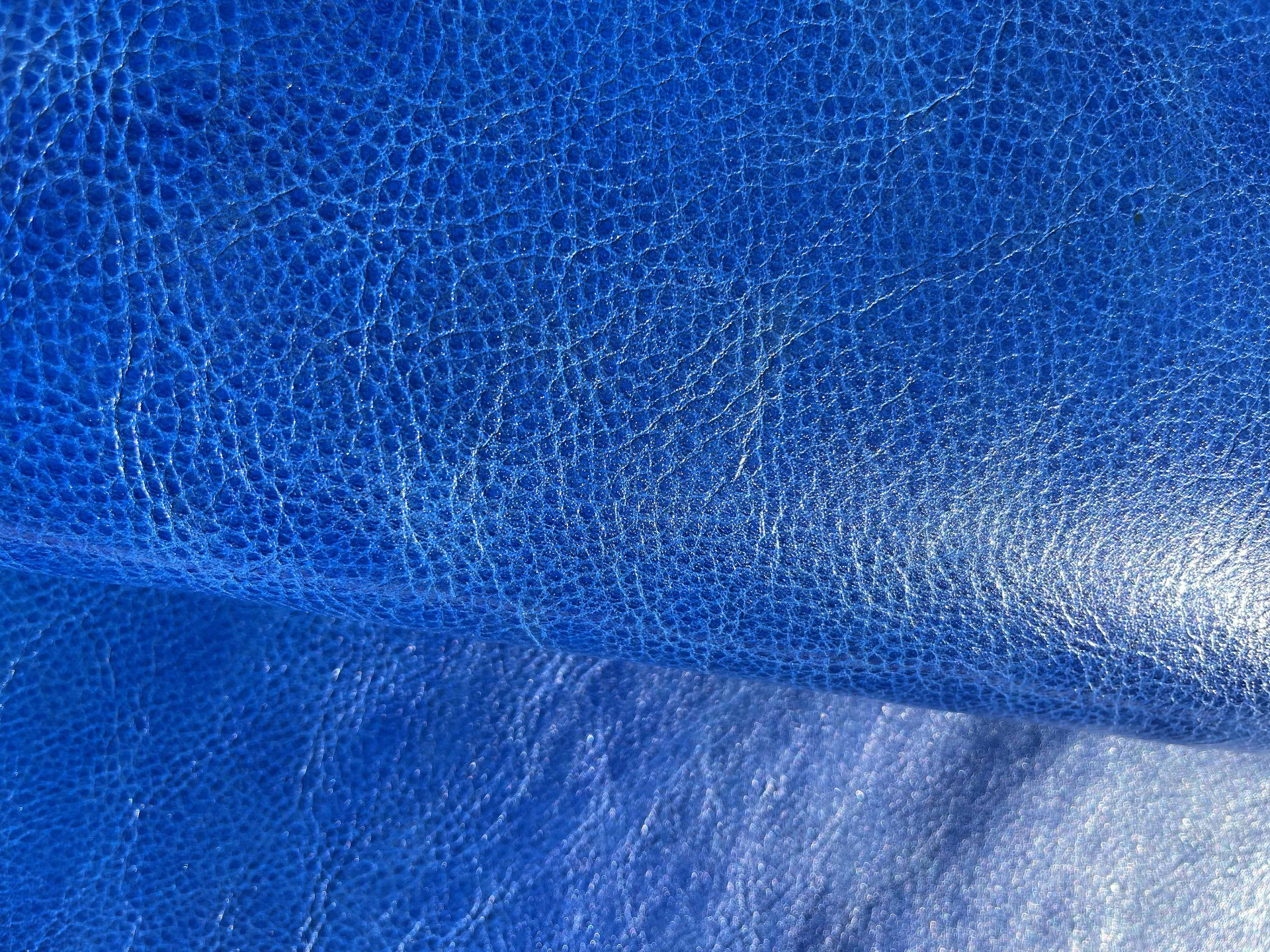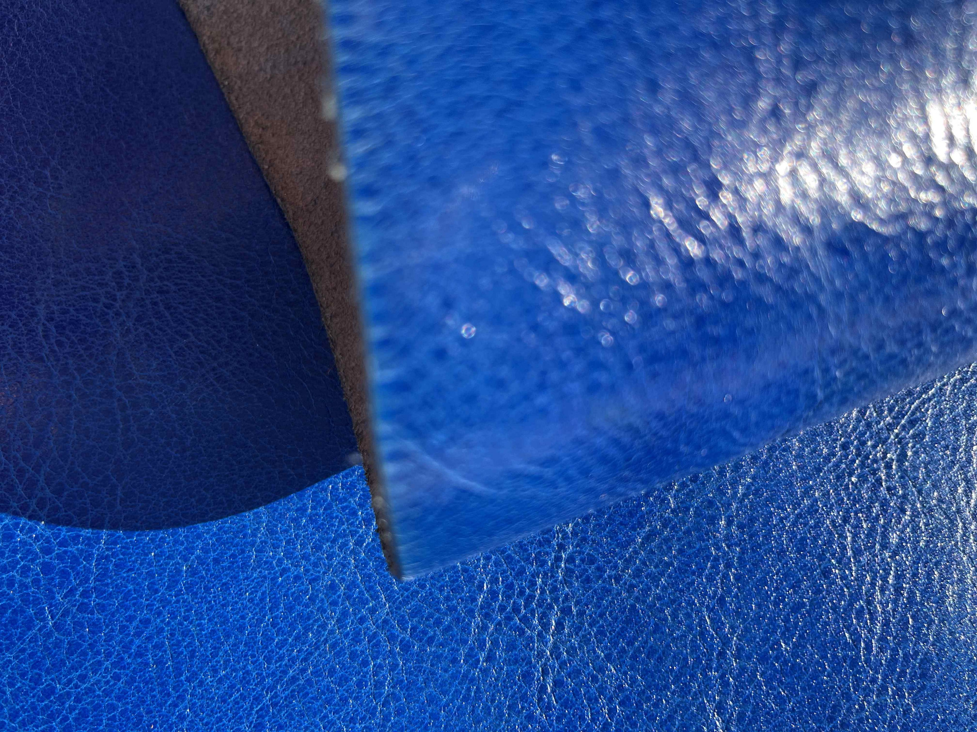 Spalla conciata a vegetale bottalata di colore azzurro morbida e pastosa al tatto, pellame di alta qualità pieno fiore, segni e imperfezioni non sono da considerarsi difetti, ma certificano la genuinità della materia prima, caratteristiche ideali per la produzione di cinture, borse, incisione e molto altro.