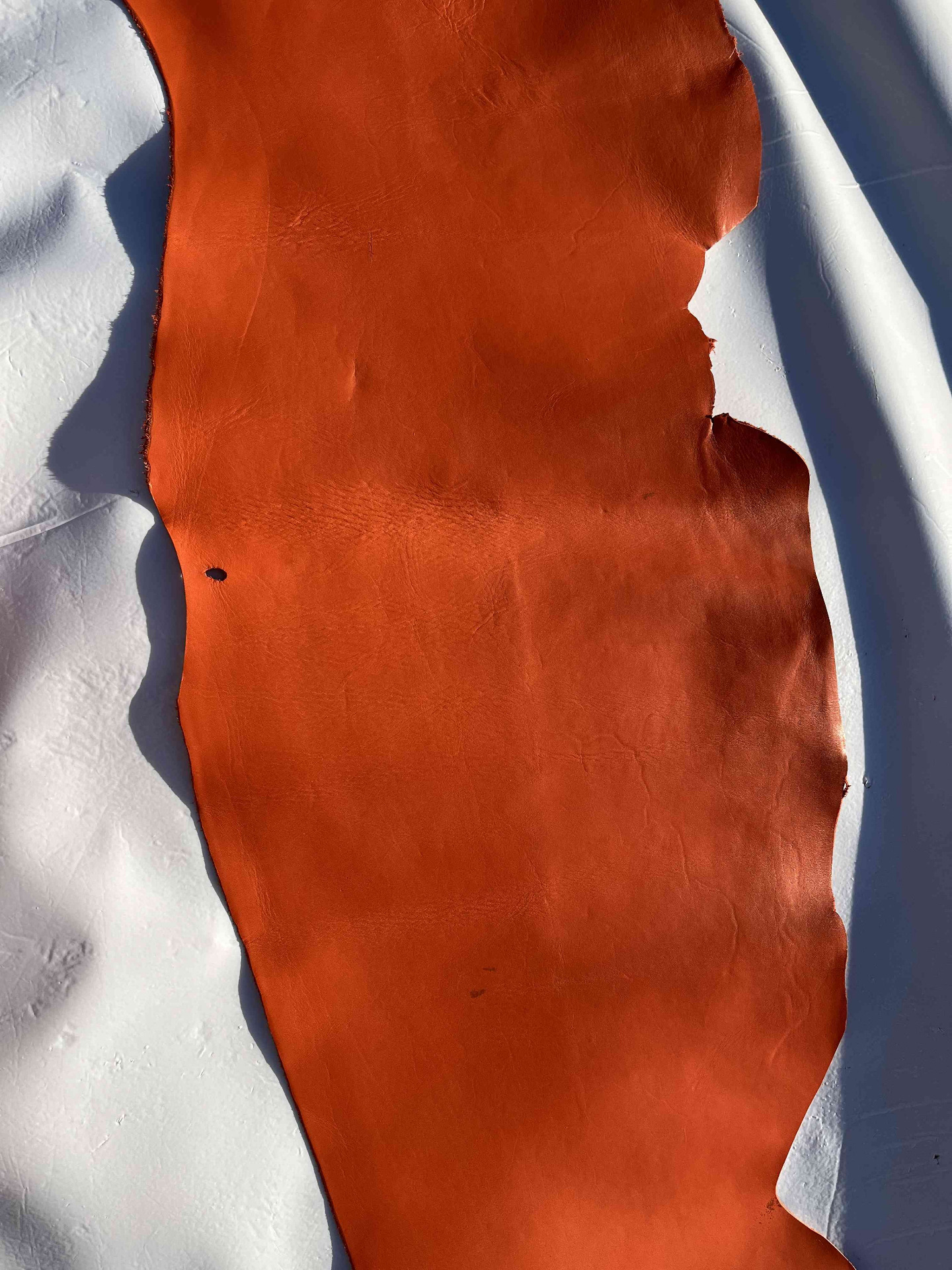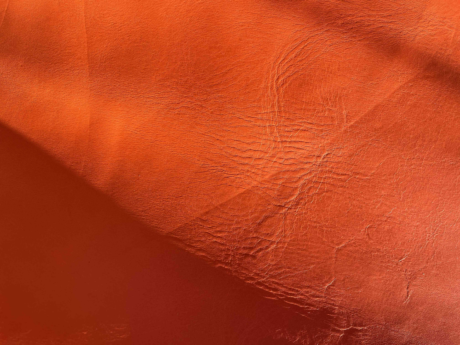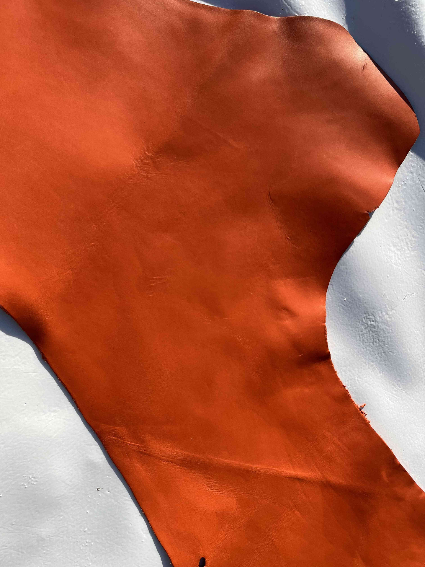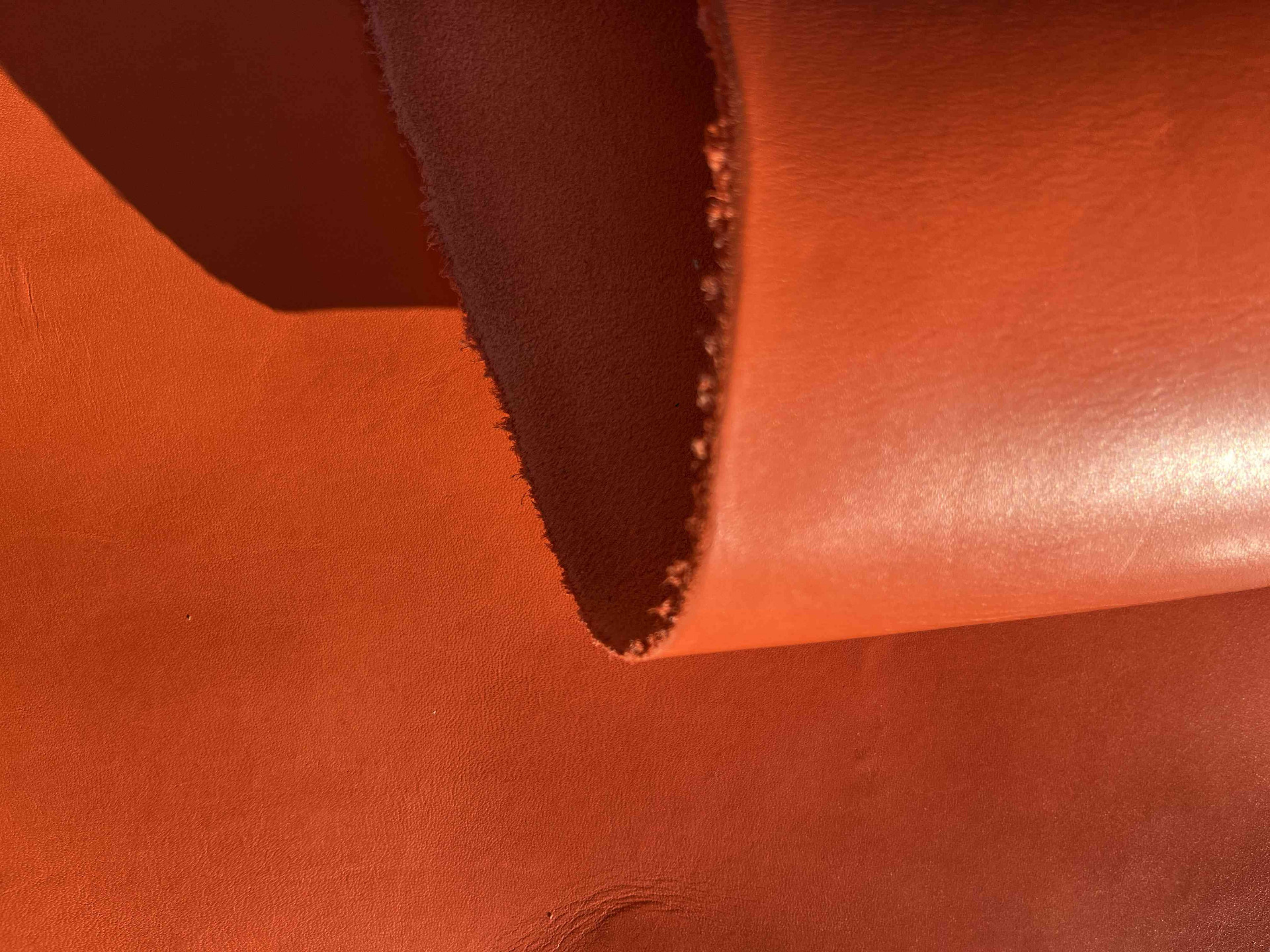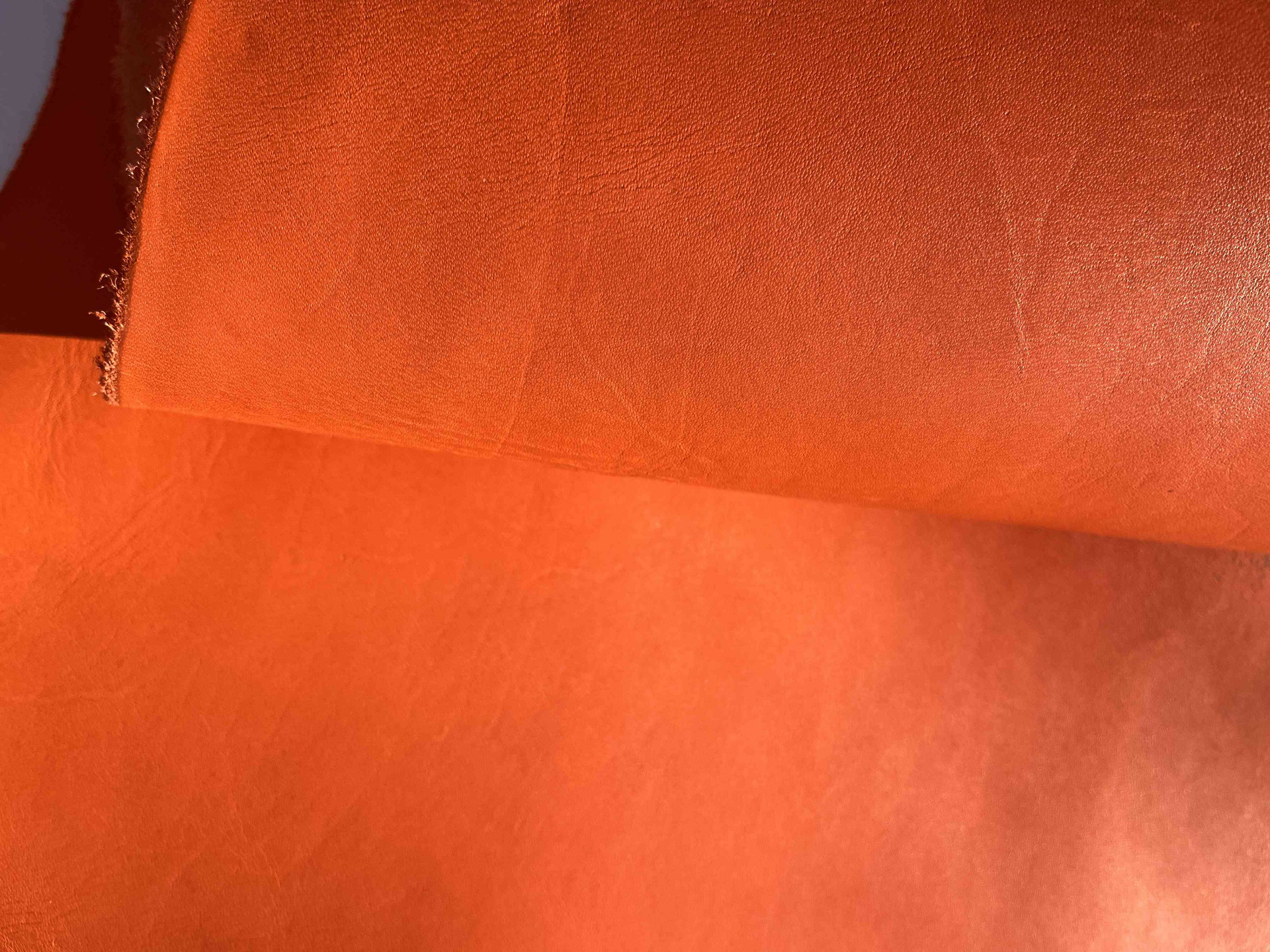 Pellame concia 100% a vegetale liscio colore Arancione ingrasso sintetico, pieno fiore, segni e imperfezioni non sono da considerarsi difetti, ma caratteristiche naturali.