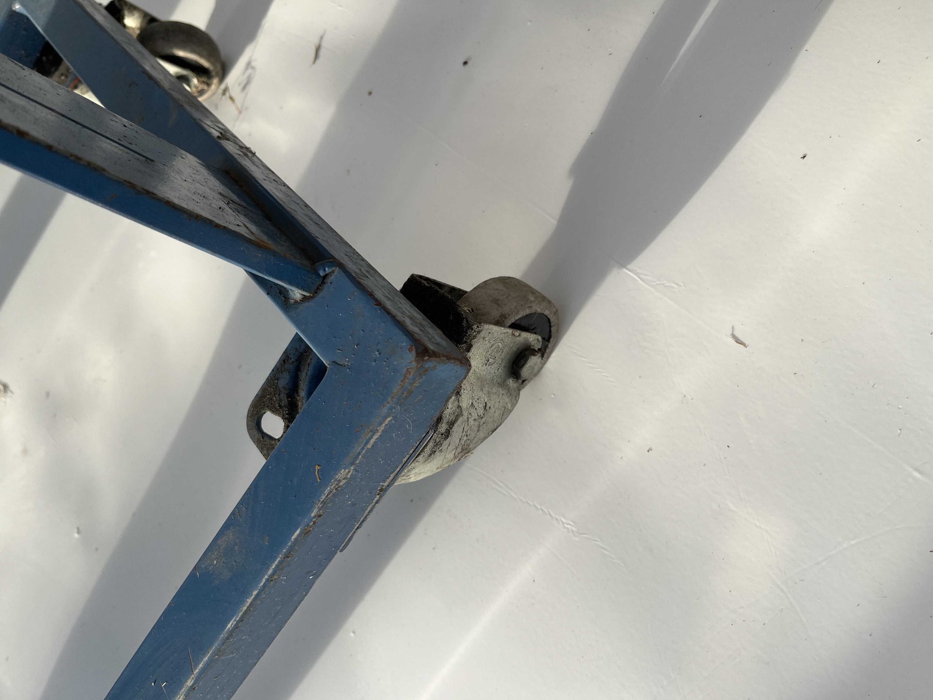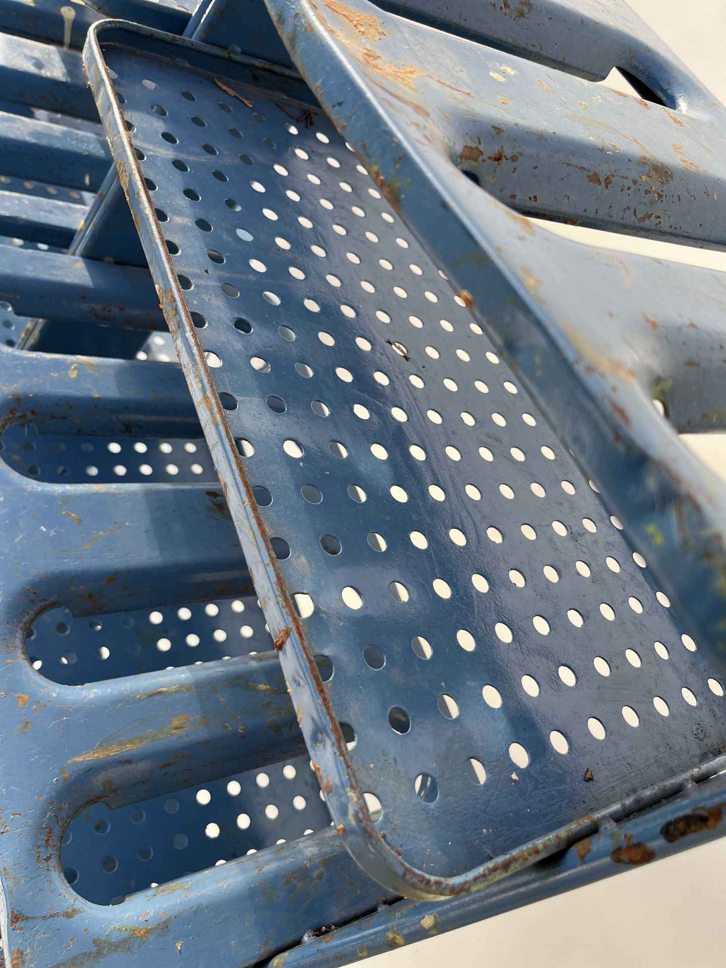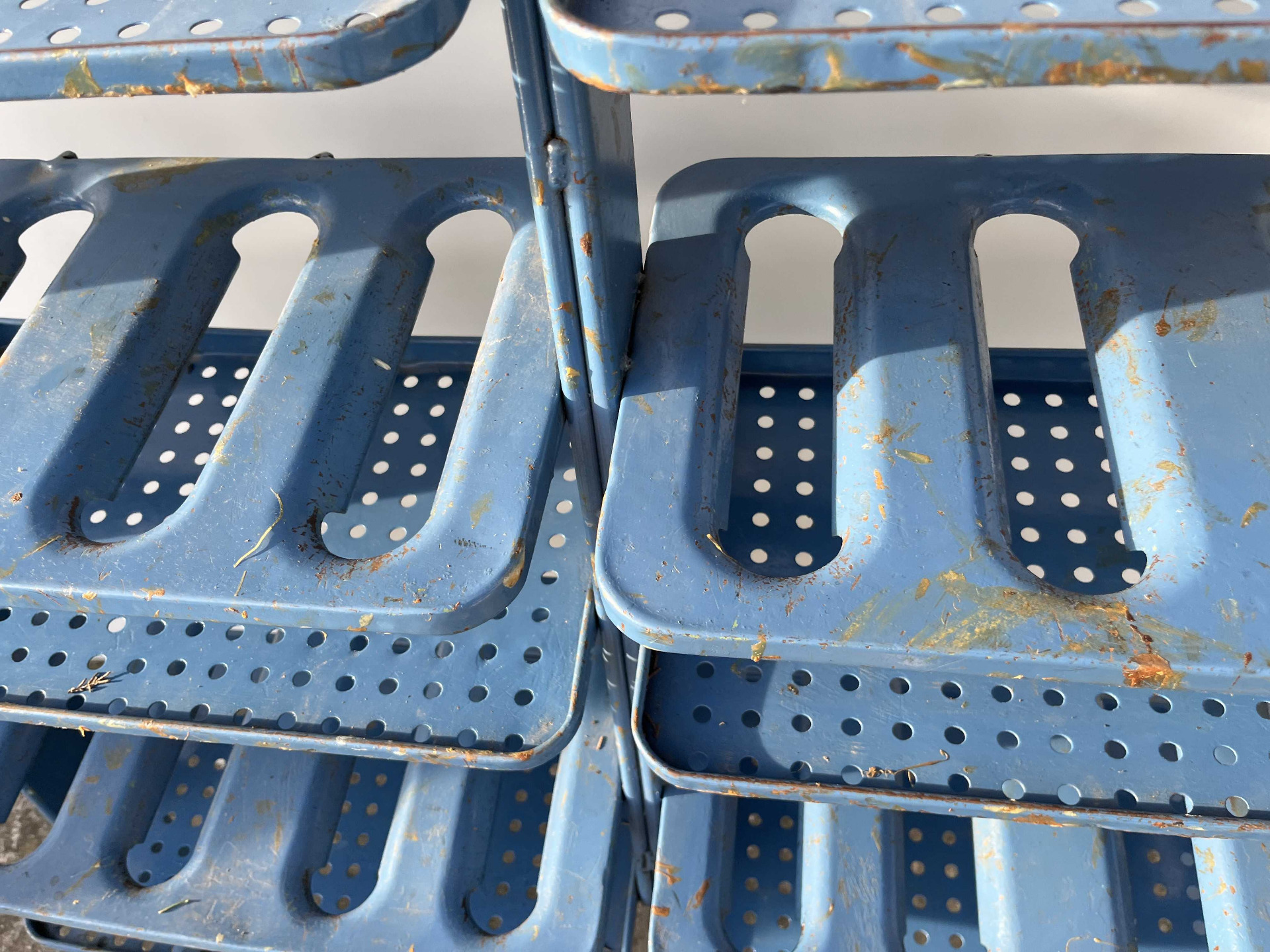 Carrello per calzolaio con cavità per posatura calzature durante la lavorazione, sei piani, dotato di ruote, prima vernice originale di fabbrica, realizzato completamente in ferro pesante, produzione 100% made in Itaky e in ottimo stato di conservazione.