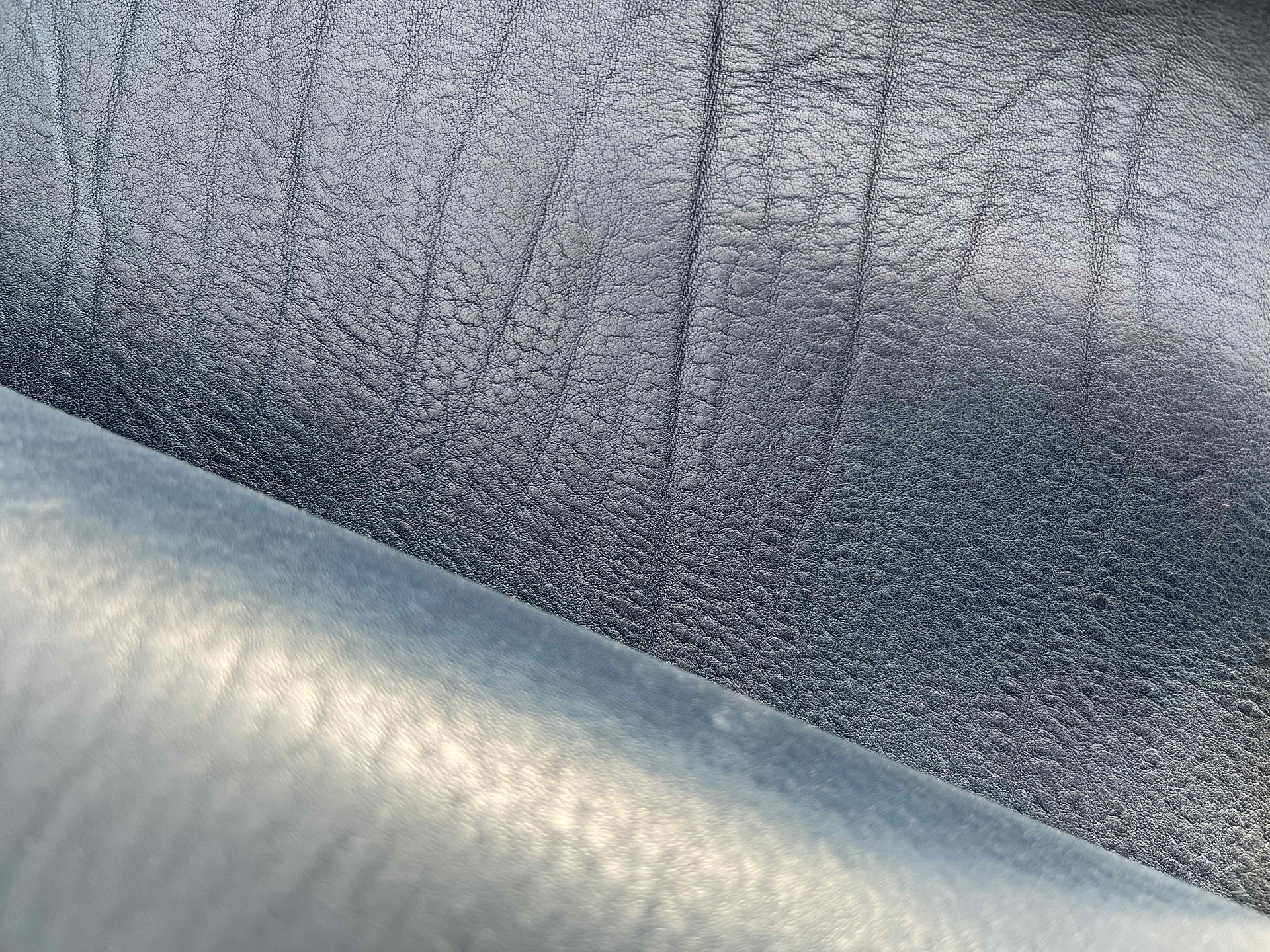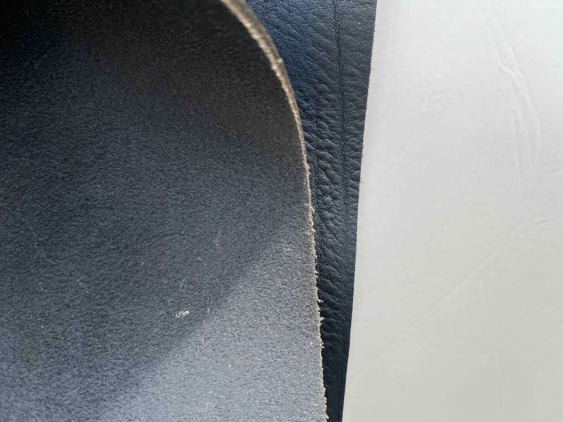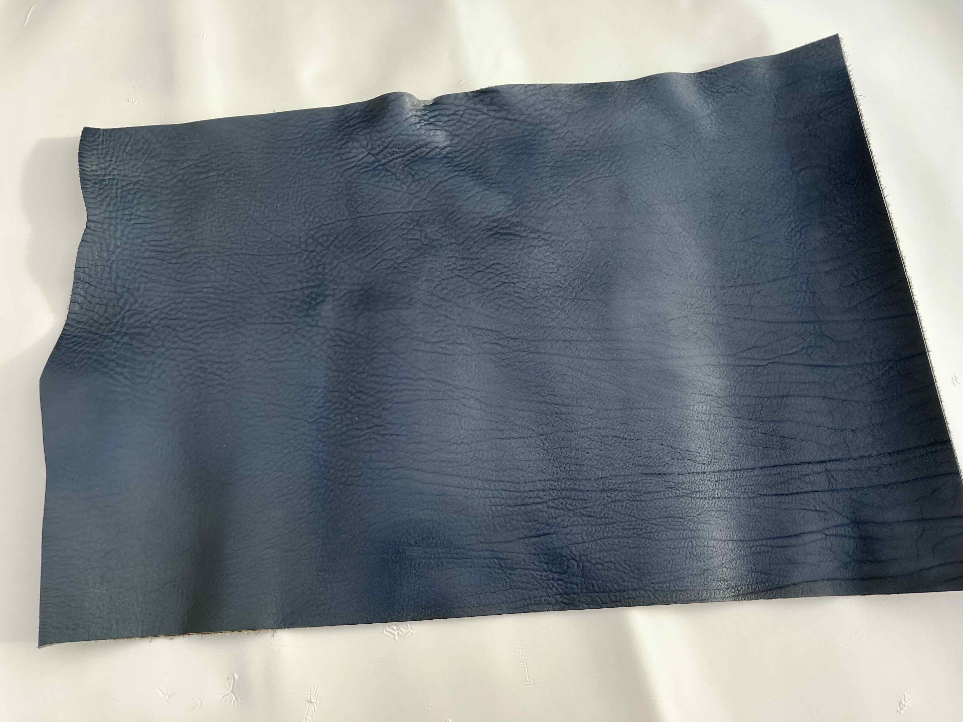 Pellame conciato 100% a vegetale di colore bleu, pelle spessa, carne cerata, pieno fiore anilina pura di botte, segni e imperfezioni non sono da considerarsi difetti, ma caratteristiche naturali della sua unicità, ideale per la produzione artigianale di piccola pelletteria, incisione e molto altro