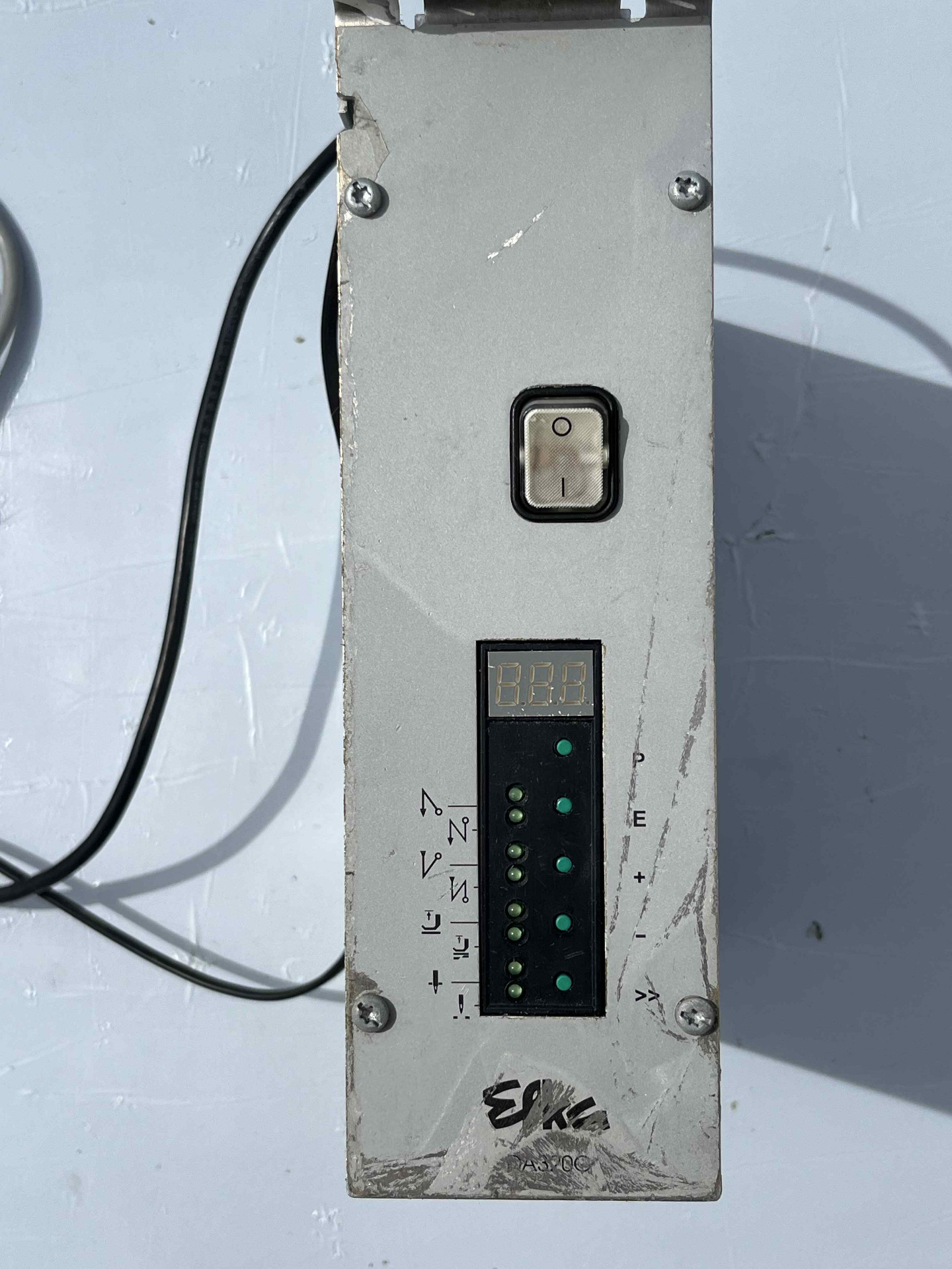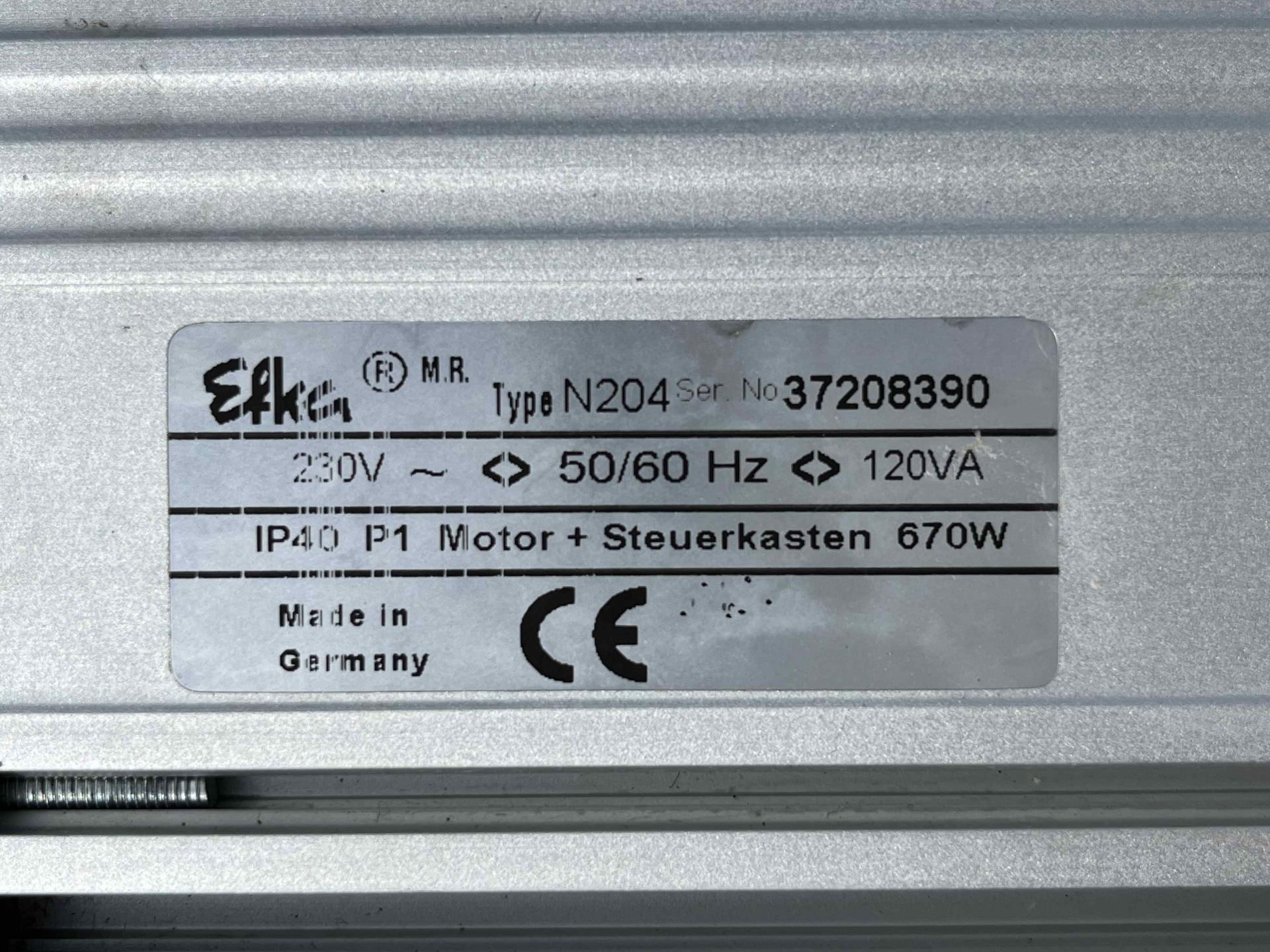 Efka unità di comando e motore brushless a corrente diretta monofase, montaggio a flangia per machine da cucire medie e pesanti completo dì cavi, caratteristiche e dati leggere etichetta.