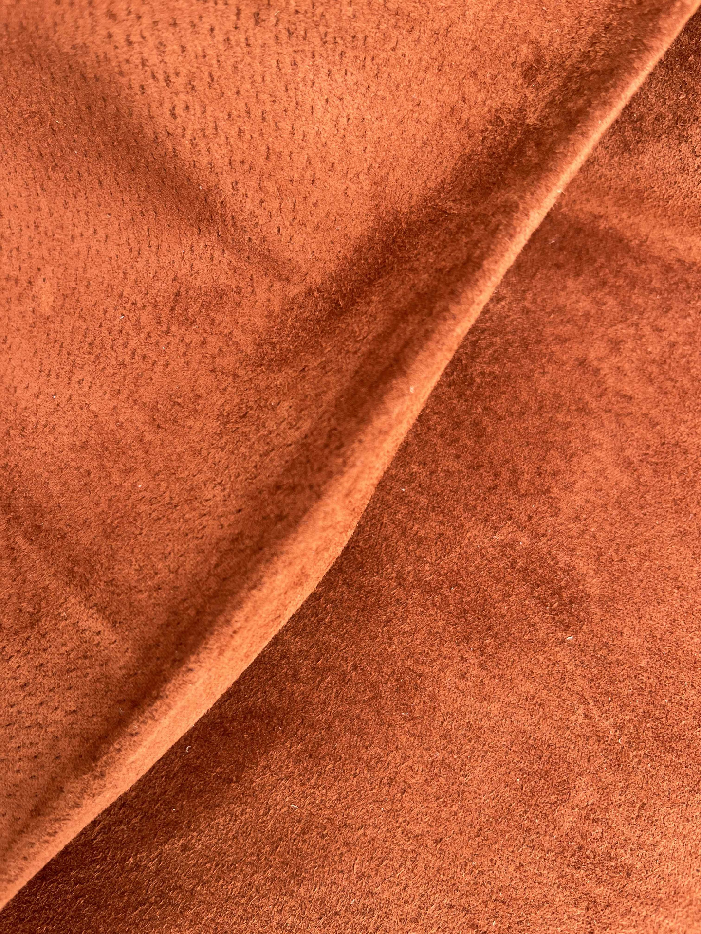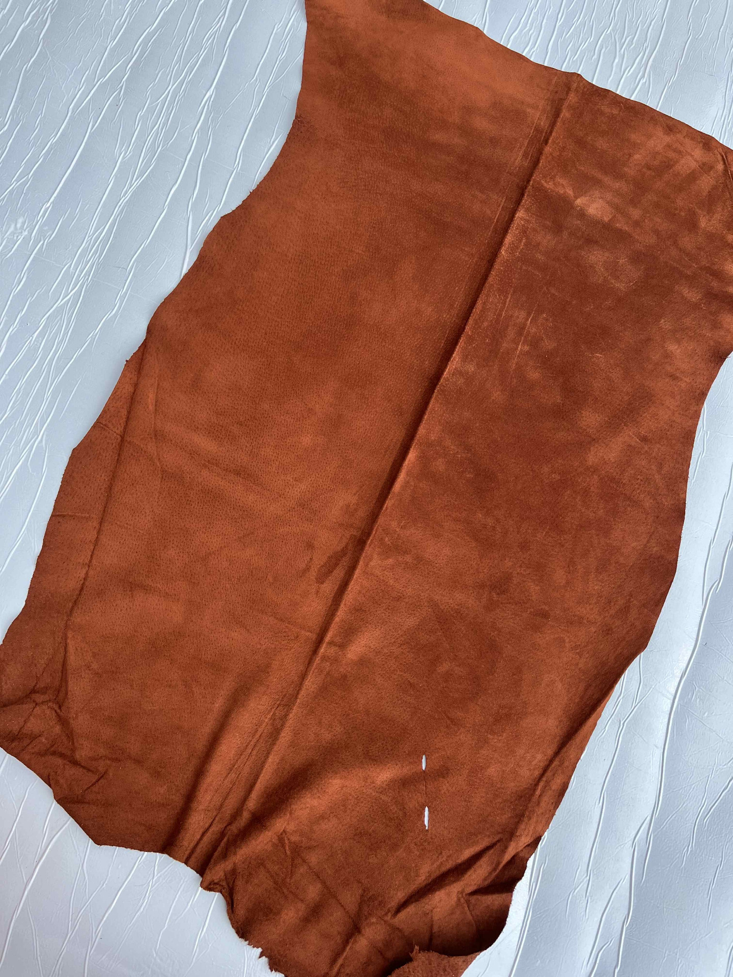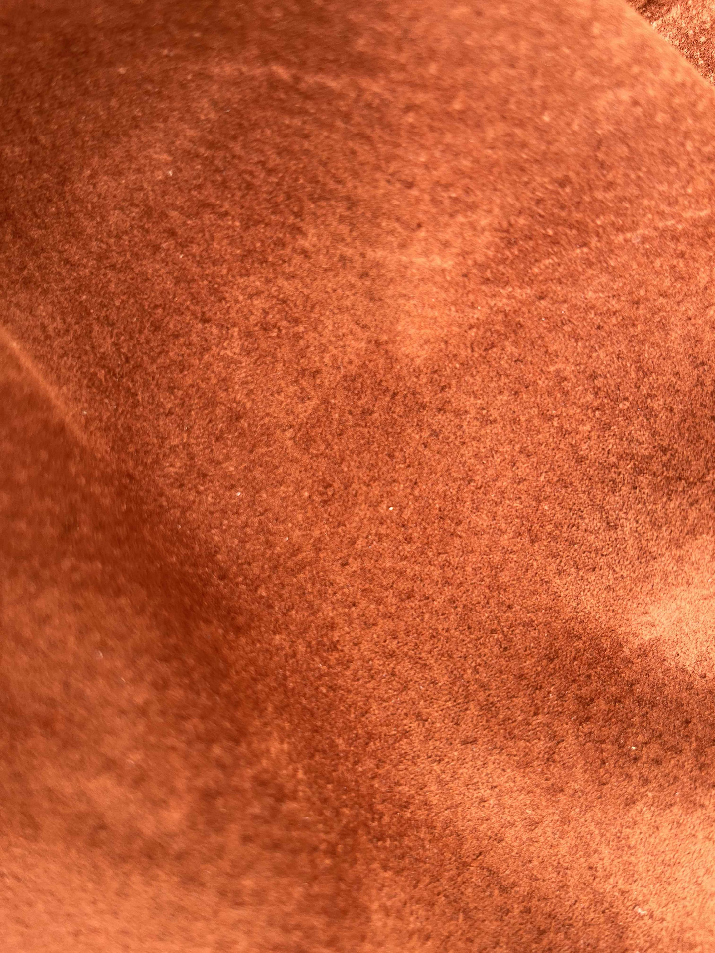 Pellame scamosciato maialino di colore brandy , morbido, mano vellutata, particolarmente scrivente e brillante, ideale per capi di abbigliamento, progetti di pelletteria e molto altro.