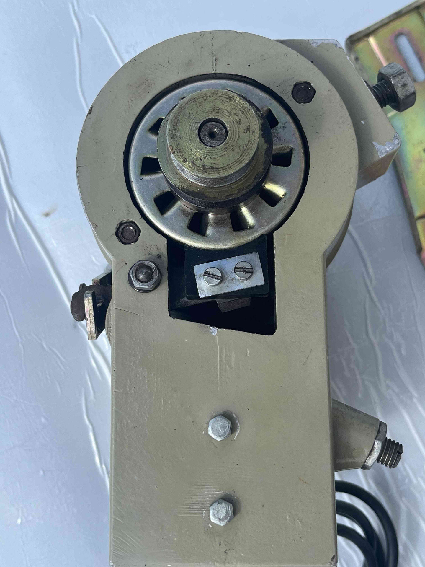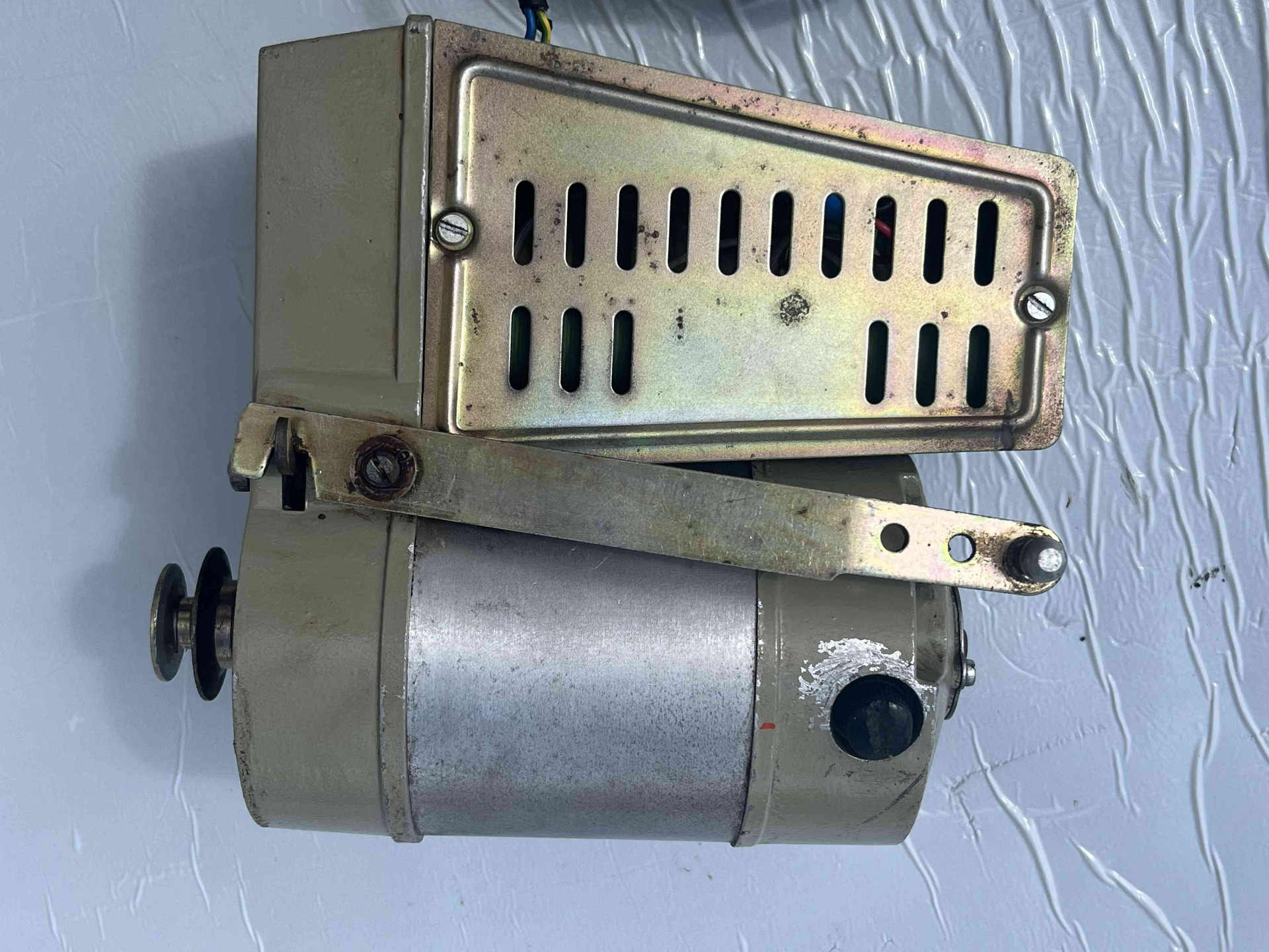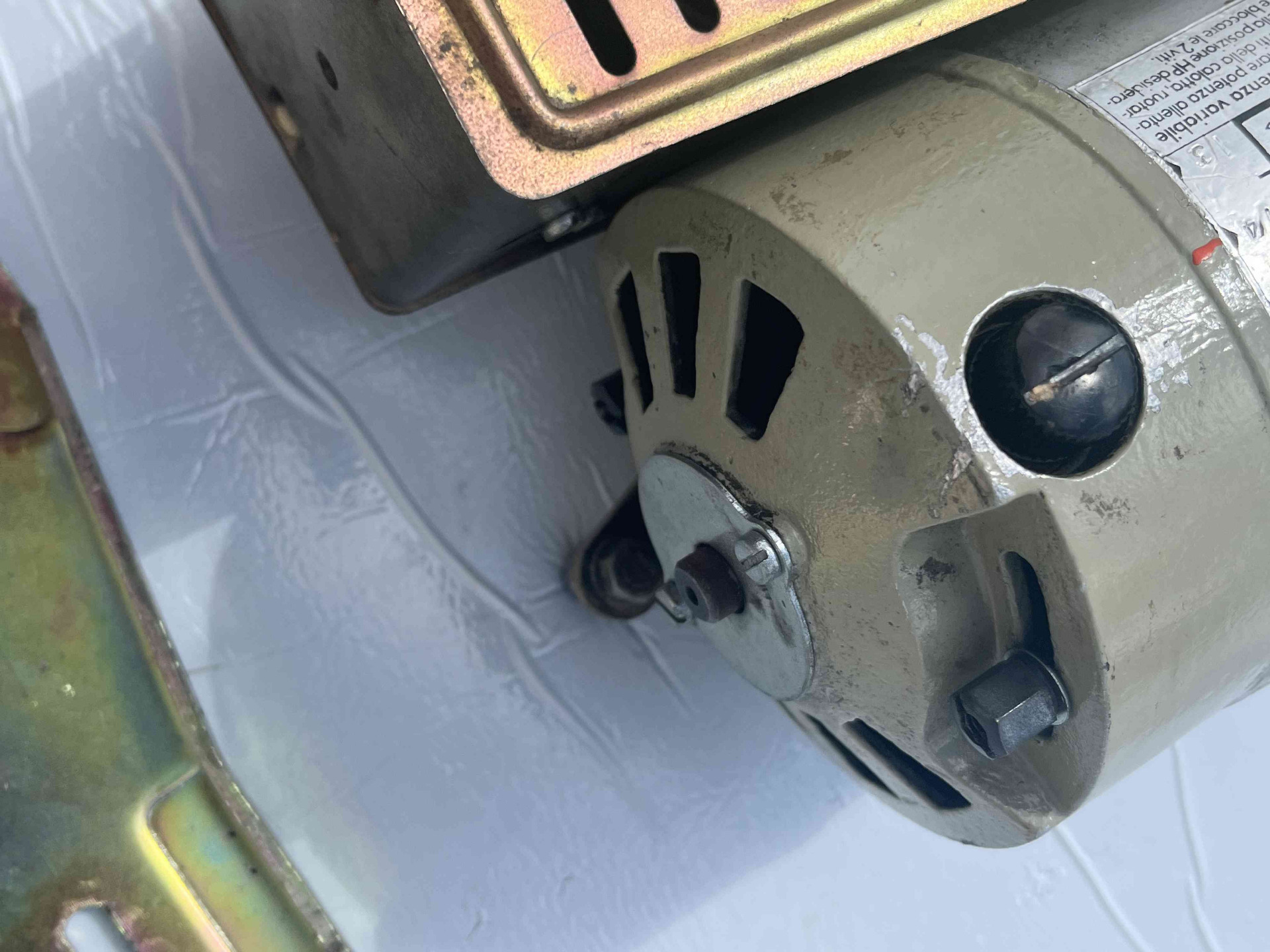 Motore usato per macchina da cucire monofase della FIMEM freno/frizione in condizioni eccellenti, perfettamente funzionante, completo di staffa, puleggia e cavo di collegamento alla rete, adattabile su qualsiasi macchina da cucire lineare, Necchi, Pfaff, Bernina, Rimoldi etc.