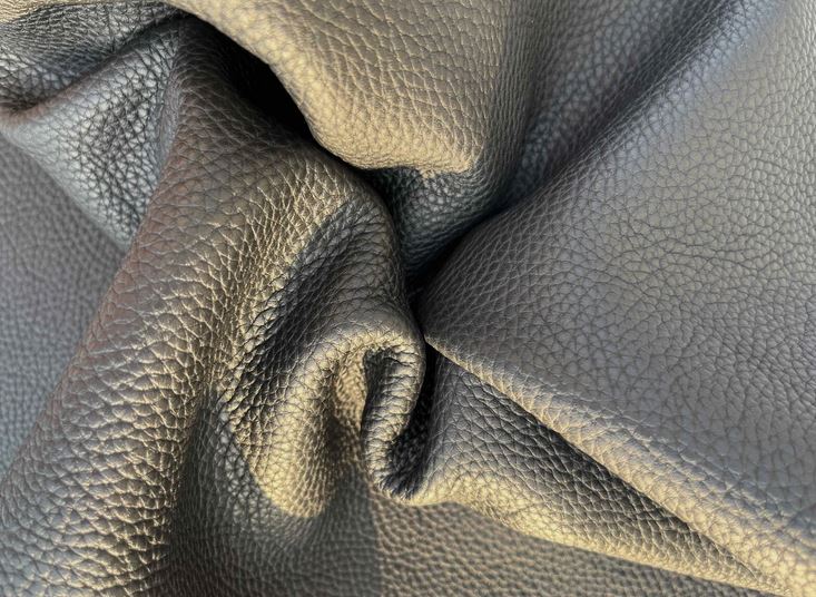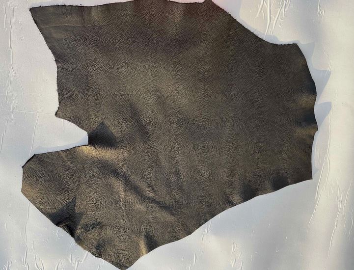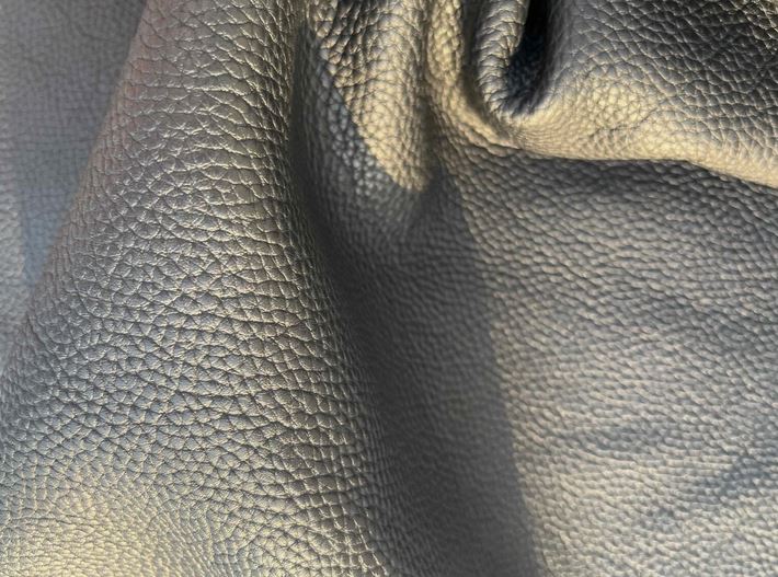 Pellame di vitello bottalato colore nero con una mano piena e morbida, alto spessore, grana dollaro, aspetto semi lucido, anilina pura di botte senza nessuna rifinizione in superficie, segni e imperfezioni non sono da considerarsi difetti, ma caratteristiche naturali, ideale per la produzione di piccola pelletteria, selleria, calzature e molto altro.